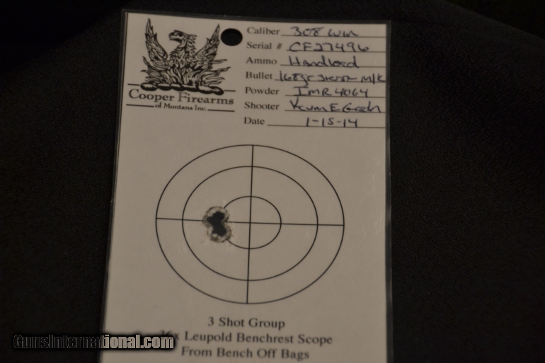Description: Description: Cooper Model 54 Excalibur Barrel: Fluted Bore/Caliber: .308 Winchester Barrel Length: 22" Additional Comments: Warne Bases, Sling Studs, Fluted Barrel, SOLD |