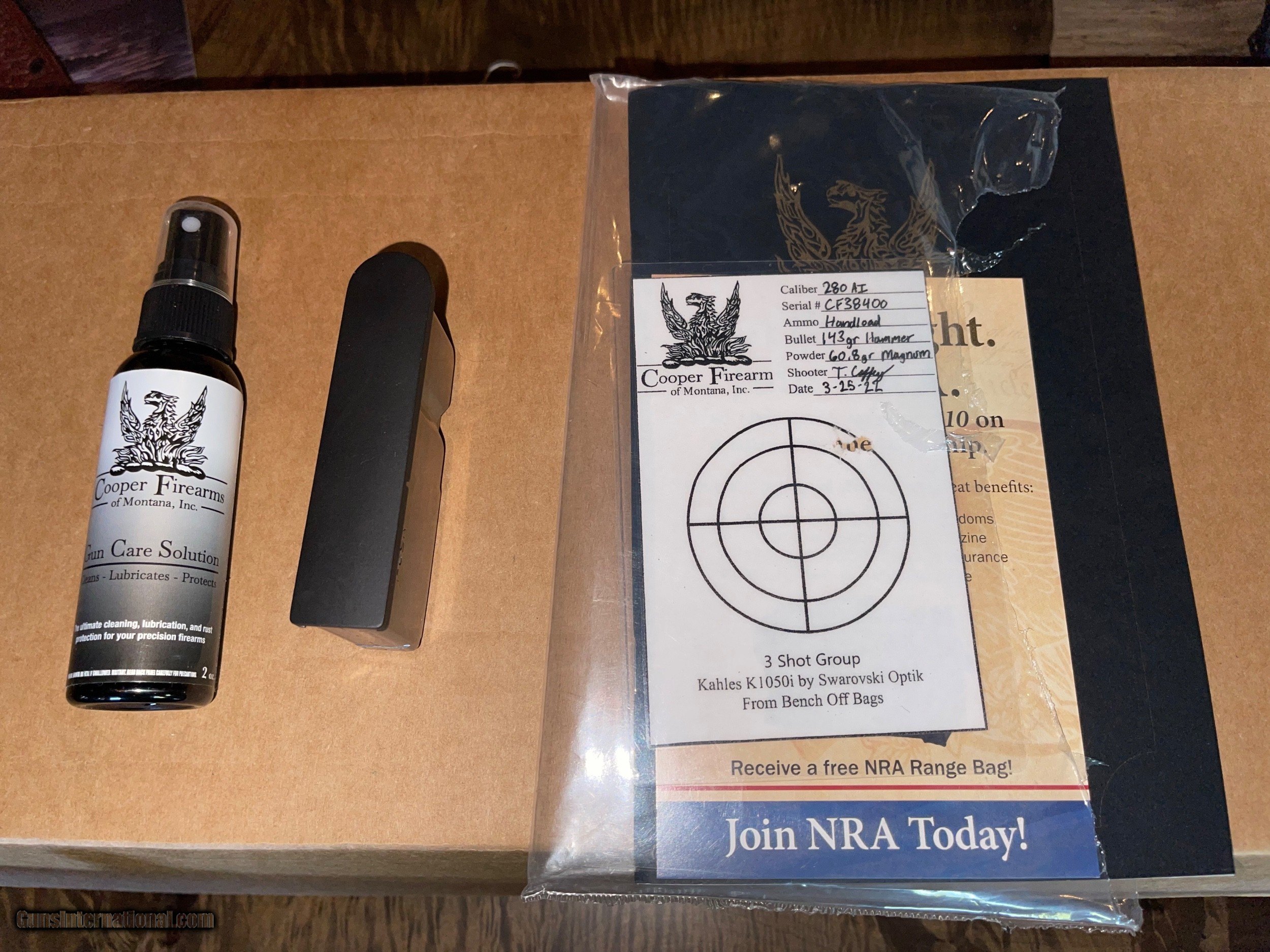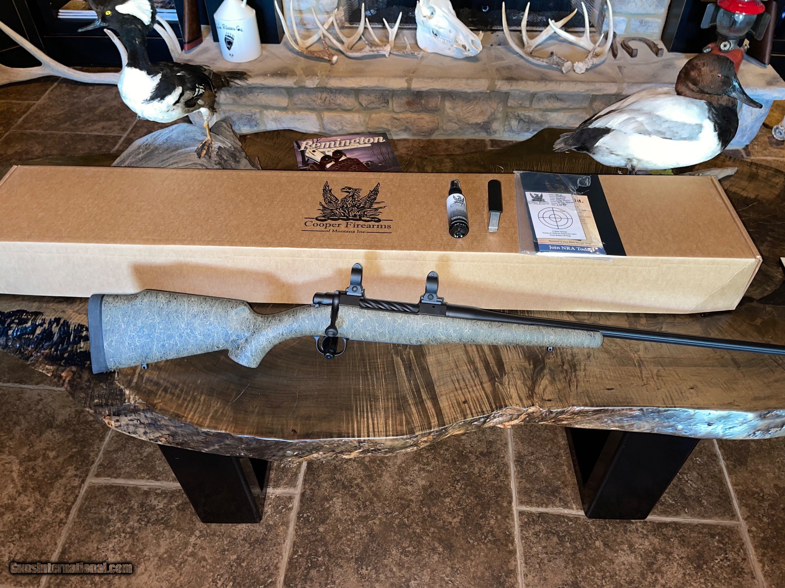 Description: This is a brand new Cooper model 92 chambered in 280 Ackley Improved. Stock is sage green with Black and Tan webbing (Sitka colors) all metal is cerakoted matte black. Has a 24" fluted barrel plus brake. Fluted bolt. Triggertech diamond trigger. Talley Rings and Bases. Extra magazine. Includes box, all paperwork and test target from Cooper. SOLD Rifle Caliber: .280 Ackley Improved |