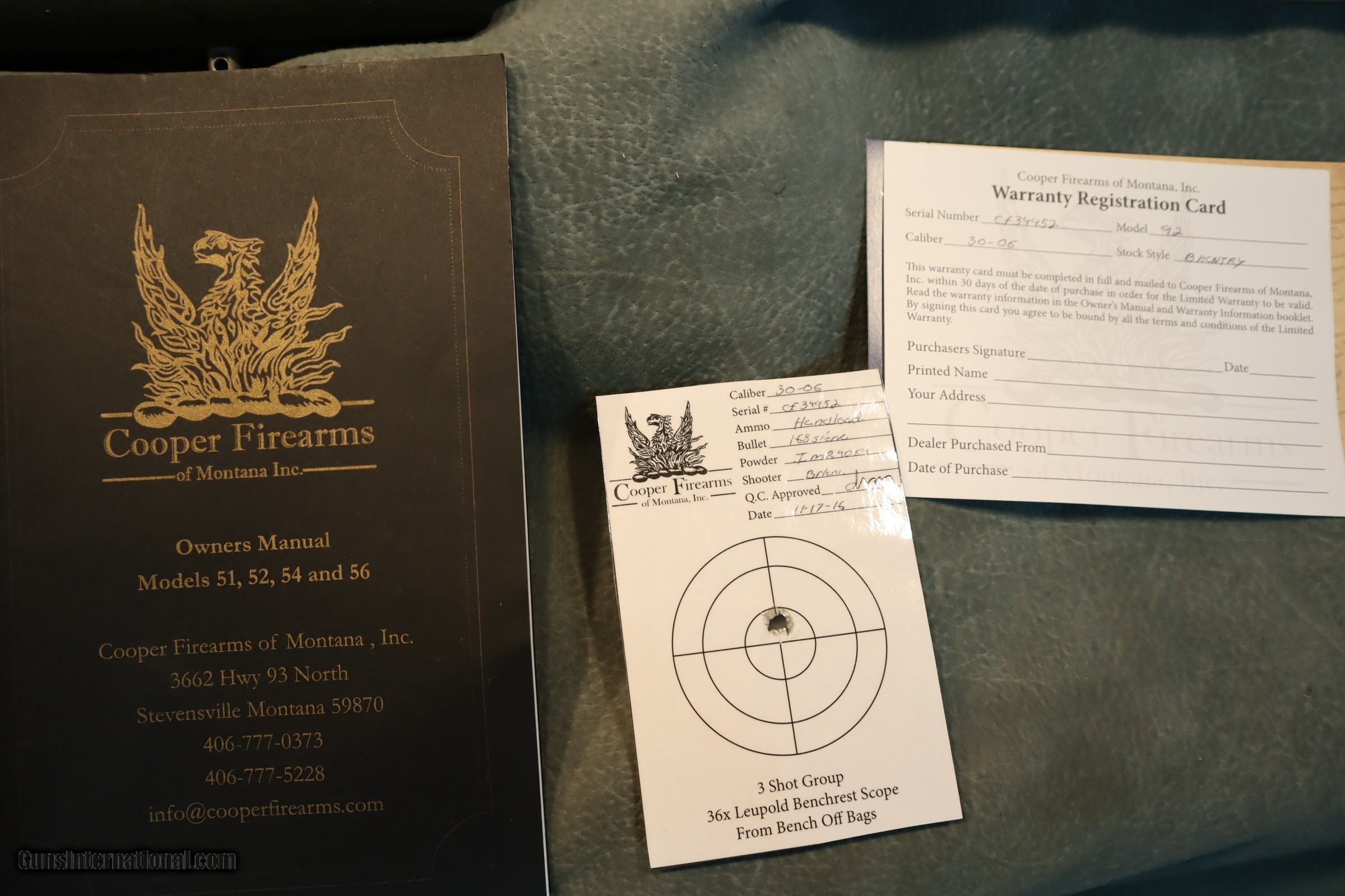 Description: Cooper Model 92 Backcountry 30-06 24" stainless fluted barrel with muzzlebreak and end cap,spiral fluted bolt,jewell trigger,olive stock with black webbing,Talley 30mm lightweight mounts,box,papers,test target and extra magazine. GUN COLLECTIONS WANTED FOR CASH! We buy, sell, consign and trade new and used firearms. This is our 47th year in business. We offer 90 day layaways with 20% down. No return on layaways. Firearms will need to be transferred through a FFL dealer. Prices reflect a cash discount. There will be 3% added to credit card sales. We trade for gold and silver. THANK YOU! SOLD |