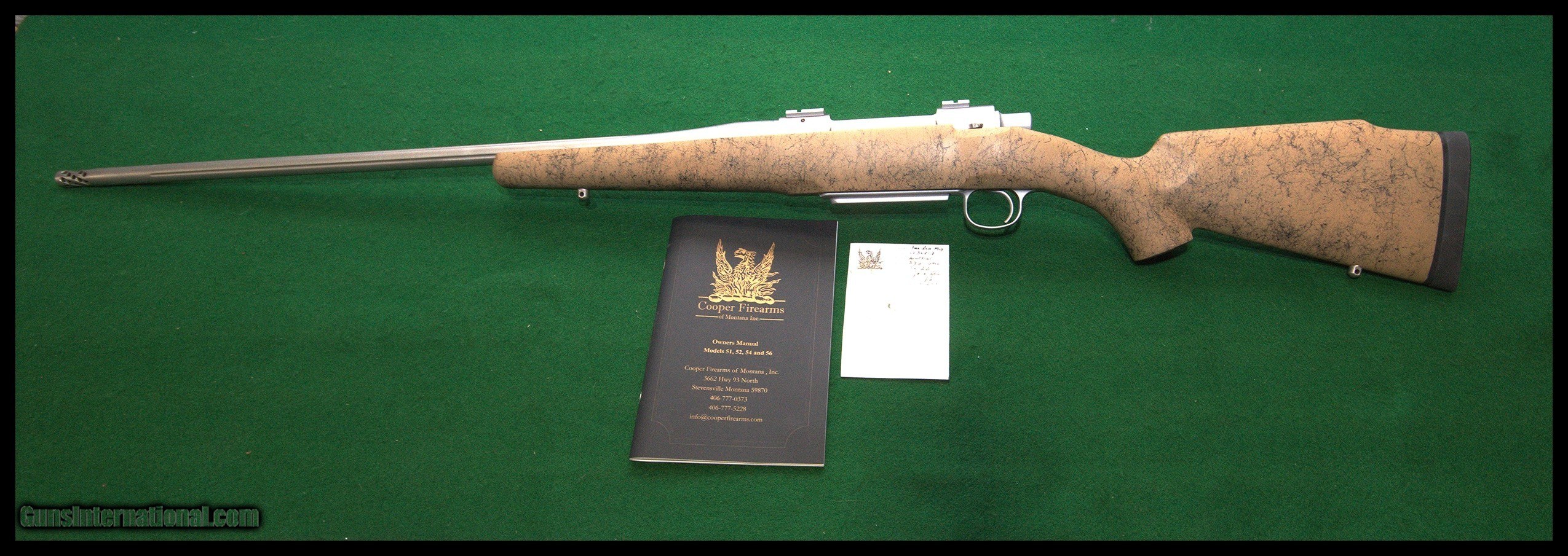 Description: Cooper Model 92 Backcountry in 7mm Remington magnum. Perfecr flawless condition, unfired since leaving the factory. Excellent trigger, Spiral fluted bolt and muzzle brake. Includes box label (no box), target card, manual and paperwork. SOLD Rifle Caliber: 7mm Remington Magnum |