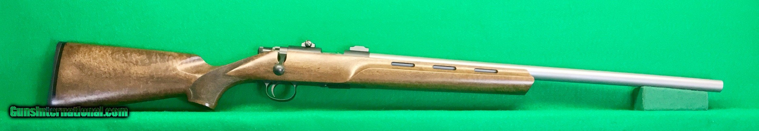 Description: Sold, awaiting payment. // Scarce caliber in a Cooper, they no longer offer rifles in 17M2. Ammo is available again, I see it in our local Cabelas store and other gunshops. This model 57-M Montana Varminter has a checkered bolt knob upgrade. Rifle appears new, complete with the original box and target. $1898 plus $40 insured shipping. Lay a way available. No credit cards and no trades. SOLD |