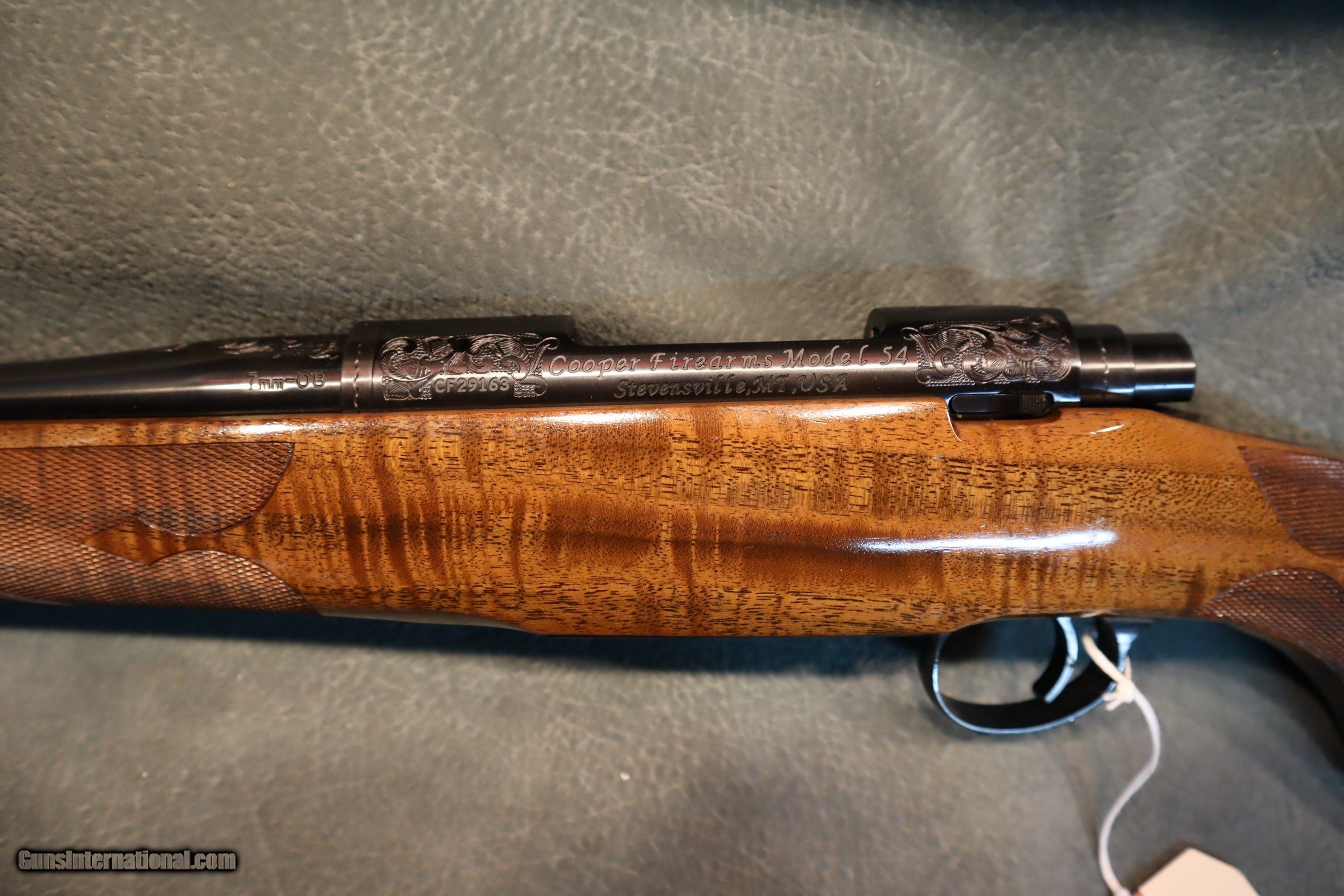 Description: Cooper of Montana Model 54 7mm-08 Custom Classic #2 pattern factory engraved,22" barrel,beautiful walnut stock with tiger strip fiddleback,gloss finish that we will put into oil if preffered,cheekpiece,fluer de lis checkering,ebony forend tip,engraved skeleton grip cap and inletted sling swivelscheckered bolt knob,engraved trigger guard and magazine,receiver,barrel and bolt shroud,like new with the box and papers.Over $8000 new,no longer made. GUN COLLECTIONS WANTED FOR CASH! We buy, sell, consign and trade new and used firearms. This is our 47th year in business. We offer 90 day layaways with 20% down. No return on layaways. Firearms will need to be transferred through a FFL dealer. Prices reflect a cash discount. There will be 3% added to credit card sales. We trade for gold and silver. THANK YOU! SOLD |