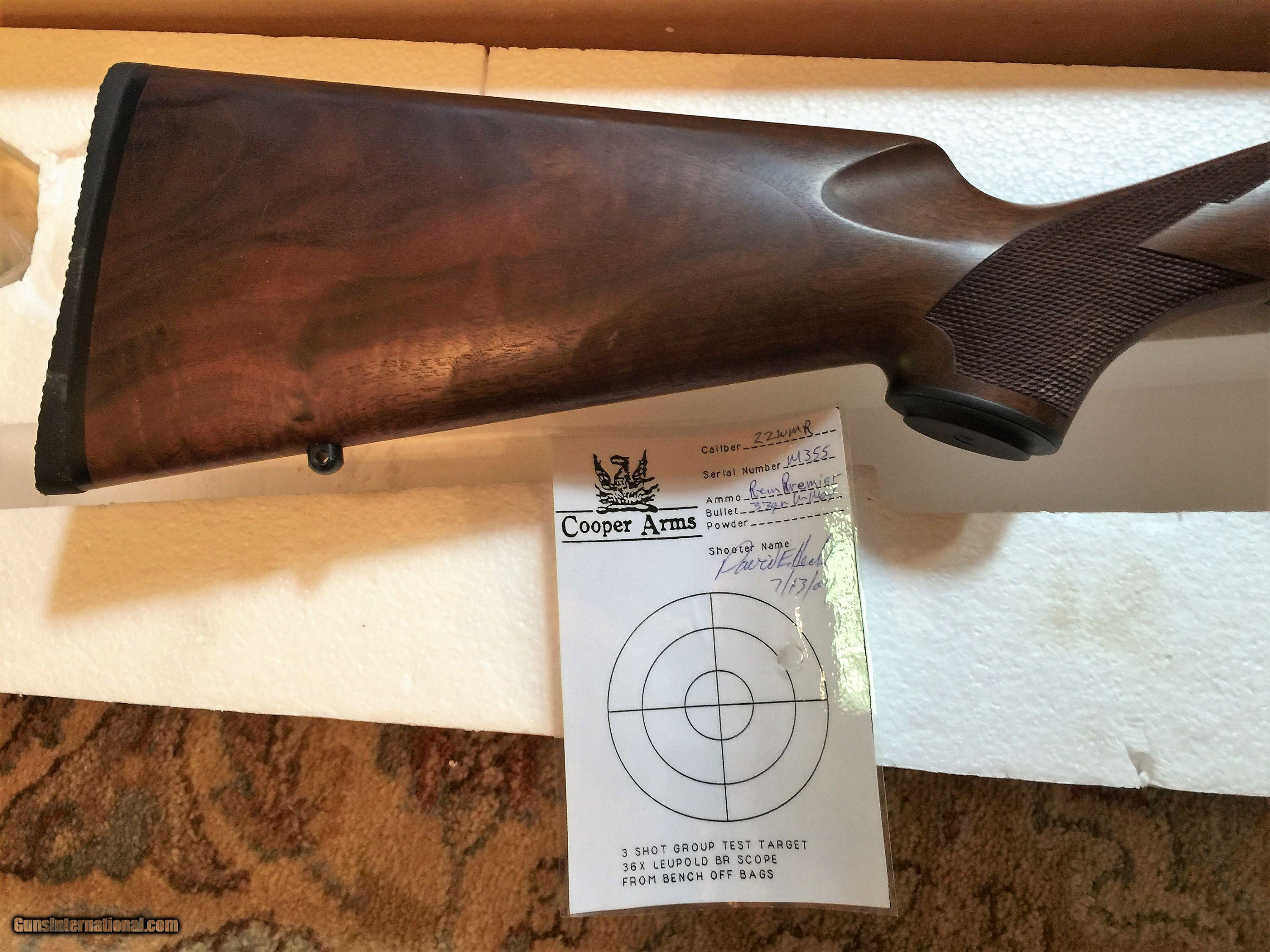 Description: THIS IS A NIB, BOLT HAS NEVER BEEN IN THE GUN SINCE THE FACTORY, COOPER OF MONTANA MODEL 57M IN .22 WMR. IT COMES WITH REDFIELD BASES INSTALLED. AMAZING TEST TARGET. SIH TO YOUR FFL IN THE LOWER 48 IS INCLUDED. SOLD |