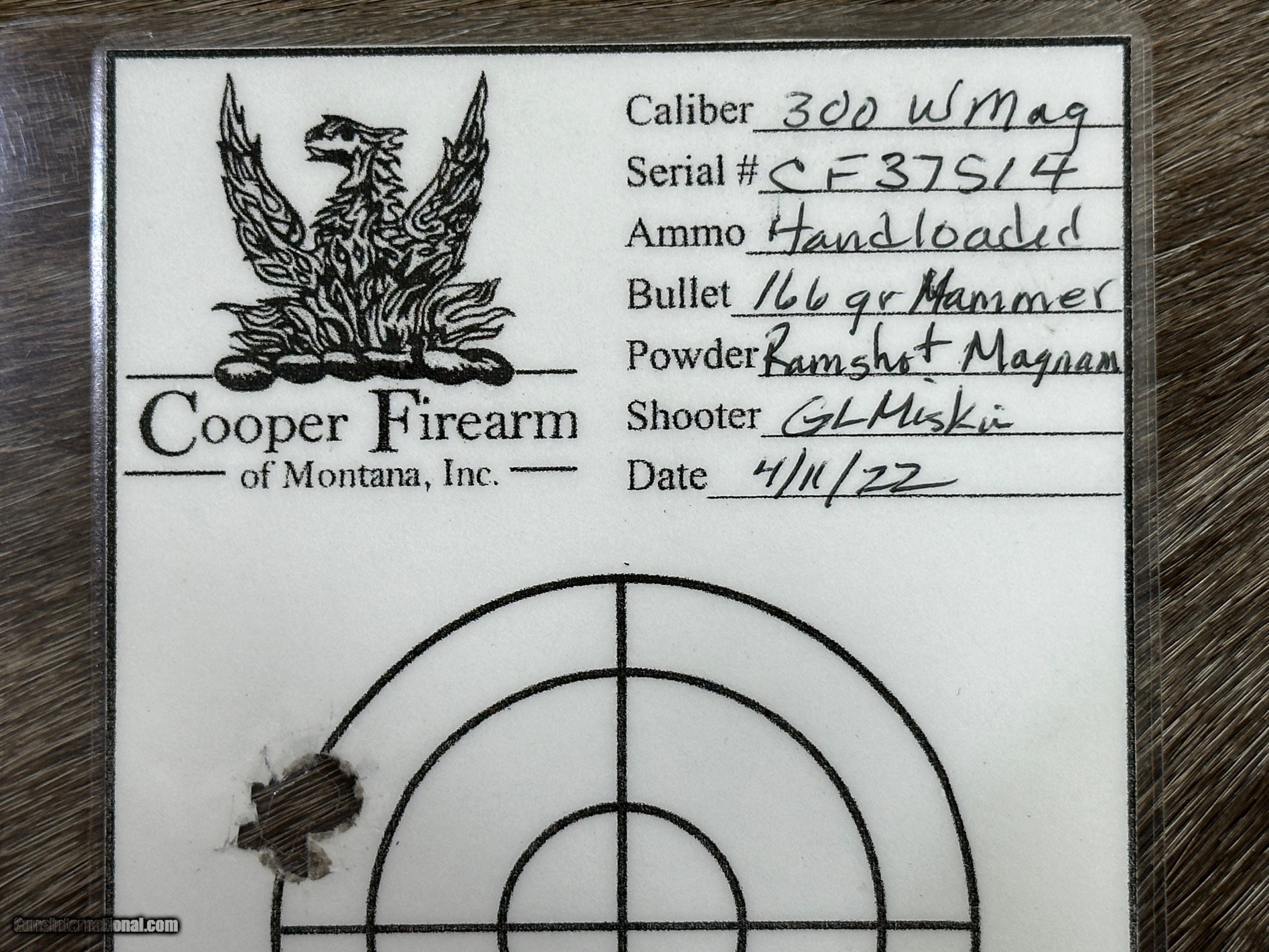 SOLD Rifle Caliber: .300 Winchester Magnum Manufacturer: Cooper Firearms of Montana Model: Model 52 Classic Serial Number: CF37514 Barrel Length: 24 Condition: LNIB - Pre-owned |