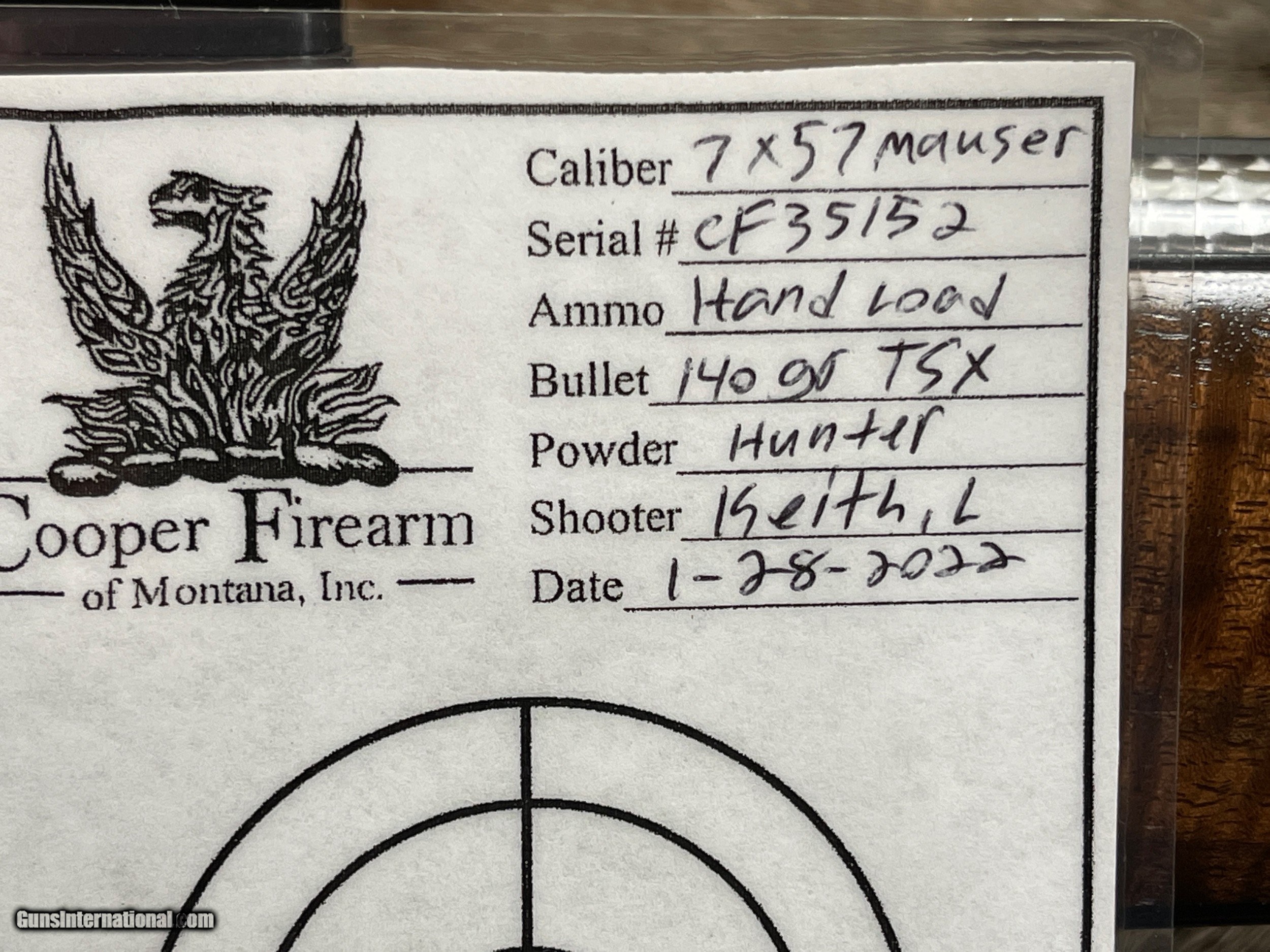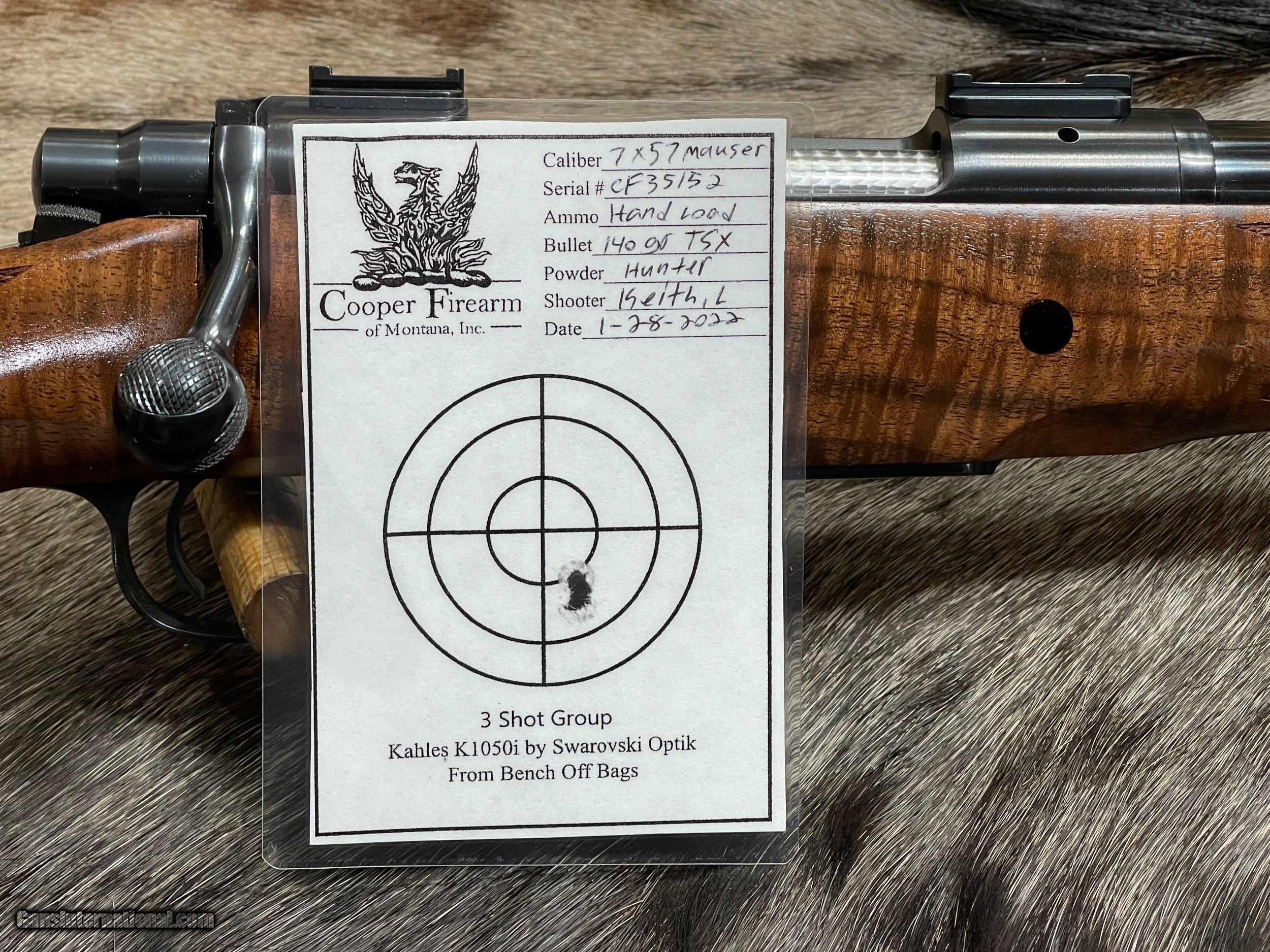 SOLD Rifle Caliber: 7x57mm Mauser Manufacturer: Cooper Firearms of Montana Model: Model 52 Plainsman Serial Number: CF35152 Condition: New Stock: AAA+ Claro Walnut |