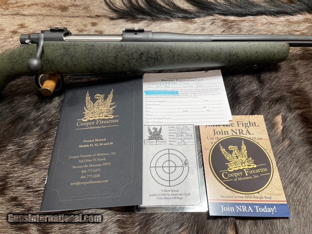 FREE SAFARI, NEW COOPER MODEL 52 EXCALIBUR RIFLE 6.5 PRC 24" - LAYAWAY AVAILABLE