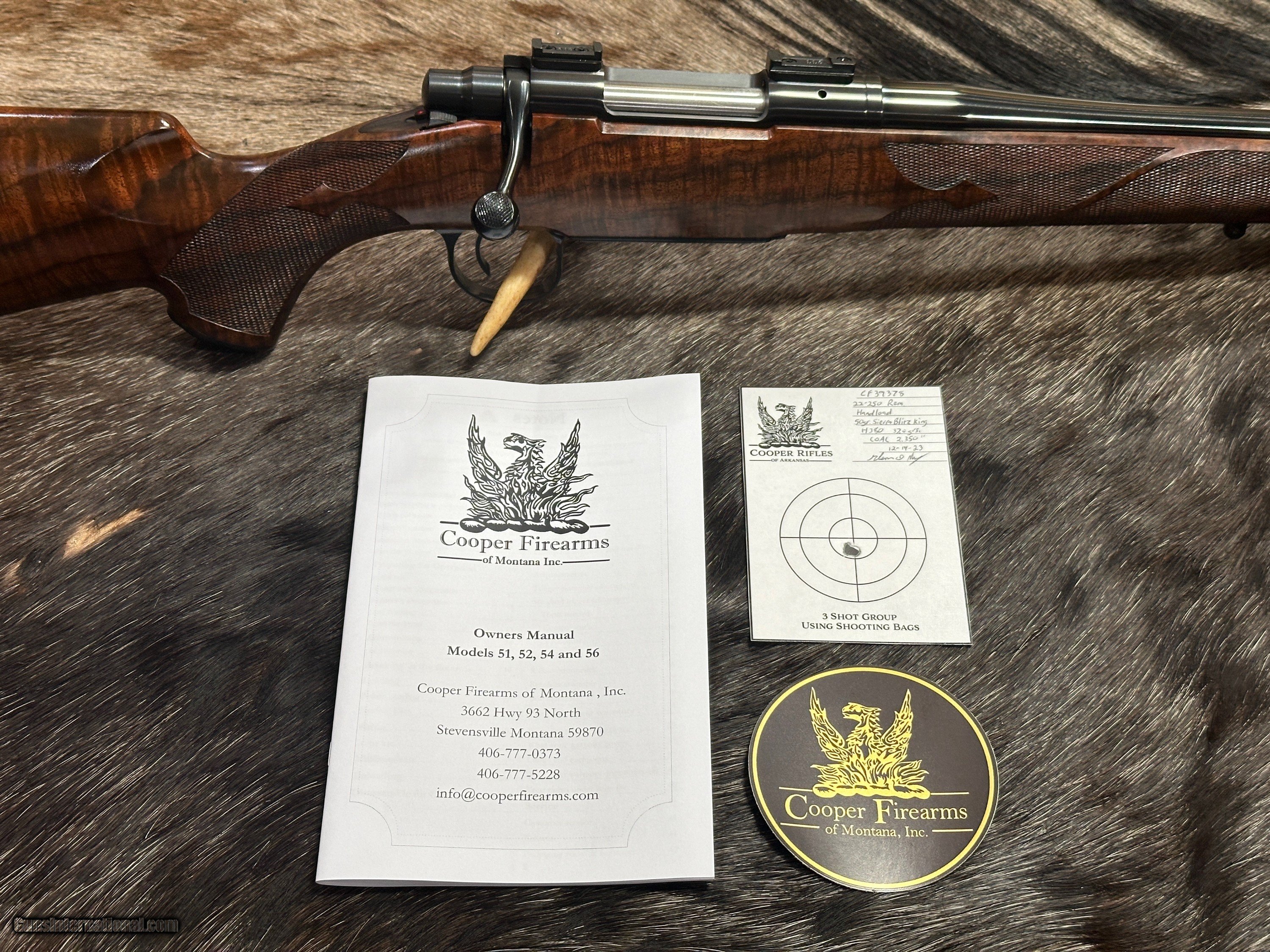Description: NEW COOPER FIREARMS OF ARKANSAS MODEL 54 CUSTOM CLASSIC RIFLE WITH AAA+ CLARO WALNUT AND OTHER UPGRADES IN 22-250 REMINGTON - LAYAWAY AVAILABLE THIS IS ONE OF THE FIRST "COOPER OF ARKANSAS" RILES TO BE BUILT BY NIGHTHAWK CUSTOM SINCE NIGHTHAWK PURCHASED COOPER RIFLES. FREE AFRICAN SAFARI WITH KUCHE SAFARIS (: KUCHE.CO.ZA) INCLUDED WITH THIS RIFLE! SAFARI IS FOR 1-HUNTER / 5-DAYS / 3-ANIMALS (IMPALA, BLESBUCK, WARTHOG). SAFARI IS CUSTOMIZABLE WITH AS MANY ADDITIONAL DAYS AND ANIMALS AS YOU WANT. THE CERTIFICATE IS GOOD FOR 3-YEARS FROM DATE OF PURCHASE AND WILL BE EMAILED TO YOU. NOTE: THE SAFARI IS FREE AND DOES NOT ADD ANY COST TO THE RIFLE. BUY A SCOPE AND RINGS FROM JD OUTFITTERS AND RECEIVE FREE MOUNTING. JD OUTFITTERS STOCKS LEUPOLD, SWAROVSKI, KAHLES, AND MANY OTHER SCOPES. Features Of This Great Bolt Action Rifle Include: