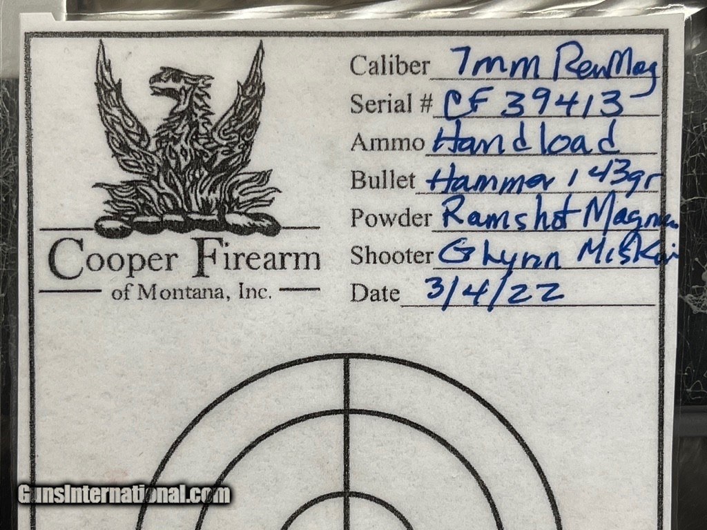 SOLD Rifle Caliber: 7mm Remington Magnum Manufacturer: Cooper Firearms of Montana Model: Model 92 Backcountry Left Hand Serial Number: CF39413 Condition: New Stock: Carbon and Kevlar |