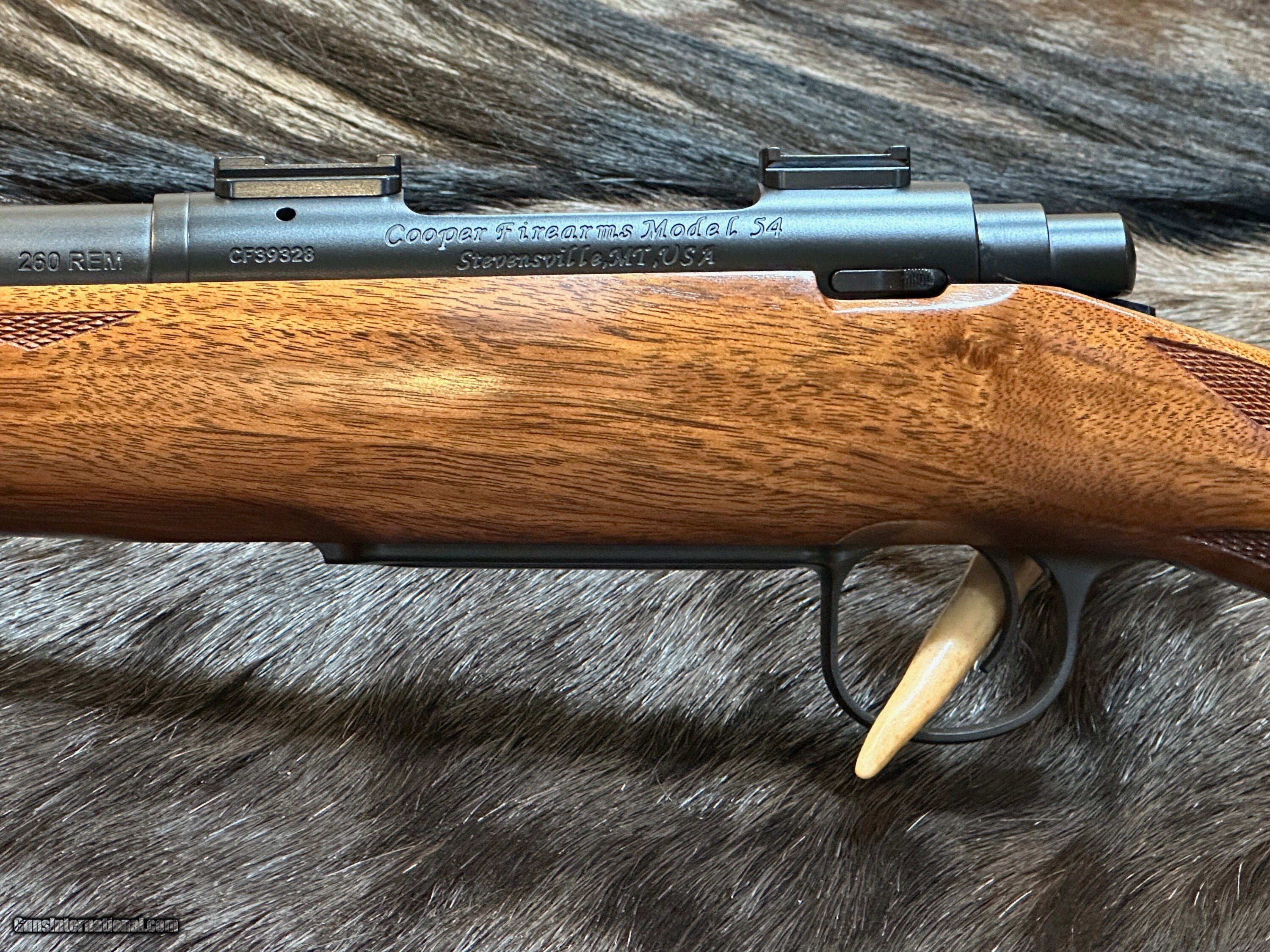 Description: NEW COOPER FIREARMS OF ARKANSAS MODEL 54 CLASSIC RIFLE WITH AA CLARO WALNUT AND OTHER UPGRADES IN 260 REMINGTON - LAYAWAY AVAILABLE FREE AFRICAN SAFARI WITH KUCHE SAFARIS (: KUCHE.CO.ZA) INCLUDED WITH THIS RIFLE! SAFARI IS FOR 1-HUNTER / 5-DAYS / 3-ANIMALS (IMPALA, BLESBUCK, WARTHOG). SAFARI IS CUSTOMIZABLE WITH AS MANY ADDITIONAL DAYS AND ANIMALS AS YOU WANT. THE CERTIFICATE IS GOOD FOR 3-YEARS FROM DATE OF PURCHASE AND WILL BE EMAILED TO YOU. NOTE: THE SAFARI IS FREE AND DOES NOT ADD ANY COST TO THE RIFLE. BUY A SCOPE AND RINGS/BASES FROM JD OUTFITTERS AND RECEIVE FREE MOUNTING. JD OUTFITTERS STOCKS LEUPOLD, SWAROVSKI, KAHLES, AND MANY OTHER SCOPES. Features Of This Great Bolt Action Rifle Include: LAYAWAY AVAILABLE - $1,000 DOWN AND UP TO 6 MONTHS TO PAY OUT. TO START THE LAYAWAY, CONTACT JD AT 405/822.1564. ADDITIONAL TERMS OF THE SALE