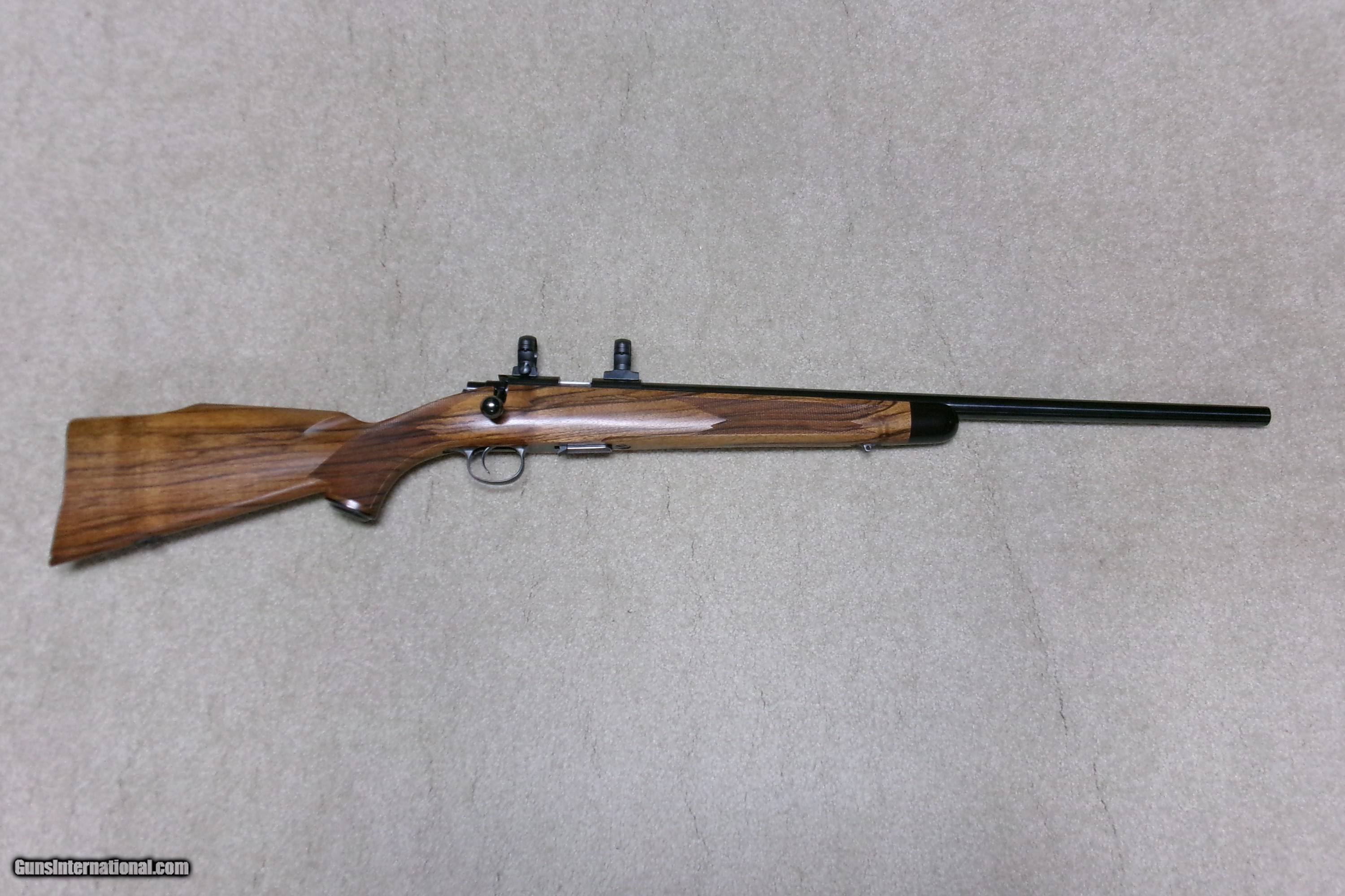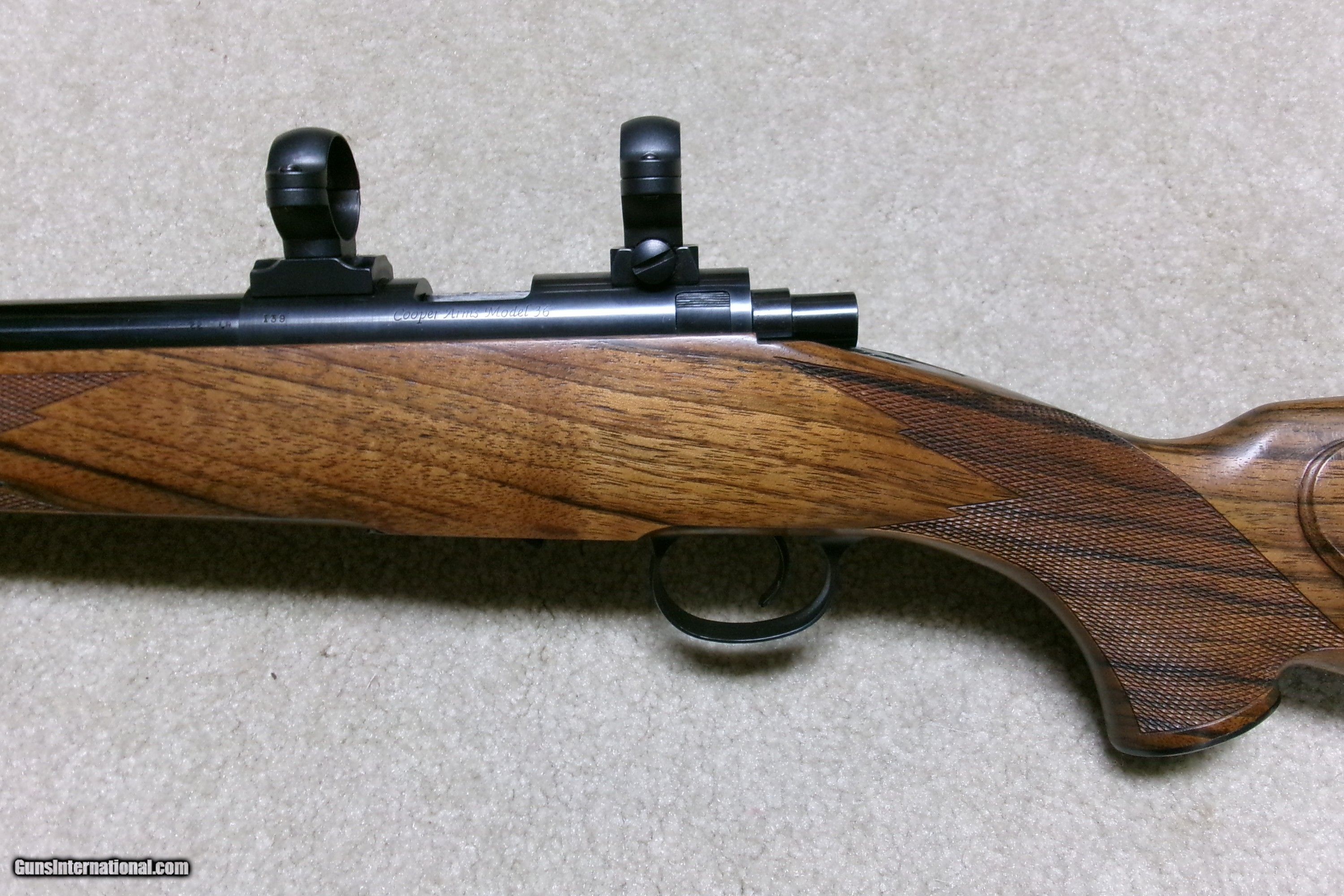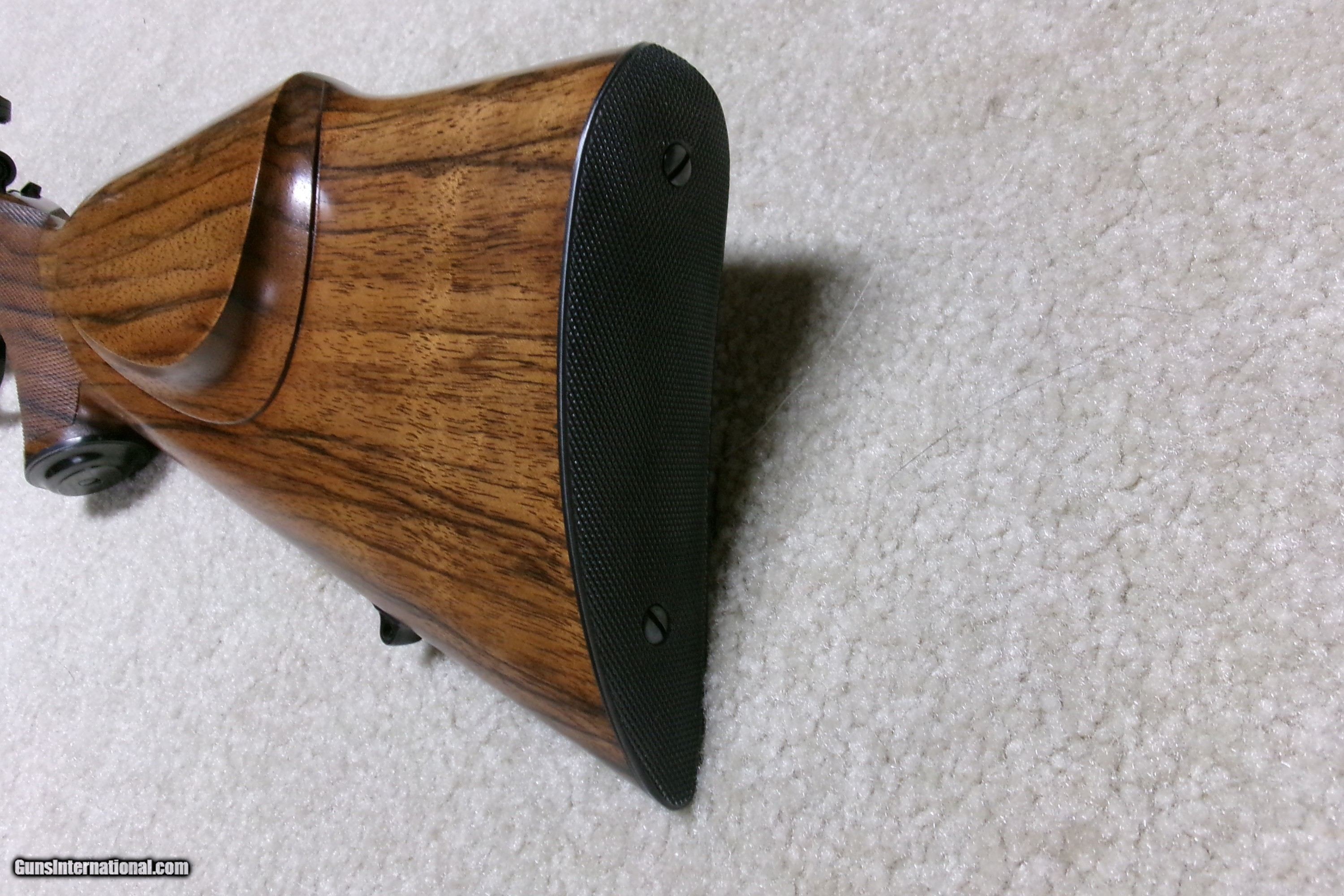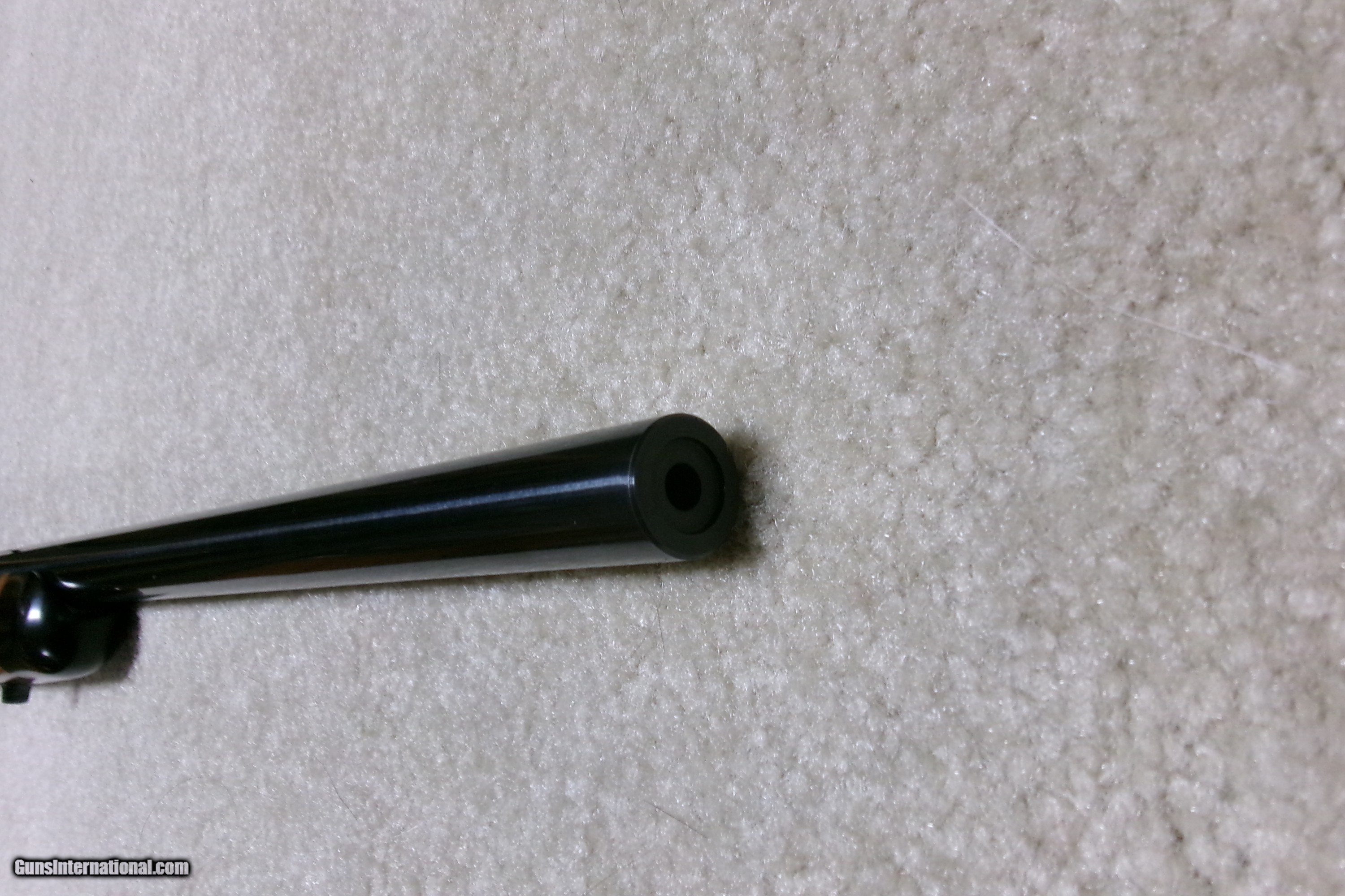 Description: SPECTACULAR HIGH GRADE COOPER ARMS MODEL 36 .22 LR BOLT ACTION REPEATER, #1XX. This is a gorgeous custom rifle with beautiful English walnt stock with cheek piece and accent line. It also features a finely checkered steel butt plate with "tear drop" at the top, steel grip cap, sharp checkered wrist and forend, ebony forend tip and inletted sling swivel studs. The 23" barrel is a stout sporter weight with target crown, but not a heavy bull target weight barrel. This rifle comes complete with factory 5 round magazine and scope mounts and rings. As shown in the photos it weighs right about 7 1/2 lbs. All in like new condition. One of the most handsome and classy .22 bolt rifles I've seen in a while and would cost a fortune to replicate. SOLD Rifle Caliber: .22 Long Rifle Manufacturer: COOPER ARMS Model: MODEL 36 Serial Number: 1XX Barrel Length: 23 Condition: LIKE NEW |