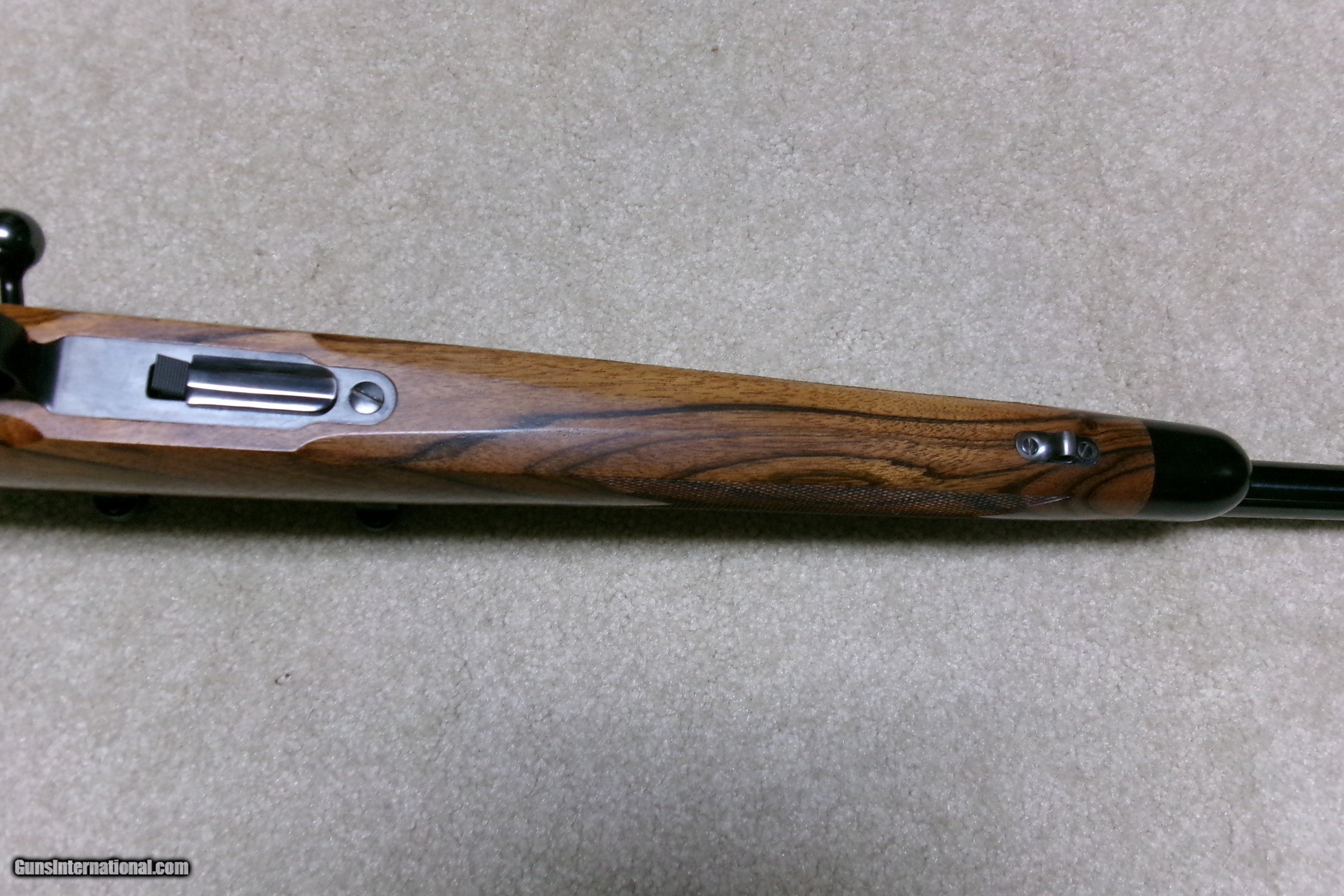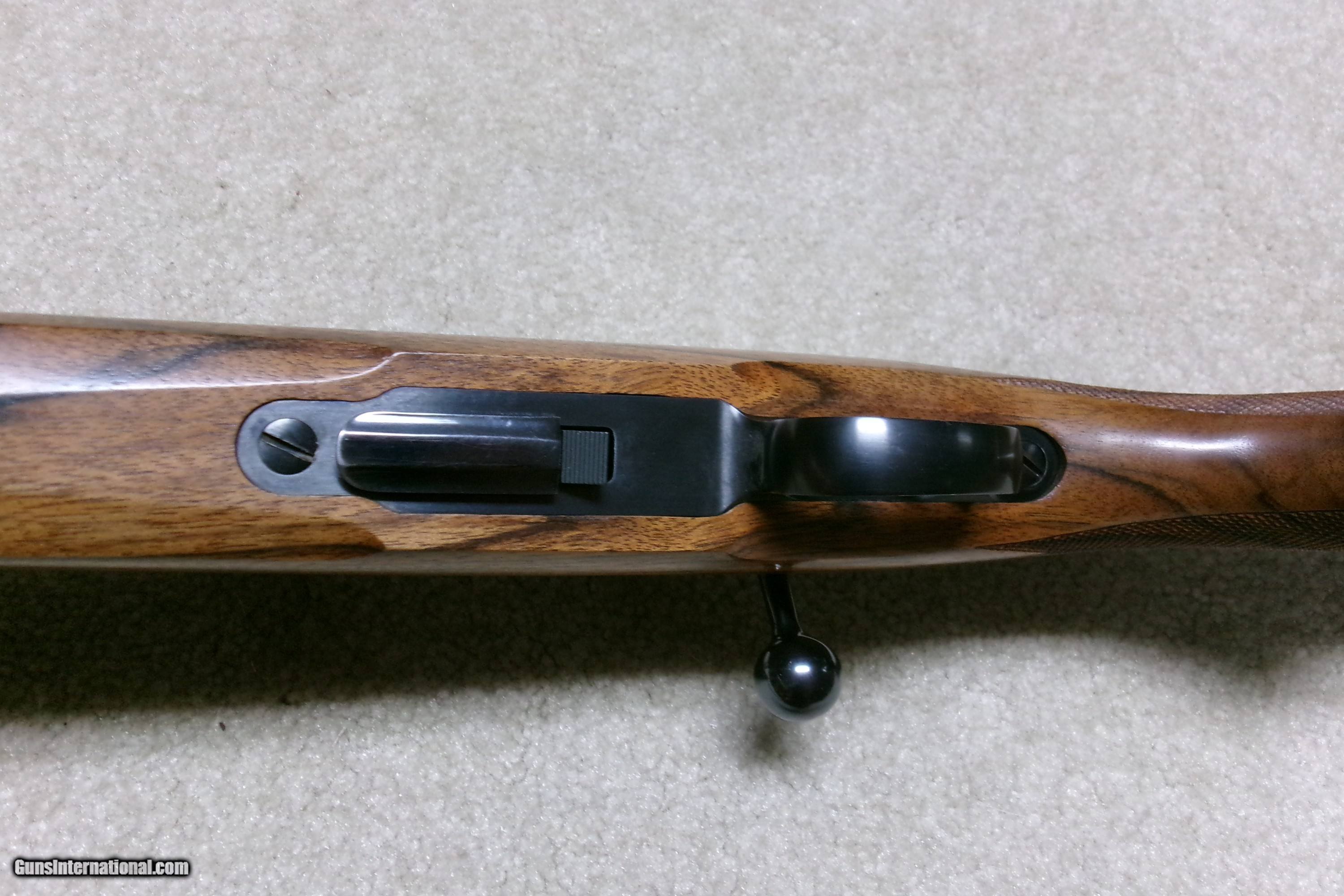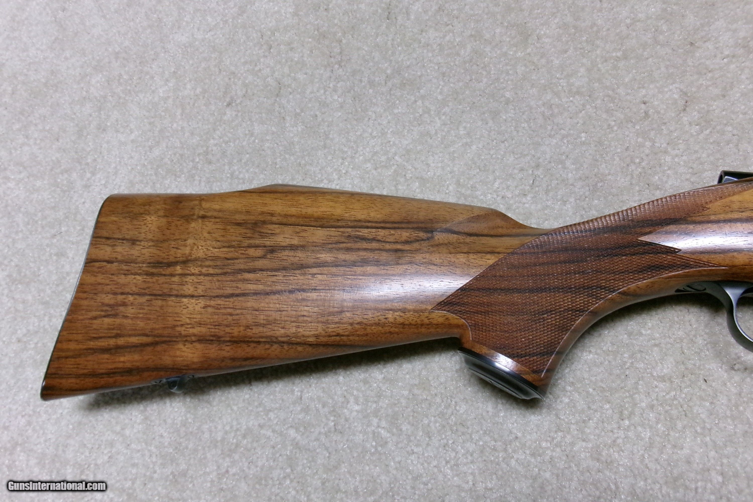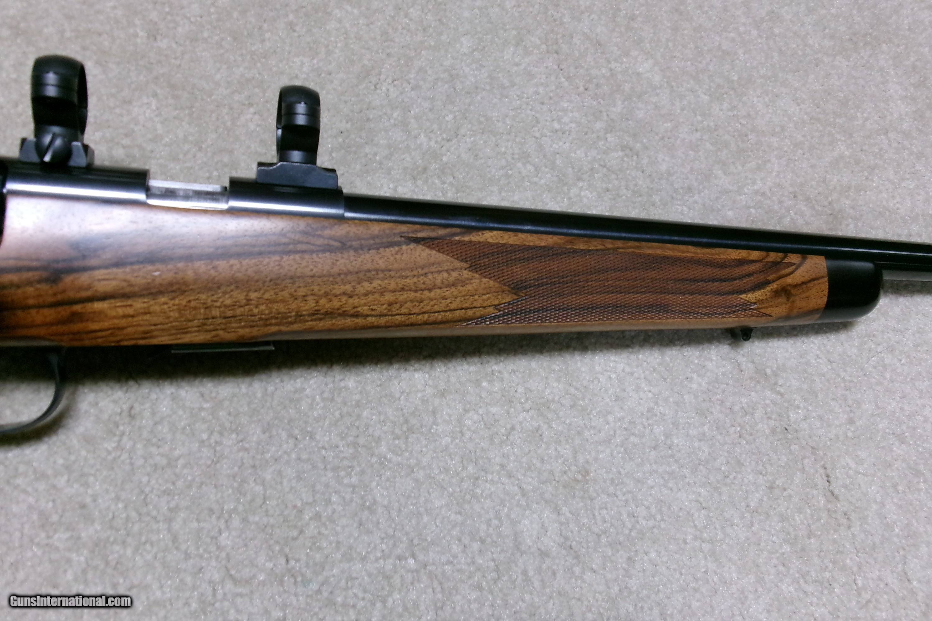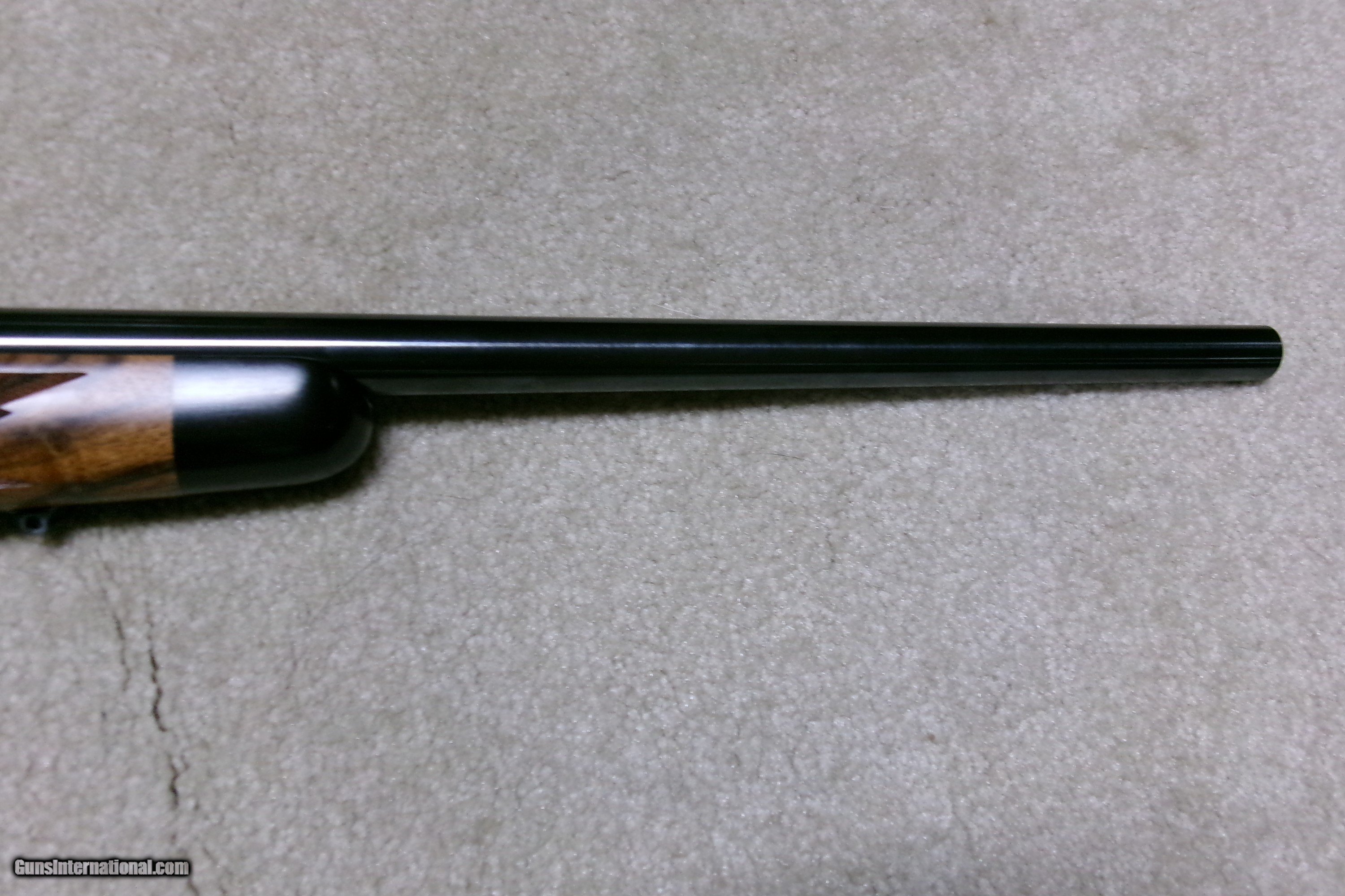 Description: SPECTACULAR HIGH GRADE COOPER ARMS MODEL 36 .22 LR BOLT ACTION REPEATER, #1XX. This is a gorgeous custom rifle with beautiful English walnt stock with cheek piece and accent line. It also features a finely checkered steel butt plate with "tear drop" at the top, steel grip cap, sharp checkered wrist and forend, ebony forend tip and inletted sling swivel studs. The 23" barrel is a stout sporter weight with target crown, but not a heavy bull target weight barrel. This rifle comes complete with factory 5 round magazine and scope mounts and rings. As shown in the photos it weighs right about 7 1/2 lbs. All in like new condition. One of the most handsome and classy .22 bolt rifles I've seen in a while and would cost a fortune to replicate. SOLD Rifle Caliber: .22 Long Rifle Manufacturer: COOPER ARMS Model: MODEL 36 Serial Number: 1XX Barrel Length: 23 Condition: LIKE NEW |