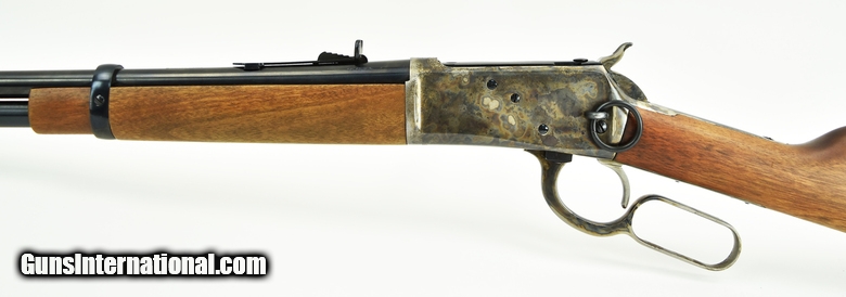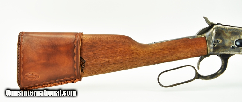 Description: EMF Hartford .44-40 Win caliber carbine. Saddle Ring Cowboy carbine with case colored receiver and leather butt pad in excellent condition.