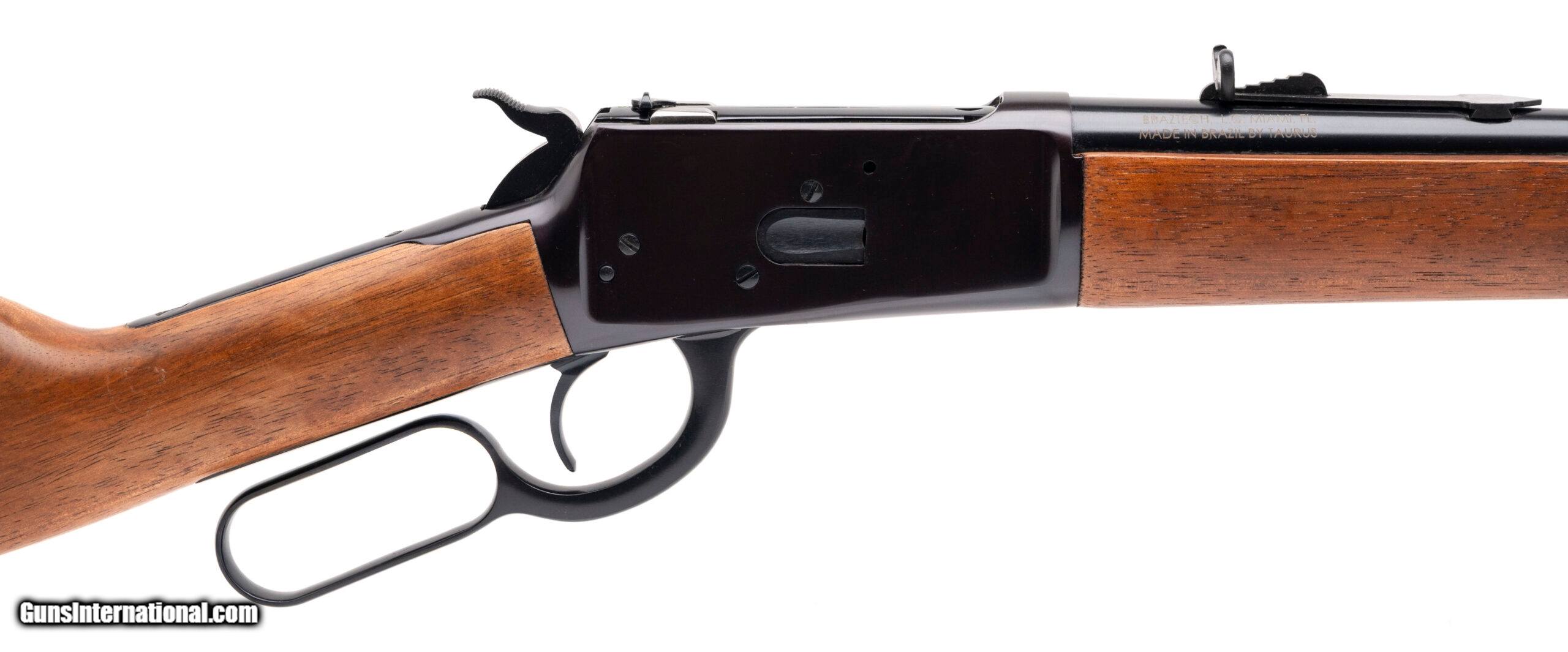 Description: "SN: 5GT081137. Modern production, .45 Colt with a 20"" barrel. Bore is very good. Brazilian made lever-action rifle with a beaded front sight, adjustable semi-buckhorn rear sight, blued finish, and wood forend & stock. Finish & stock show minor marks. Overall condition is very good. Price: $649.95 Contact Seller |