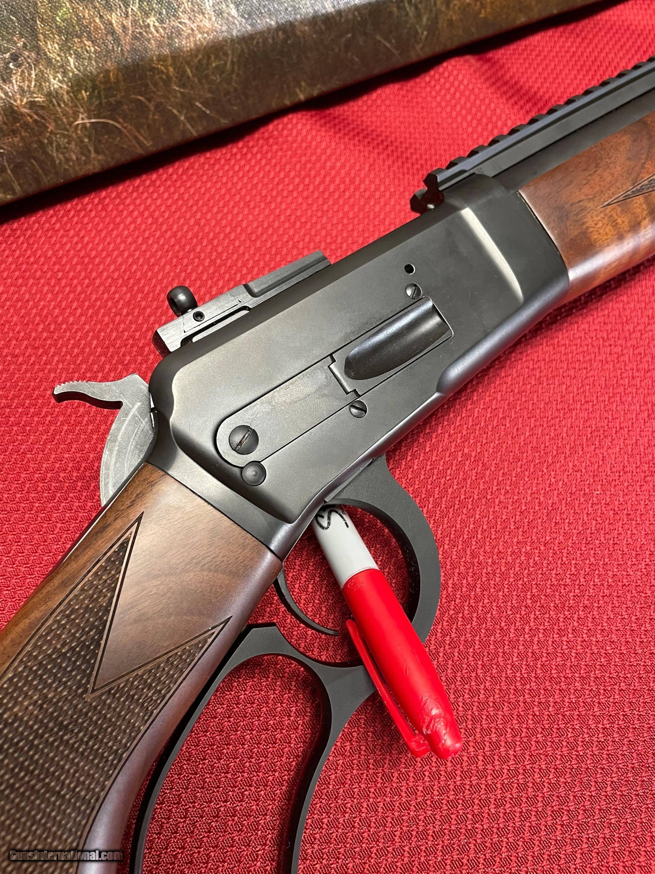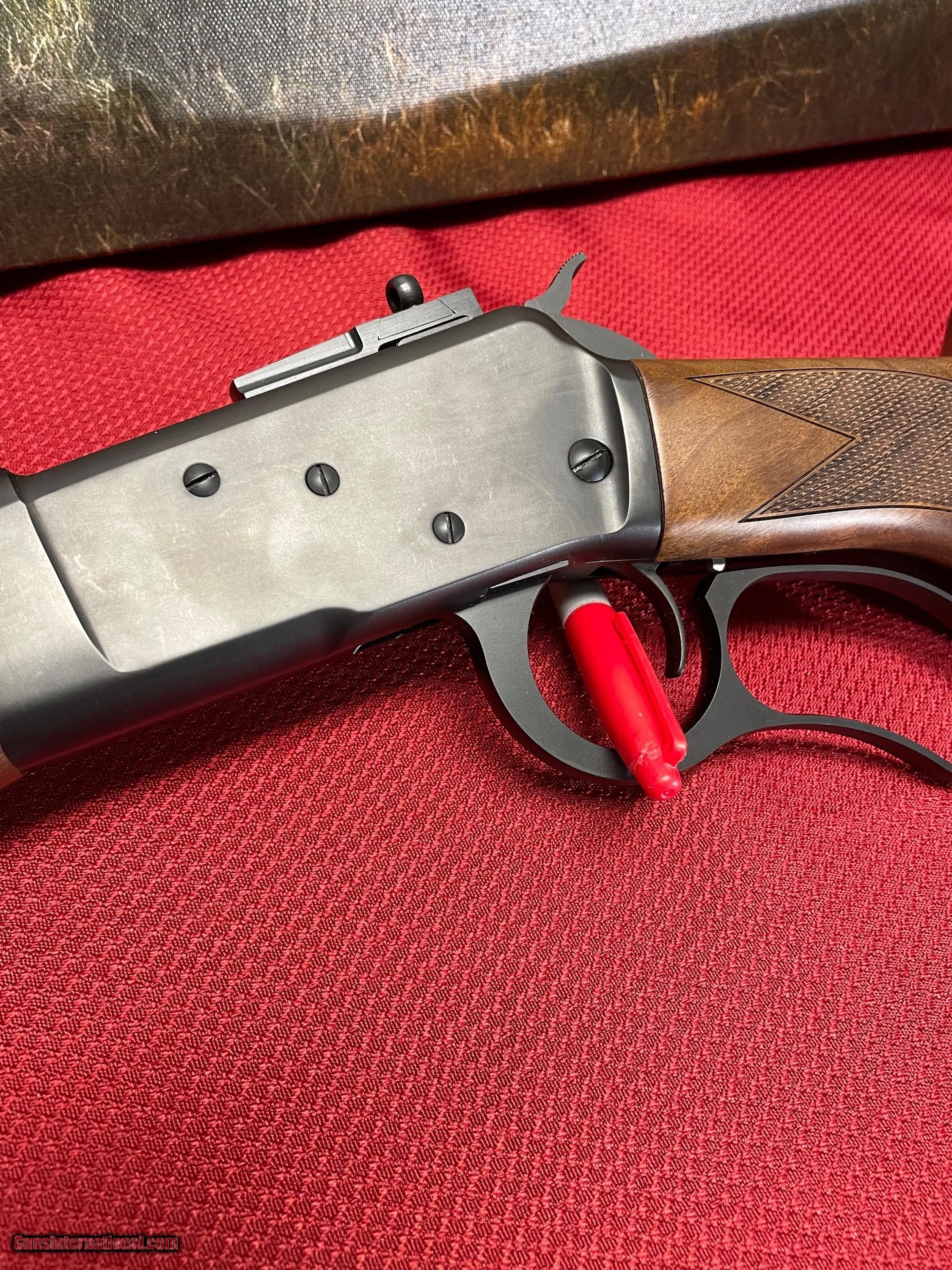 Description: You probably will not see this one in deer camp this year! Up for sale is a new Big Horn Armory Model 89 "Spike Driver", chambered in 500 S&W Magnum. I purchased this rifle new in 2020 after a year wait, but time and circumstances have gotten in the way so it remains unfired. The model has an 18" blue barrel, optional factory scope mount, factory installed Skinner Peep Sight. It includes factory paperwork and factory hard plastic case. The condition, in my opinion, is excellent but take a look at the pictures and judge for yourself. Feel free to call or text (580) 320-3521 for more pictures, information or offers. This rifle can be picked up in Ada or Durant, buyer must be state resident and willing to sign BOS. Shipping/insurance is available at buyers expense to your FFL of choice, please be sure they will accept shipments from a non-FFL. Factory ammo for this rifle also available by separate sale. I will be slowly listing more and more rifles, hunting handguns, scope and ammo. SOLD Handgun Caliber: .500 S&W Magnum Manufacturer: Big Horn Armory Model: 89 Spike Driver Condition: Excellent Metal Condition: Excellent Wood Condition: Excellent Bore Condition: Excellent Barrel Type: Blued Action: Lever Action Stock: Walnut, Straight, CheckeredGrip Finish: Blued & Wood Sights: Skinner Peep-Factory Item Location: Ada, Durant Oklahoma |