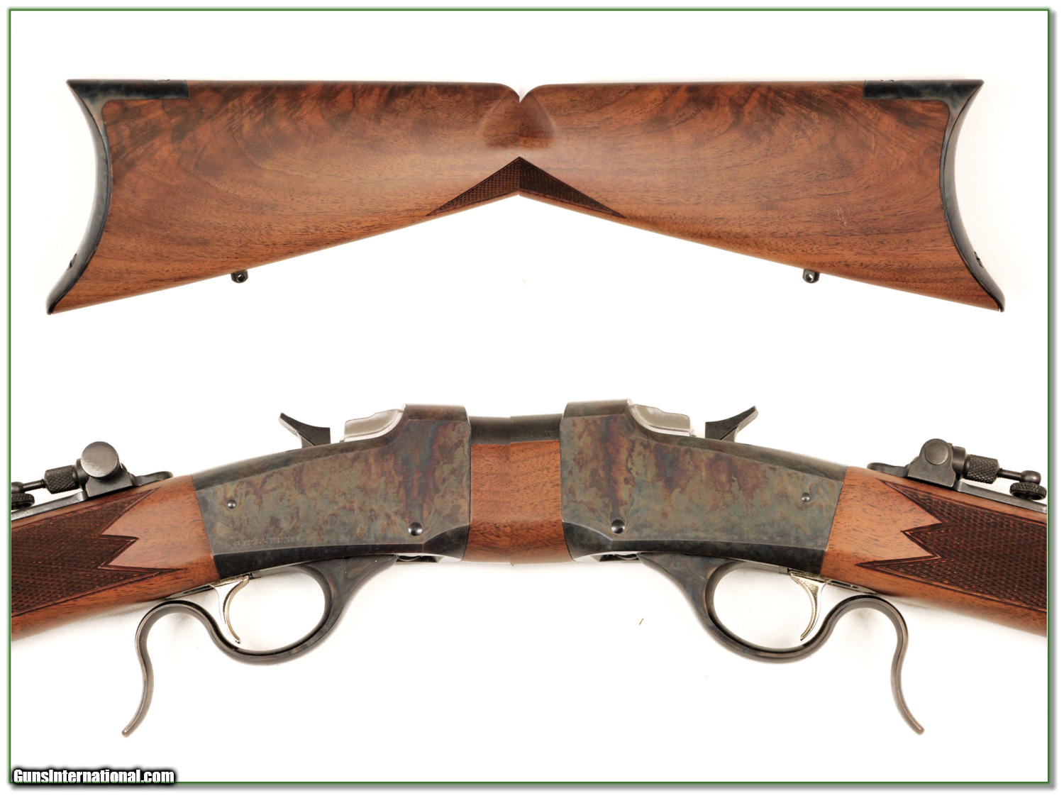 Description: Collectors and shooters this is a beautiful and hard to find Browning 1885 Low Wall Traditional hunter in 45 Colt. These guns have beautiful case coloring and halve octagonal barrels. And the oil-finished wood is high grade! This one comes in original box with tang rear site. I am selling this one on consignment and as such lay-a-way can’t be used. It does of course have the standard 3 day inspection. Shipping and insurance is $35. Please email me with any questions or larger pictures. (I now consign quality firearms only 10%! Let me know if you have any you would like to sell!) [15-1334] Payment: Payment is by Money Order, Cashiers Check or Personal Check. I can now also accept MasterCard and Visa with a 3% convenience fee. PayPal can be used for some items but never firearms. Please let us know if you would like to pay via PayPal. Shipping: The shipping charge will be listed in each description. It is $35 for most guns. Some heavy guns or those insured for over $2000 will be higher. Shipments to Alaska and Hawaii are higher because air shipment is required. Most firearms are shipped within 5 days of receipt of payment. We prefer shipping at the beginning of the week to avoid firearms in transit over weekends. We package all shipments carefully and insure them for the full purchase price, rounded up to the next $100. In the unlikely event that damage occurs, it is important that you save all packaging material for the claims process. Optics are shipped Priority Mail and most other non-firearm shipments are shipped First Class. Returns: Our return policy is simple. If for any reason you are not pleased with your purchase, you may return your item for a refund. The only exception is ammunition, it cannot be returned. It is important to us that you are happy. Guns cannot be fired or dissembled before returning them and must be returned in the same condition as received. Notification of a return must occur with-in 3 days of receipt at your dealer. Shipping, convenience and dealer fees are not refundable and are the responsibility of the buyer. Lay-a-way: If needed, we offer a 60 day lay-a-way option on most firearms. It is 1/3 now, 1/3 in 30 days and 1/3 in 60 days. Lay-a-way firearm sales are final. Consigning your firearms with Shooting Investments: We will help you get top dollar for your firearms. While most local guns shops charge 20% or more, our fee is only 10% with a minimum of $50. At your local gun shop it might take months to sell. Selling on-line provides instant access to thousands of interested buyers. You won’t find any other on-line dealer willing to sell your firearms for only 10% or listing every gun on 4 separate s. Selling through an House typically costs the seller 15% and the buyer an addition 15% (so 30%) and you have to wait several months to sell and longer to receive funds. If properly priced, we will sell your firearms in a week or two. Send us an email or give us a call and we’ll explain how easy it is for you to get top dollar. Trading: We collect guns and usually just trade for guns we want to add to our collections. We often sell guns for others wanting to purchase one of ours. We find this the most fair to both of us. Our Commission is only 10% and we hold the gun you want until yours sells. Please contact us if you want to sell one of yours to buy one of ours. Help for California Buyers: We are happy to ship to California. It is the buyer’s responsibility to make sure any item you buy is legal in your state. We are also happy to help with your purchase of a firearm from someone other than us. If you see a gun you would like to buy but the seller can’t or won’t ship to California we can help. You buy the gun and have it shipped to us. We’ll then ship it to your California dealer. The cost for this service is only $30 + shipping. Let me know if we can help! SOLD |