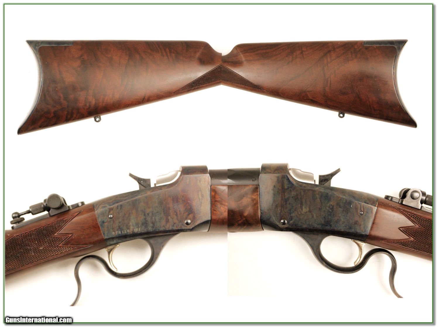 Description: Collectors and shooters this is a beautiful and hard to find Browning 1885 Low Wall Traditional hunter in 44 Rem Mag. These guns have beautiful case coloring and half octagonal barrels. And the oil finished wood is high grade! This one is NIB and look at the wood. I have had many seen many more but this one has the nicest wood I have ever seen on one! You may never find a nicer one. It is a true Shooting Investment! Shipping and insurance is $35. Please email me with any questions or larger pictures. (I now consign quality firearms only 10%! Let me know if you have any you would like to sell!) [16-0095] Payment: Payment is by Money Order, Cashiers Check or Personal Check. I can now also accept MasterCard and Visa with a 3% convenience fee. PayPal can be used for some items but never firearms. Please let us know if you would like to pay via PayPal. Shipping: The shipping charge will be listed in each description. It is $35 for most guns. Some heavy guns or those insured for over $2000 will be higher. Shipments to Alaska and Hawaii are higher because air shipment is required. Most firearms are shipped within 5 days of receipt of payment. We prefer shipping at the beginning of the week to avoid firearms in transit over weekends. We package all shipments carefully and insure them for the full purchase price, rounded up to the next $100. In the unlikely event that damage occurs, it is important that you save all packaging material for the claims process. Optics are shipped Priority Mail and most other non-firearm shipments are shipped First Class. Returns: Our return policy is simple. If for any reason you are not pleased with your purchase, you may return your item for a refund. The only exception is ammunition, it cannot be returned. It is important to us that you are happy. Guns cannot be fired or dissembled before returning them and must be returned in the same condition as received. Notification of a return must occur with-in 3 days of receipt at your dealer. Shipping, convenience and dealer fees are not refundable and are the responsibility of the buyer. Lay-a-way: If needed, we offer a 60 day lay-a-way option on most firearms. It is 1/3 now, 1/3 in 30 days and 1/3 in 60 days. Lay-a-way firearm sales are final. Consigning your firearms with Shooting Investments: We will help you get top dollar for your firearms. While most local guns shops charge 20% or more, our fee is only 10% with a minimum of $50. At your local gun shop it might take months to sell. Selling on-line provides instant access to thousands of interested buyers. You won’t find any other on-line dealer willing to sell your firearms for only 10% or listing every gun on 4 separate s. Selling through an House typically costs the seller 15% and the buyer an addition 15% (so 30%) and you have to wait several months to sell and longer to receive funds. If properly priced, we will sell your firearms in a week or two. Send us an email or give us a call and we’ll explain how easy it is for you to get top dollar. Trading: We collect guns and usually just trade for guns we want to add to our collections. We often sell guns for others wanting to purchase one of ours. We find this the most fair to both of us. Our Commission is only 10% and we hold the gun you want until yours sells. Please contact us if you want to sell one of yours to buy one of ours. Help for California Buyers: We are happy to ship to California. It is the buyer’s responsibility to make sure any item you buy is legal in your state. We are also happy to help with your purchase of a firearm from someone other than us. If you see a gun you would like to buy but the seller can’t or won’t ship to California we can help. You buy the gun and have it shipped to us. We’ll then ship it to your California dealer. The cost for this service is only $30 + shipping. Let me know if we can help! SOLD |