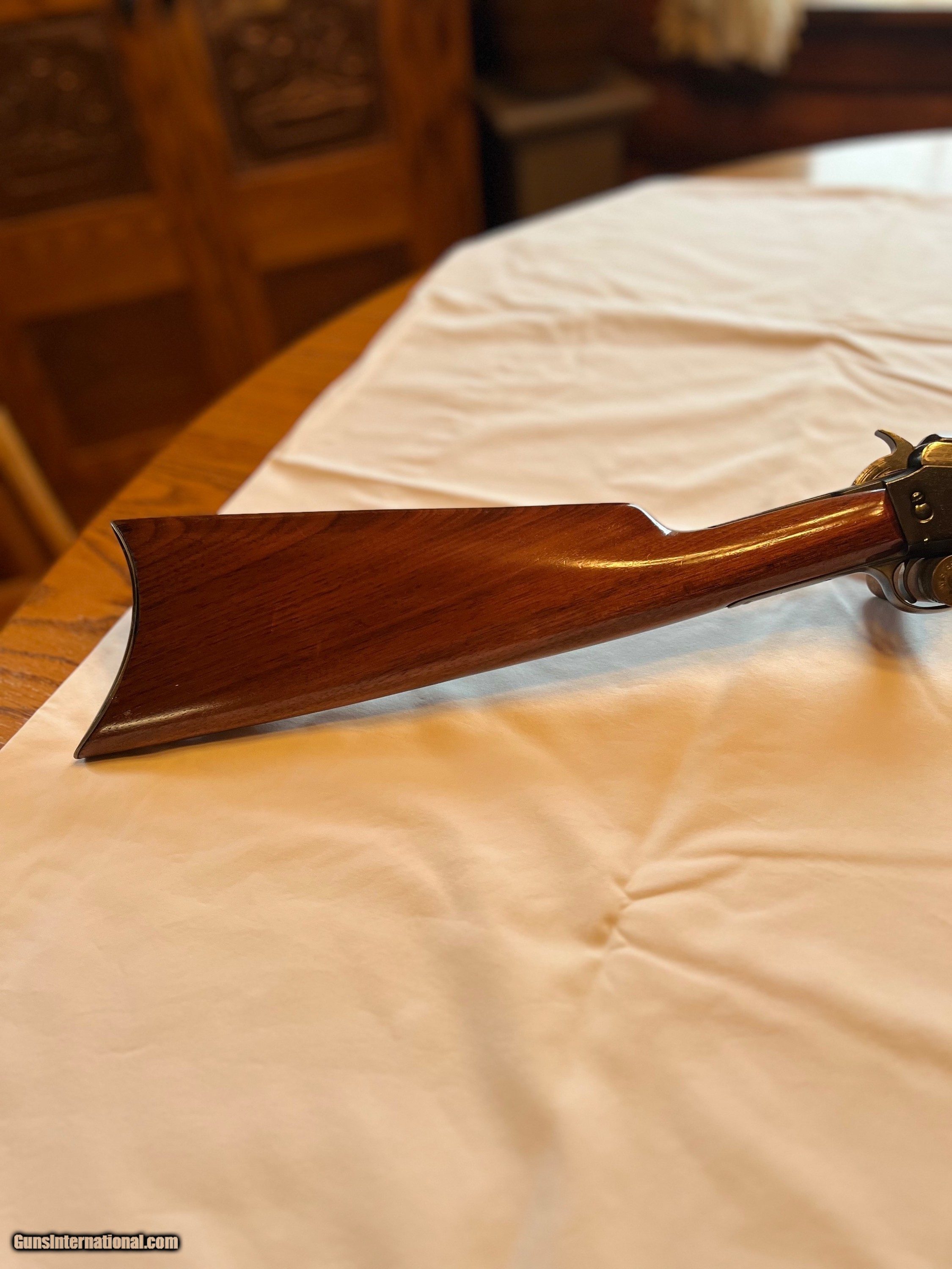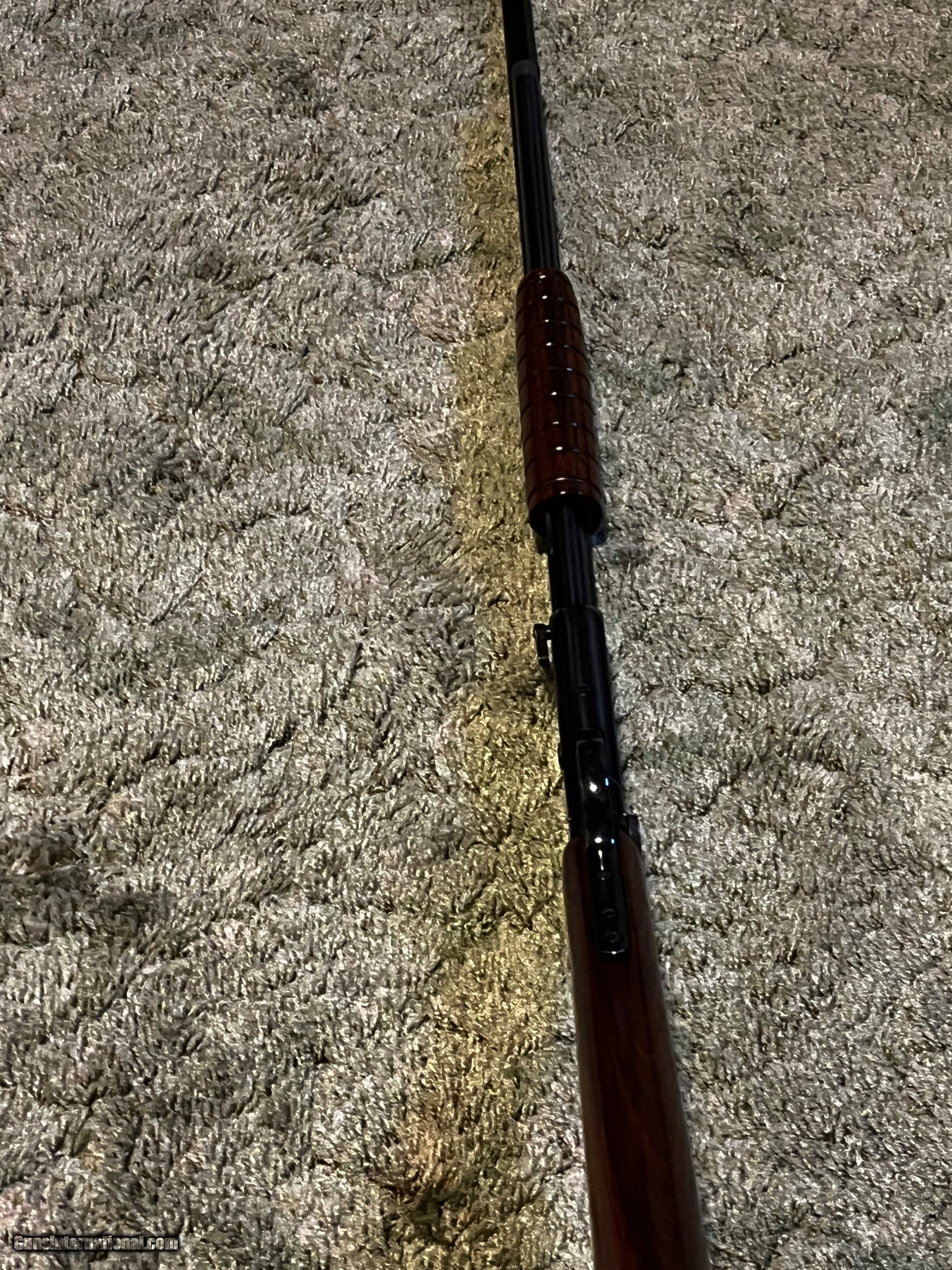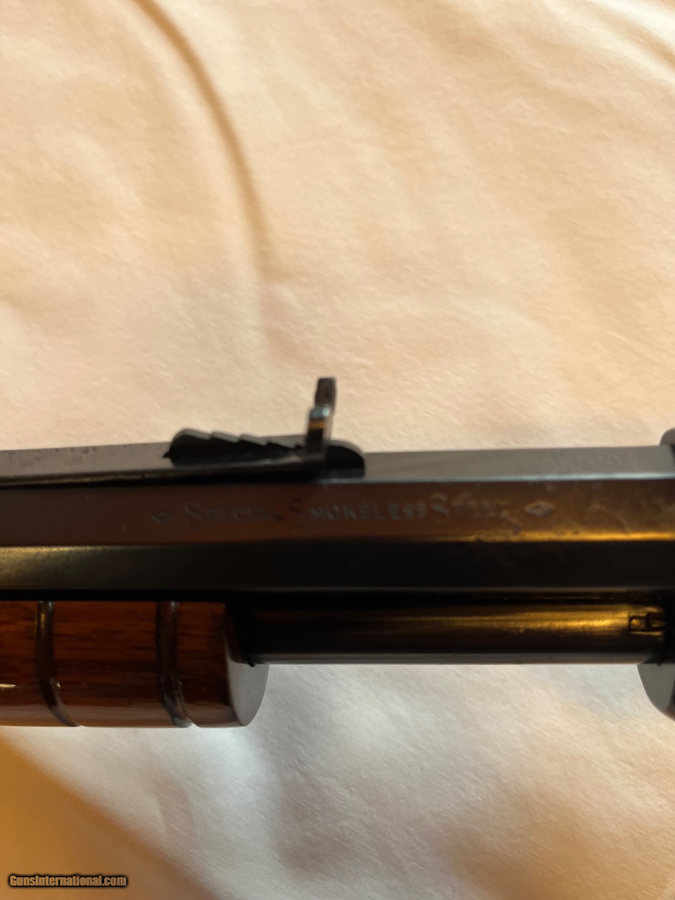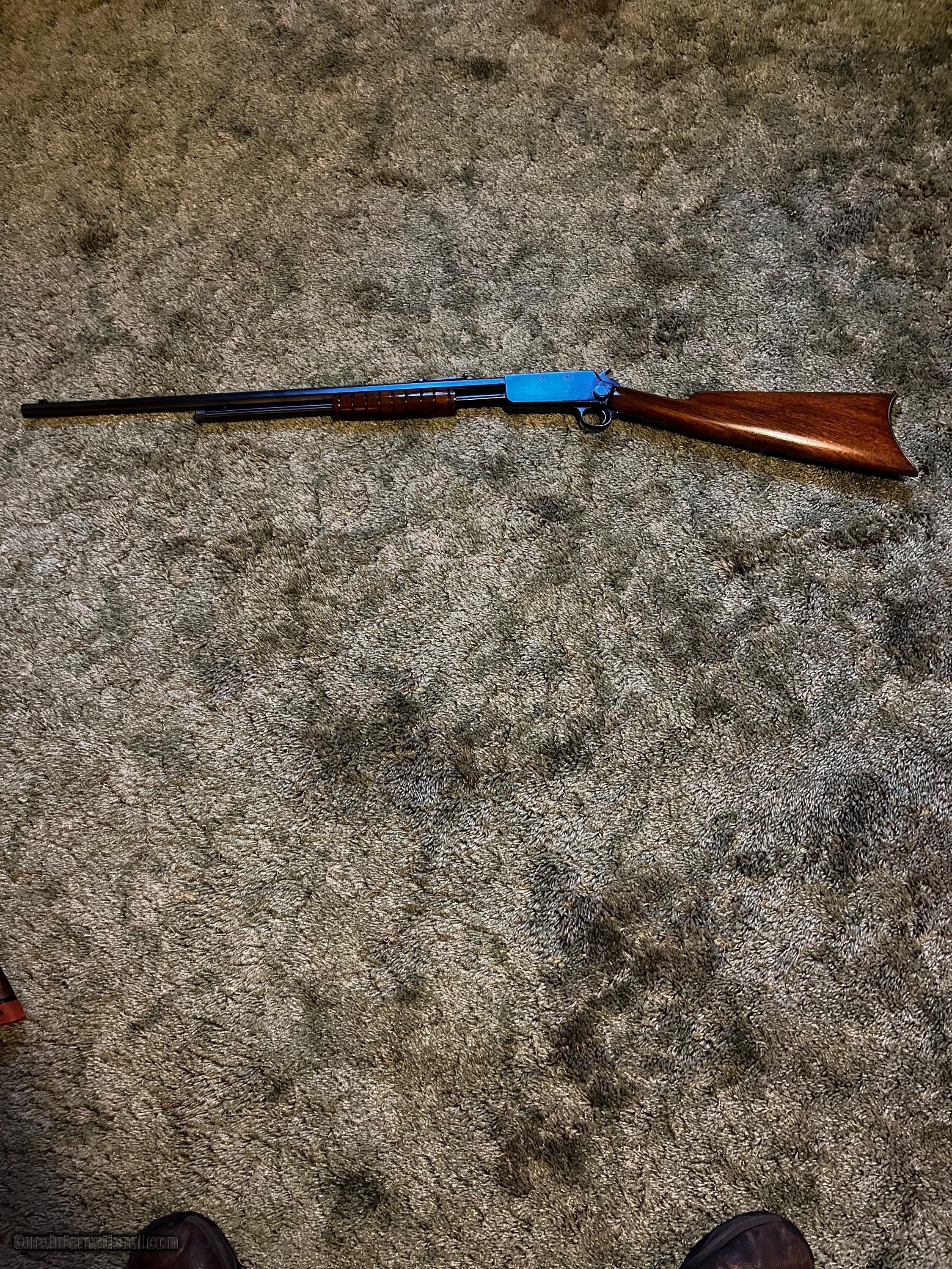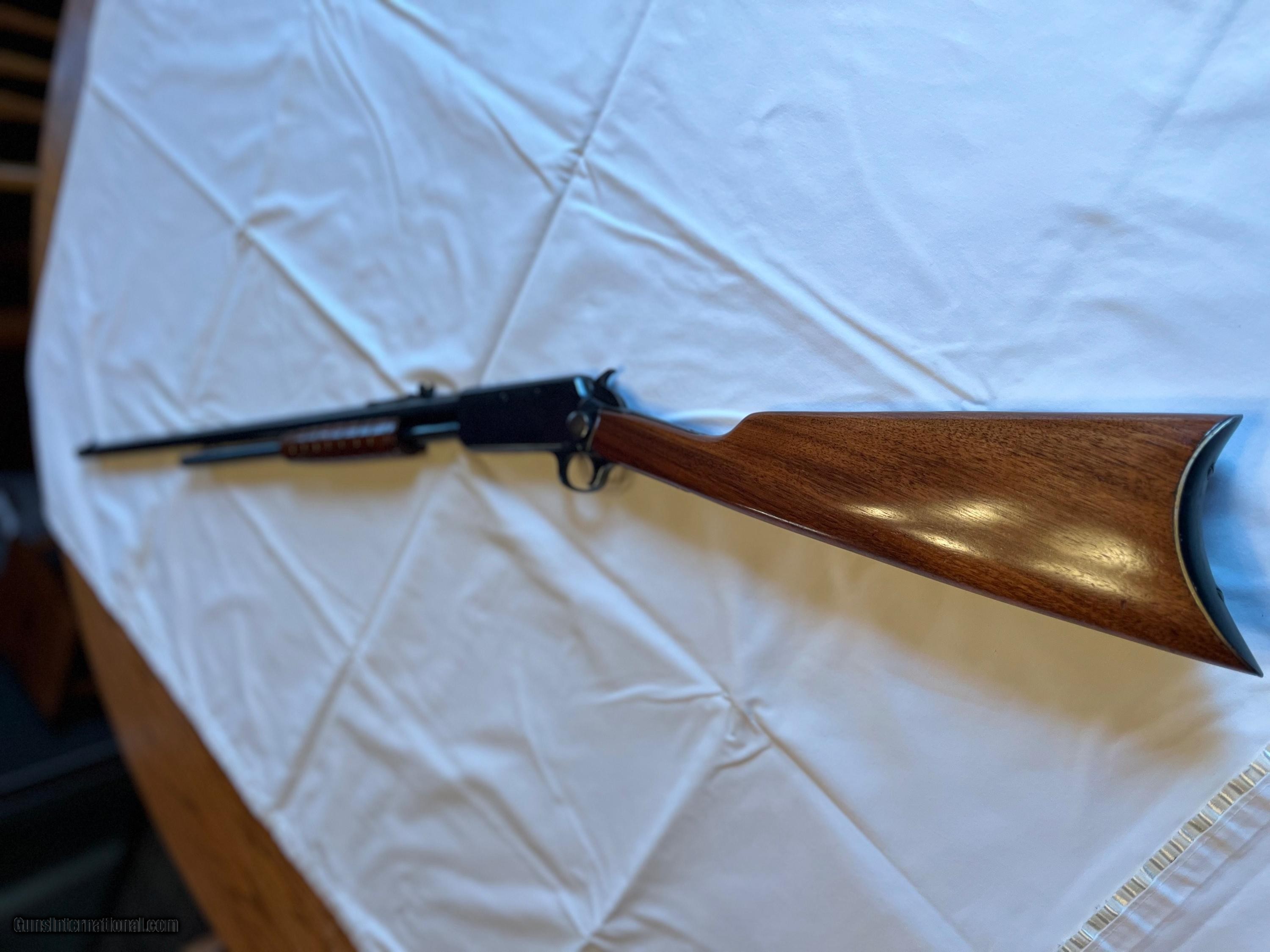 Description: Marlin model 27S slide action takedown .32-20 with 24" octagonal barrel, walnut stock and forearm, 9 shot tubular magazine and Swiss style steel buttplate. Serial no. 12083 . Everything operates smoothly and as it should. Bore is good. Great first deer rifle, plinker or collector gun. Great shape to be over 100 years old. Must be shipped to an FFL. Please add $60 for shipping. Curio/Relic: Yes Rifle Caliber: .32-20 Winchester Manufacturer: Marlin Model: 27S Serial Number: 12083 Barrel Length: 24” Condition: Very Good Metal Condition: Good Wood Condition: Good Bore Condition: Good Action: Pump Stock: Walnut Fore End: Walnut Butt Pad: Swiss Style steel Manufacture Date: 1915 Optic: Open Sights Price: $1,000.00 Shipping: $60.00 Buy Now Contact Seller |