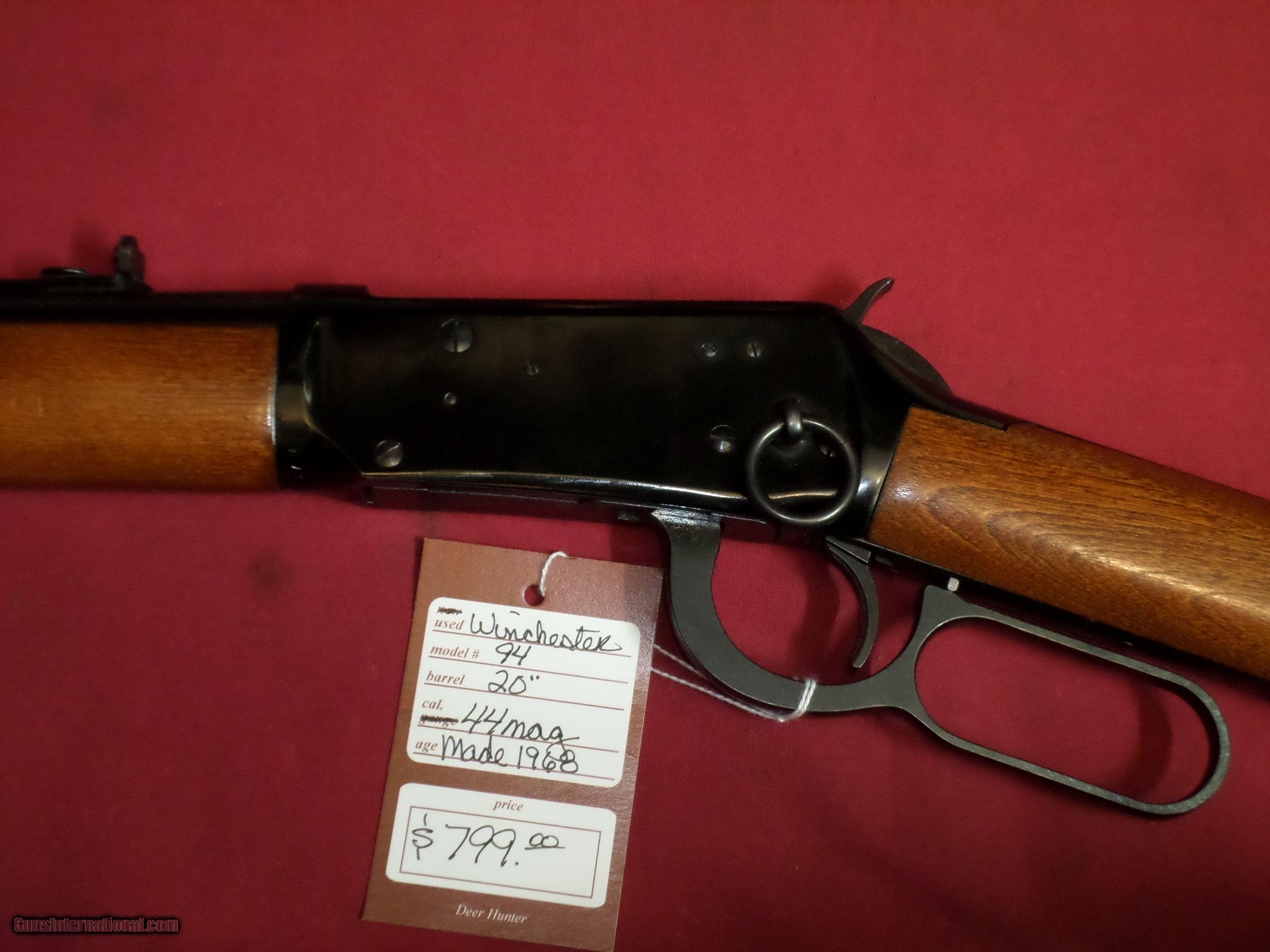 Description: SOLD For sale, Winchester 94, 20" bbl, .44 Mag. Excellent condition, no box. Circa 1968 To see more of our inventory, visit deerhunterguns,com We collect 7% sales tax for Florida sales. We accept MC, Visa and Discover, no AmEx. No Sales to California. Like us on Facebook: Deer Hunter Guns SOLD |