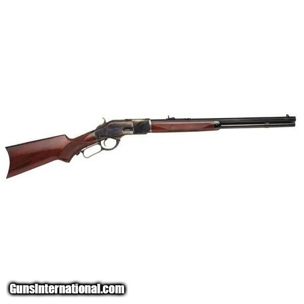 Description: Manufacturer: Taylor's & Co. Model: 1873 Pistol Grip Lever Action Rifle SKU: RIF/205 Caliber: .44-40 Win Capacity: 10 Rounds Barrel Length: 20" Octagon Finish: Blued Finish with Case Hardened Frame Stock: Walnut Checkered Pistol Grip Stock Sights: Blade Front, Buckhorn Rear Overall Length: 39" Weight: 7.9 lbs The 1866 was already quite popular when the smaller, yet quite similar 1873 model was released. It became an immediate favorite. The Winchester Repeating Arms Company may have thought that domestic military sales would make up most of the orders for the firearm, but in fact, civilian sales and international military purchases were what brought in profit that year. In that day, the 1873 was the first lever action available with a broad variety of options. Today, an array of options is still offered in Taylor's 1873 line. The pistol grip model features a classic checkered pistol grip buttstock and checkered forend. SOLD |