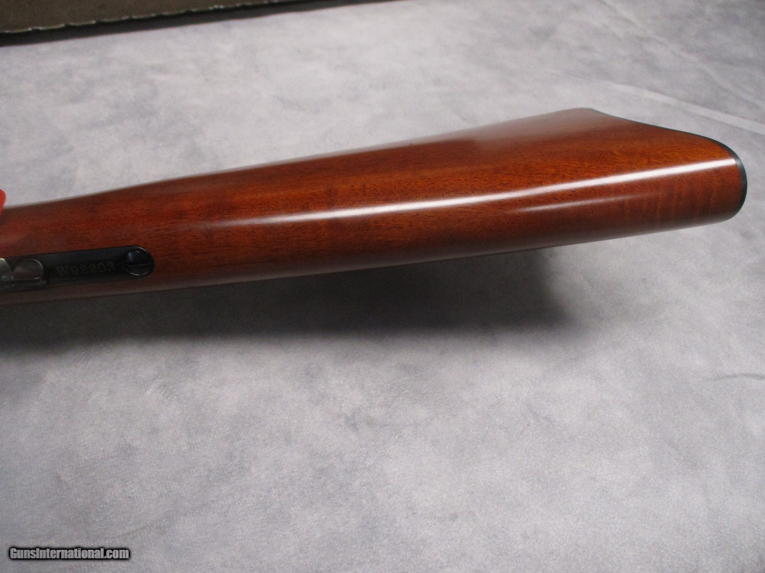 Description: Taylor’s & Co. is well-known for their reproductions of famous firearms from the Old West. The Winchester Model of 1873 is one of the most famous from that period in U.S. history. The 1873 was built around the concept of a rifle being chambered for the same ammunition as the owner’s pistol, usually the .44-40 Winchester cartridge. This feature had multiple advantages not least of which was the owner of the two guns having to carry only round. This also helped to reduce the overall weight of the ammunition carried as well as allowing the owner to carry more rounds, an important consideration when traveling between distant towns with little chance of finding a store to restock on ammo in between. In recent times, with the rise in popularity of Cowboy action shooting, new 1873 rifles are available in .44-40. The Model 1873 shown here is a new-in-the-box carbine model. It has a 19-inch round barrel, a magazine tube with 10-round capacity, standard elevator rear sight, wood forearm and buttstock, and a blued finish on the receiver. A common aftermarket modification for lever action rifles such as the 1873 is a folding peep rear sight. This setup increases the sight radius of the rifle and the type of sight aperture is more suitable for those with impaired eyesight. The 1873 is a fine rifle and the Taylor’s & Co. replicas are a good example of this. If you are a lever action fan do not pass up the opportunity to own one of these rifles. SOLD Rifle Caliber: .44-40 Winchester Manufacturer: Taylor's & Co. Model: 1873 Carbine Serial Number: W92203 Bore: Rifled Barrel Type: Round Action: Lever action Triggers: Single Stock: Walnut, straight grip Fore End: Walnut Butt Pad: Metal plate LOP: 13.4375 inches (341.3125 mm) Finish: Blued Weight: 7.48 lbs. Sights: Elevator rear, blade front sight, sight radius 16.25 inches (409.575 mm) Case: Taylor's box |