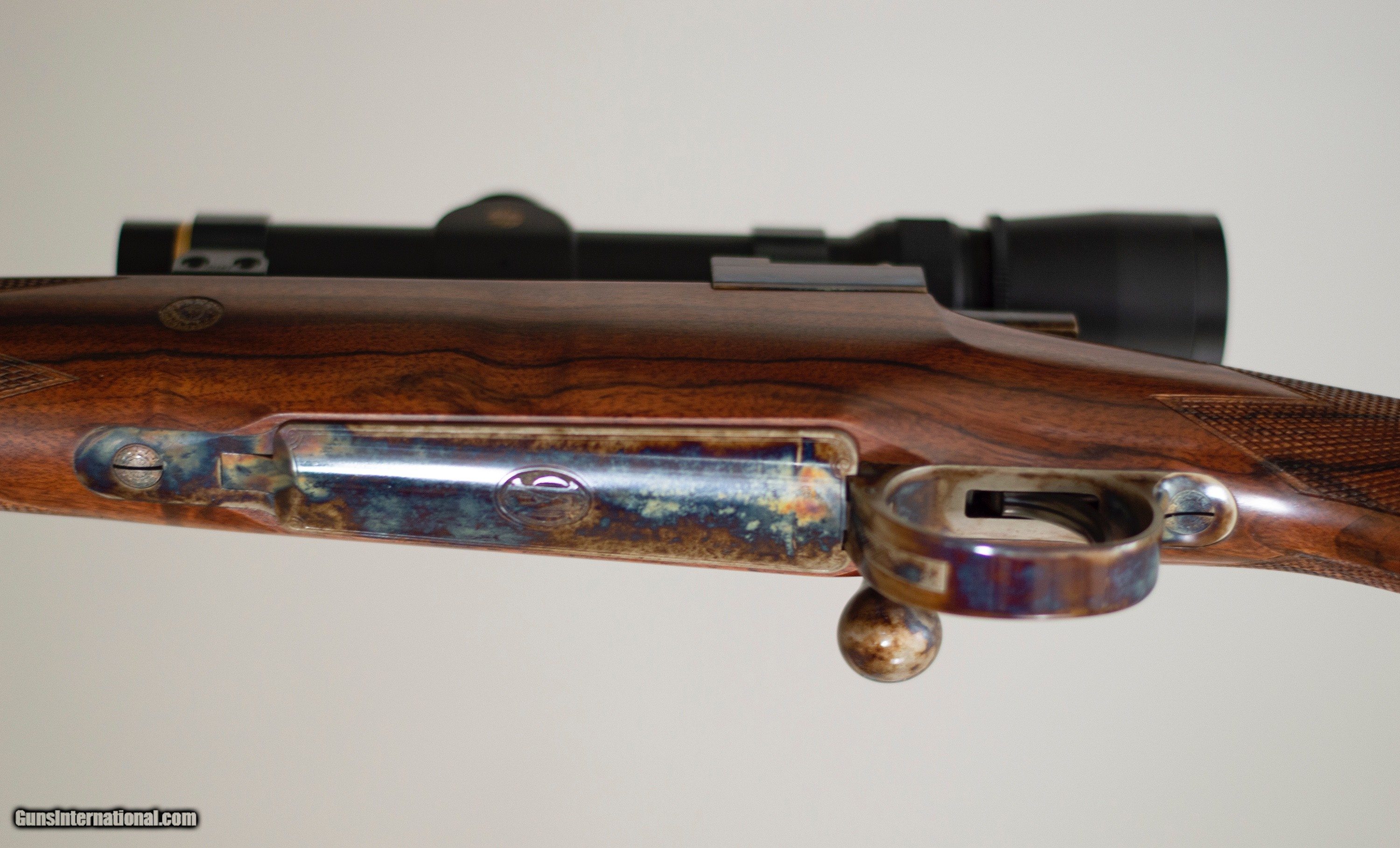 Description: Ralph Martini's rifles are exquisite, and this particular rifle looks as if it was just delivered from his bench. Built on a color case-hardened Granite Mountain Arms action, perfectly executed flat top checkering, and gold inlay througout. See photos for rifle specs. SOLD Rifle Caliber: .375 H&H Magnum |