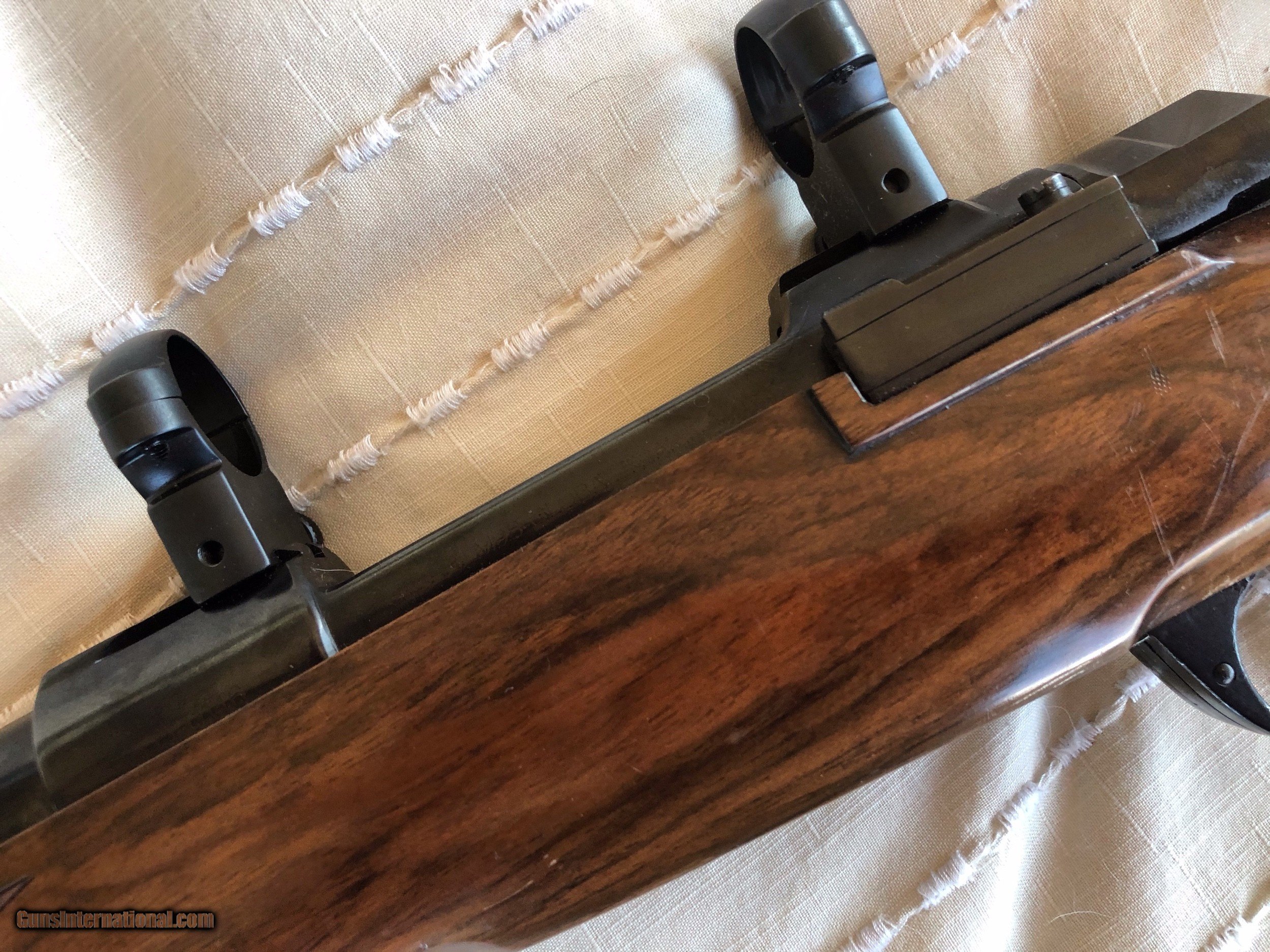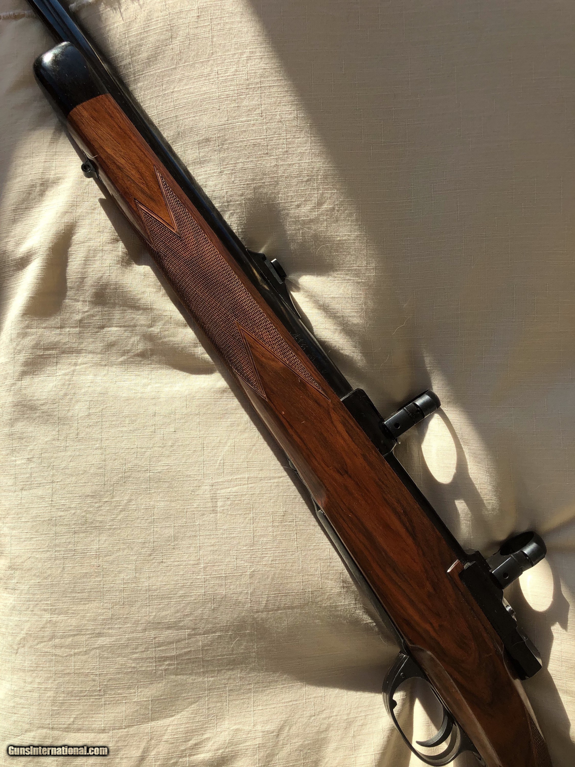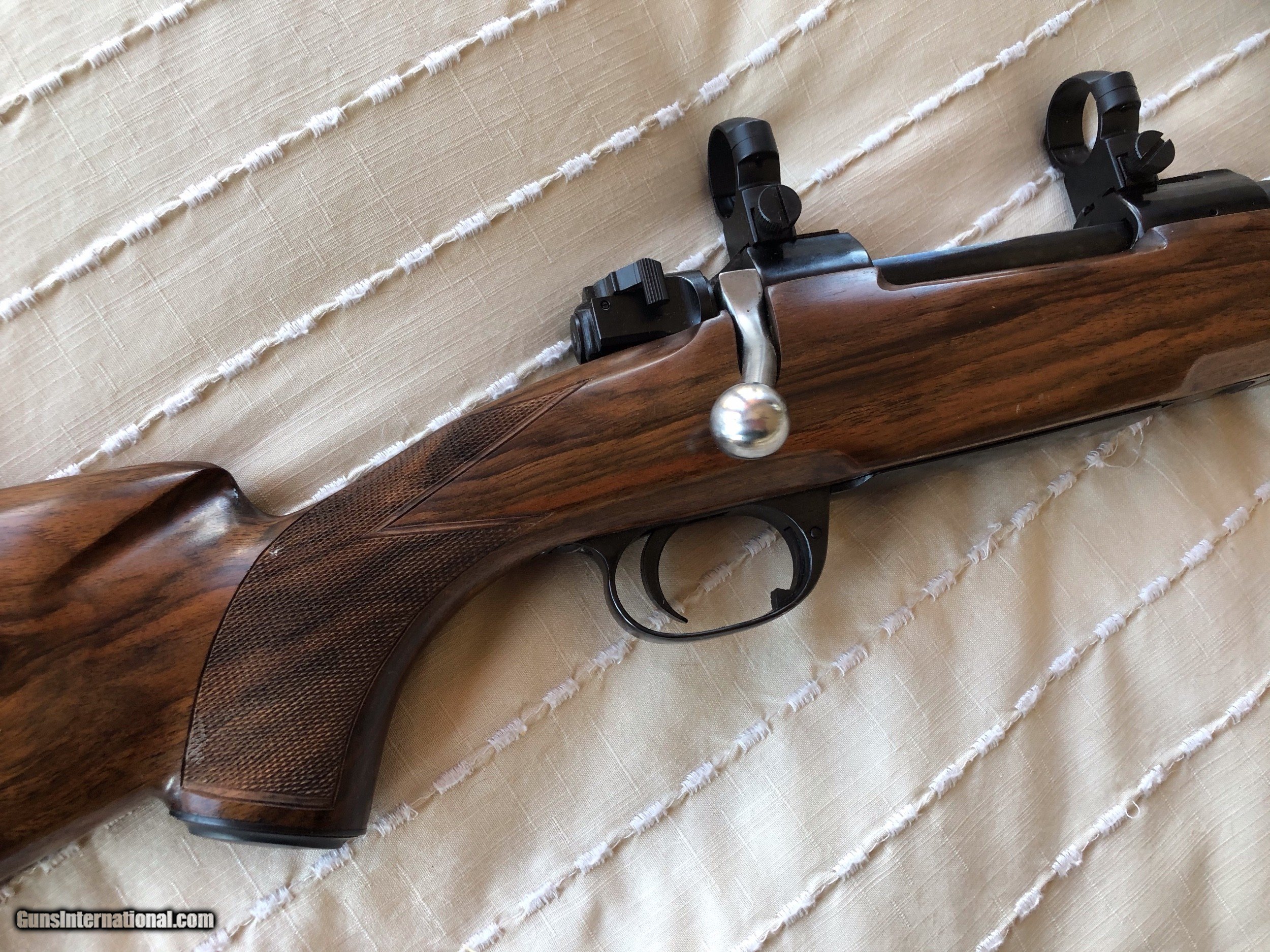 Description: Custom 416 Taylor The 416 Taylor is a wildcat, a 338 Win. Mag. opened up to .416 Or a .458 Win. necked down to .416. Nearly identical to the ballistics of the 416 Rigby or 416 Remington, but in a standard (30-06) length action. 2,350 feet per second with 400 gr. Bullet, 4858 ft lb energy This rifle was built to order in 2005 by members of the American Custom Gun-makers Guild. (AGCC ). The wood is beautiful Russian Circassian Walnut, cut in Russia in the 1940’s Purchased from a New York wood with original Russian markings in 1992 The wood was laid out and panagraphed by Jim Bisio, , Heritage-Walnut in Colorado Springs. This work was done on a Dakota panagraph. Jim is an inducted member of the American Custom Gunmakers Guild. The wood was fit , and finished with a hand rubbed oil finish, and point pattern checkered by Jeff Tapp, (Tapp Guns) of Austin Texas, Jeff is also an inducted member of the American Custom Gun-makers Guild, and a Board Member of thatanization. The metal work , barrel and action and blue, was done by the late Dr. Dennis Morgan, Denver, CO. Dennis was a dentist and well-known gunsmith in Denver A second recoil lug was welded to the bottom of the barrel, forward of the recoil lug on the action. The action and both lugs were glassed into the stock to strengthen overall stability and to in improve accuracy. The action fits very tightly into the stock. The action is a Safari M98 from Global Trading, purchased new in 2004, a Mauser design, S/N GLO-0146. The gun weighes 9 pounds without scope, barrel is 23 inches in length and has a single flip up leaf with hooded front sight, and installed rings and base. Accuracy is near 1 minute with 300 gr. Barnes triple shock. The rifle was made for an African Safari, but did not make that trip, and was eventually used on two Colorado Elk hunts. Some light field scratches exist on the stock from those two trips. Blue is 99%, stock is 95%. The rifle has remained in our family since it was made and has been stored in a safe and not been fired for 10-11 years. SOLD Manufacturer: Custom on Global Trading action Serial Number: GLO-0146 Caliber Info: .416 Taylor Condition: very very good Metal Condition: 98% Wood Condition: 98% Barrel Type: Heavy Action: Bolt Stock: Circassian Walnut Butt Pad: rubber Finish: Oil Weight: 9 Pounds Sights: Open, with scope rings Manufacture Date: 2005 Item Location: Salida, Colorado |