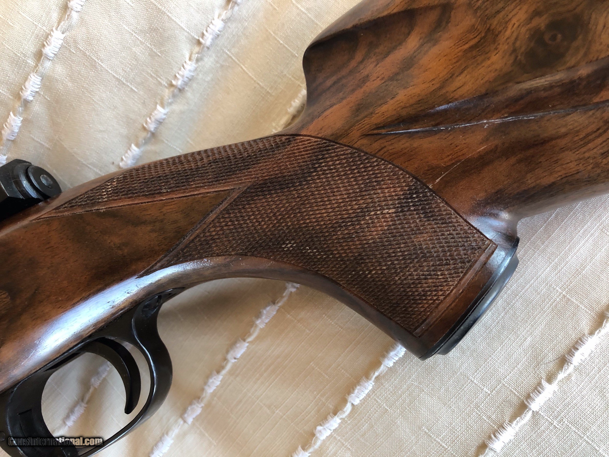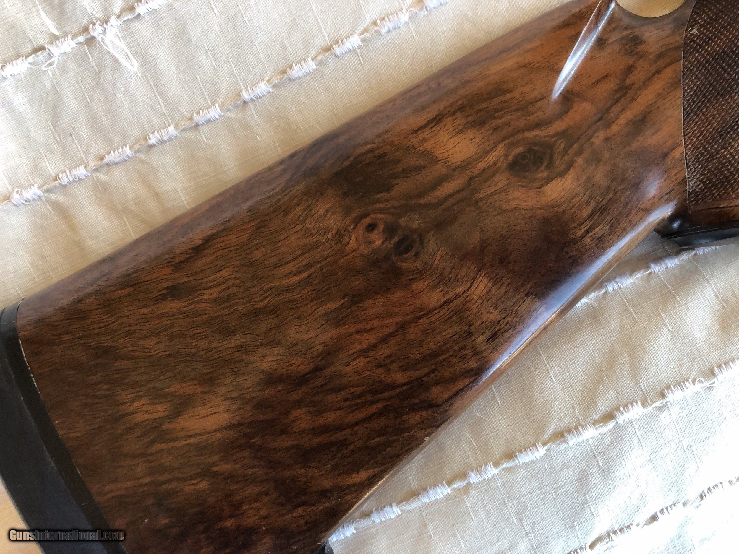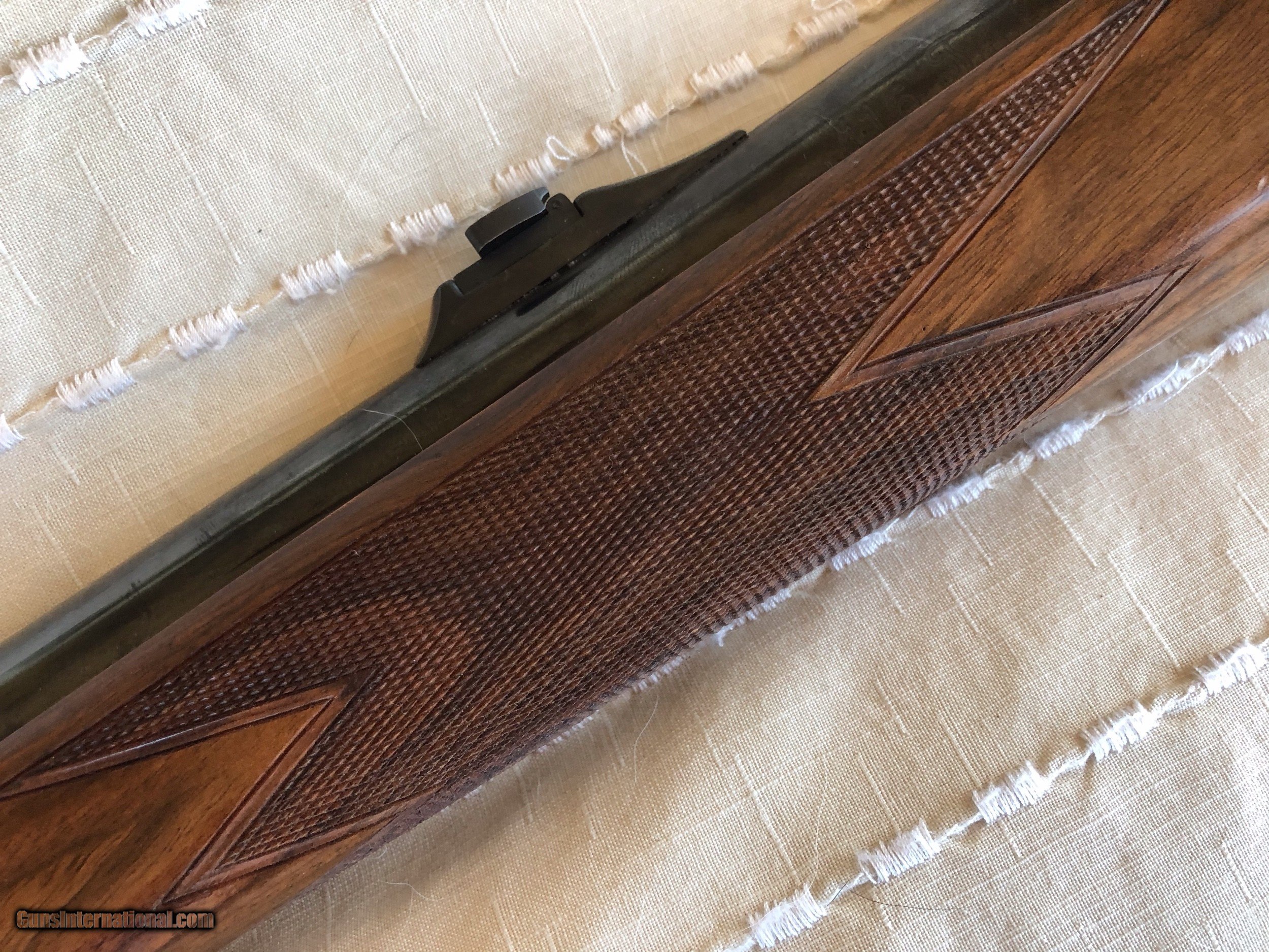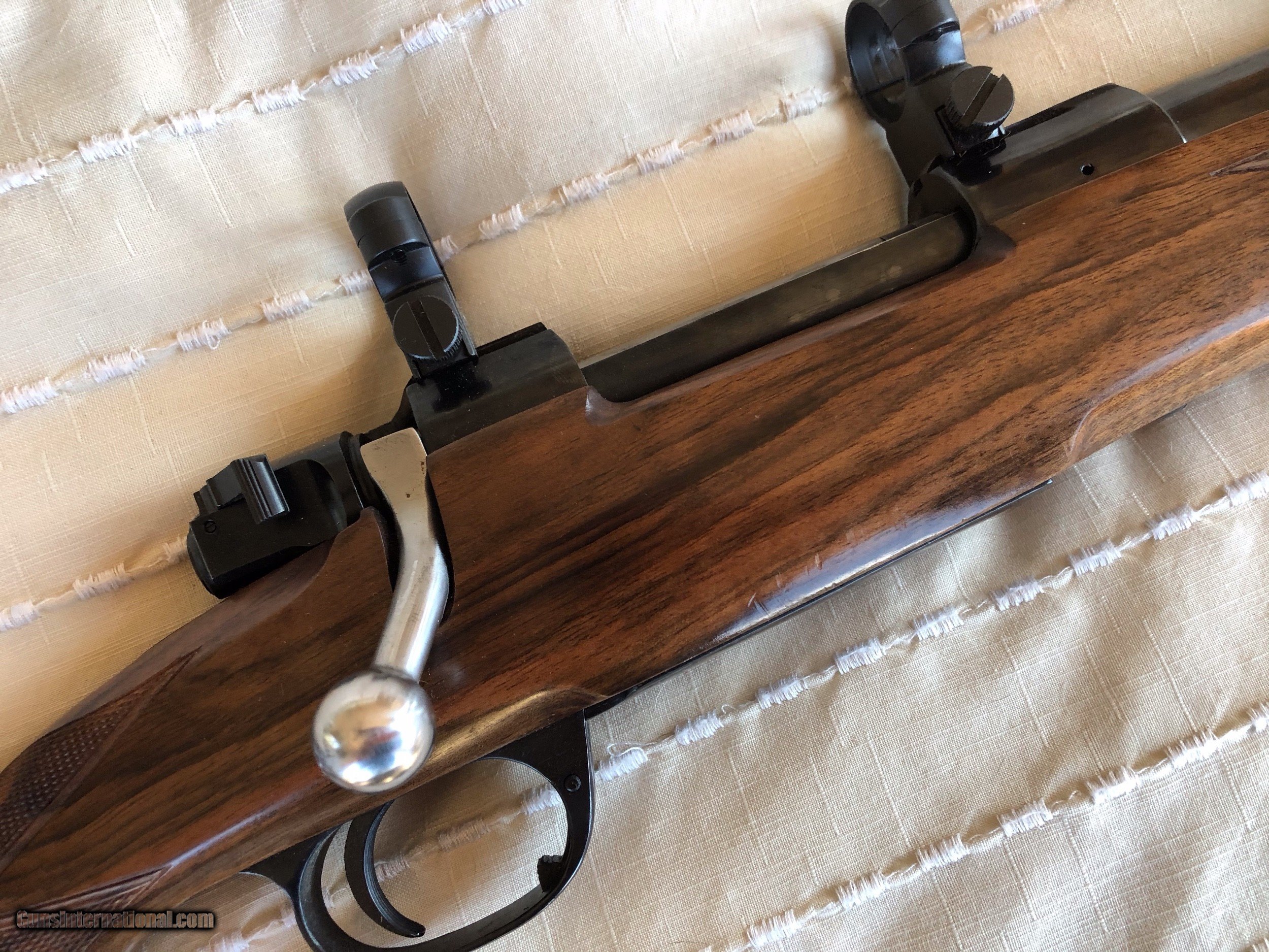 Description: Custom 416 Taylor The 416 Taylor is a wildcat, a 338 Win. Mag. opened up to .416 Or a .458 Win. necked down to .416. Nearly identical to the ballistics of the 416 Rigby or 416 Remington, but in a standard (30-06) length action. 2,350 feet per second with 400 gr. Bullet, 4858 ft lb energy This rifle was built to order in 2005 by members of the American Custom Gun-makers Guild. (AGCC ). The wood is beautiful Russian Circassian Walnut, cut in Russia in the 1940’s Purchased from a New York wood with original Russian markings in 1992 The wood was laid out and panagraphed by Jim Bisio, , Heritage-Walnut in Colorado Springs. This work was done on a Dakota panagraph. Jim is an inducted member of the American Custom Gunmakers Guild. The wood was fit , and finished with a hand rubbed oil finish, and point pattern checkered by Jeff Tapp, (Tapp Guns) of Austin Texas, Jeff is also an inducted member of the American Custom Gun-makers Guild, and a Board Member of thatanization. The metal work , barrel and action and blue, was done by the late Dr. Dennis Morgan, Denver, CO. Dennis was a dentist and well-known gunsmith in Denver A second recoil lug was welded to the bottom of the barrel, forward of the recoil lug on the action. The action and both lugs were glassed into the stock to strengthen overall stability and to in improve accuracy. The action fits very tightly into the stock. The action is a Safari M98 from Global Trading, purchased new in 2004, a Mauser design, S/N GLO-0146. The gun weighes 9 pounds without scope, barrel is 23 inches in length and has a single flip up leaf with hooded front sight, and installed rings and base. Accuracy is near 1 minute with 300 gr. Barnes triple shock. The rifle was made for an African Safari, but did not make that trip, and was eventually used on two Colorado Elk hunts. Some light field scratches exist on the stock from those two trips. Blue is 99%, stock is 95%. The rifle has remained in our family since it was made and has been stored in a safe and not been fired for 10-11 years. SOLD Manufacturer: Custom on Global Trading action Serial Number: GLO-0146 Caliber Info: .416 Taylor Condition: very very good Metal Condition: 98% Wood Condition: 98% Barrel Type: Heavy Action: Bolt Stock: Circassian Walnut Butt Pad: rubber Finish: Oil Weight: 9 Pounds Sights: Open, with scope rings Manufacture Date: 2005 Item Location: Salida, Colorado |