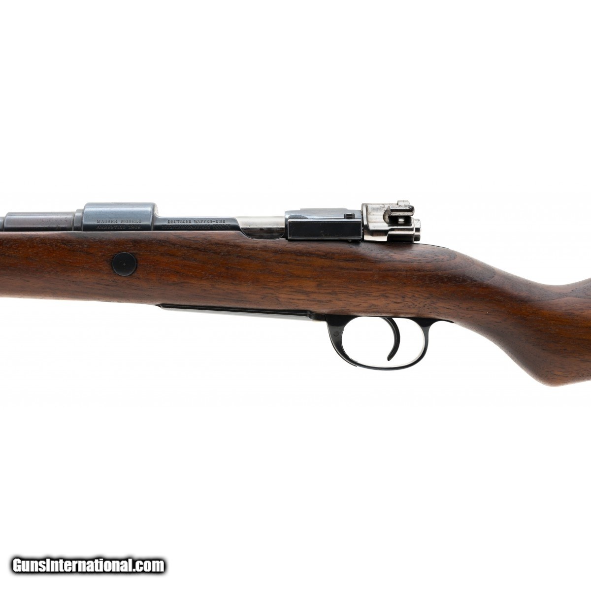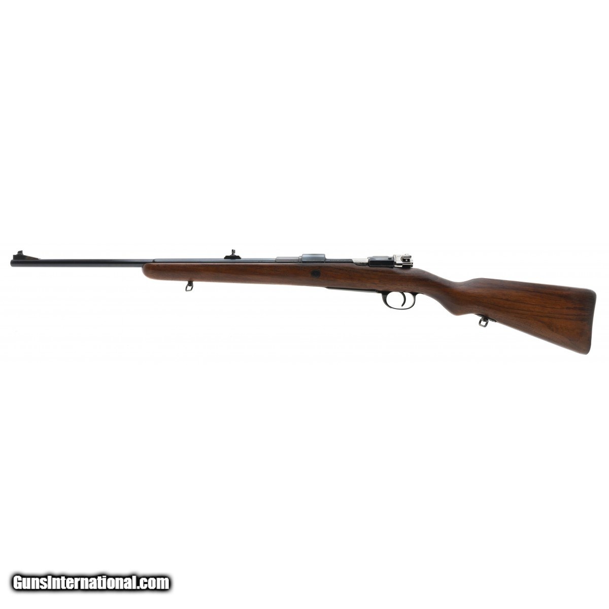 Description: " Custom sporting rifle built on a Argentine Mauser action. Barrel has been rechambered for 30-06. Bore is excellent. Bolt has been turned down, and is very well done. Flip up rear sight. Very good overall condition. SOLD |