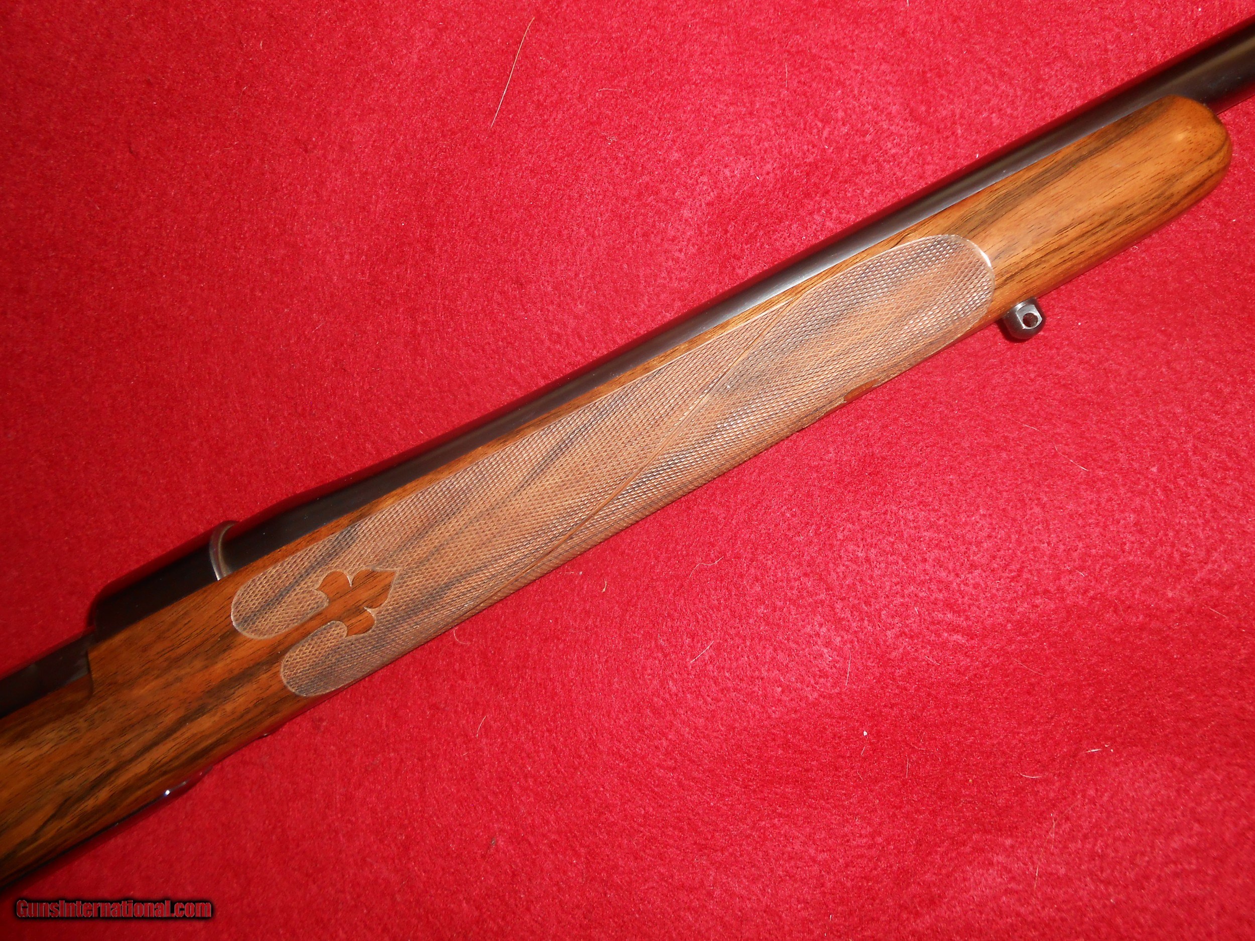 Description: From my personal collection, I am offering a very high quality, custom 1909 Mauser in .caliber .270 Winchester. All work is of the highest quality. The rifle was stocked by Phil Fischer in very nicely figured European walnut. Inletting is as good as it gets as is the wrap around fluer de lis checkering with fine ribbons. Butt pad is Pachmayer, solid black rubber, with basketweave pattern. Floorplate is Blackburn style straddle type. Trigger is custom. Grip cap is 1 screw steel. safety is model 70 style mounted on the bolt shroud. The upgraded bolt knob is checkered 2 panel. Bolt release has been checkered on the front face. Serial number, model number, and caliber are professionally engraved by hand. Bolt body is polished and engine turned. This custom rifle is as good as they get at the price point of a factory rifle that cannot measure up to the quality of this rifle. There are 2 hairline marks on the receiver rings that were made by scope bases that were mounted by a previous owner. Do not miss this opportunity to own a best quality custom rifle at a fraction of the replacment cost. Remember: Life is too short to hunt with an ugly gun. SOLD Curio/Relic: Yes Rifle Caliber: .270 Winchester Manufacturer: DWM Model: Custom 1909 Serial Number: E80XX Condition: 99.9 Metal Condition: 99.9 Wood Condition: 99.9 Bore Condition: Excellent, bright & sharp Barrel Type: rifled Action: bole action rrepeater Triggers: custom Stock: european walnut custom Butt Pad: Pachmayer LOP: 13 3/4 Finish: blued Sights: none Engraving: S/N, Caliber, Model number Item Location: OR |