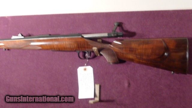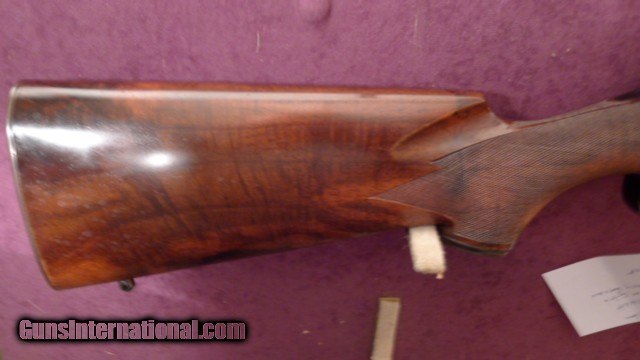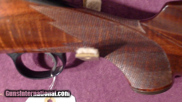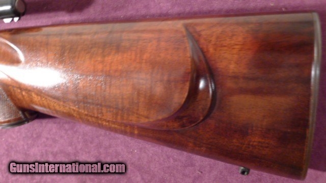 Description: this custom rifle started out as a Remington 700 BDL barrelled action serial # B6816903 in caliber 270 Winchester with a detachable magazine stocked in beautiful claro walnut in the classic style, with a checkered skeleton grip cap and butt plate all at 24 LPI the stock is checkered at 24 LPI with ribbons. also with ebony forend tip the barrel length is 22" and length of pull is 13 5/8". This rifle is unfired. Just checked the weight on my postal scales it is a light 7.12 punds as is with no scope , just the factory iron sightsPlease note this rifle will be shipped in a specially made wooden crate to protect it during transit. Any deviation from this has to be in writing and any damage becomes the buyers expense shipping including case and insurance is $95.00 will entertain reasonable offers. layaway considered PLEASE NOTE, I AM NOW SET UP TO SHIP UPS DIRECTLY FROM MY SHOP. NO LONGER HAVE TO WAIT TO TRAVEL 250 MILES TO DISTRIBUTION SERVICE CENTER . SOLD |