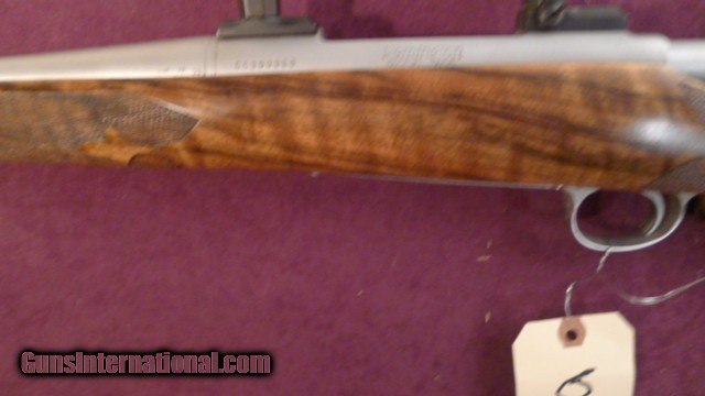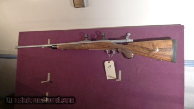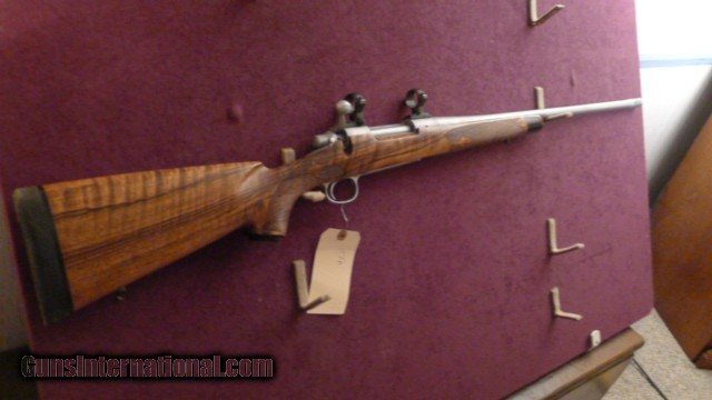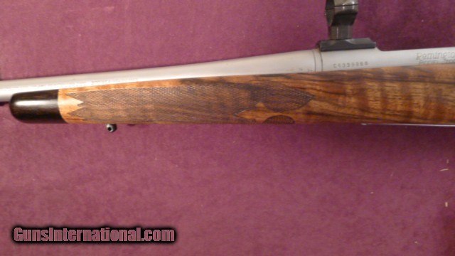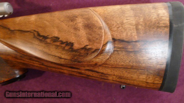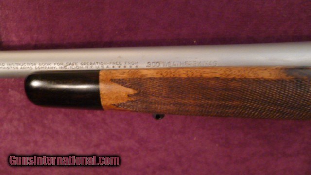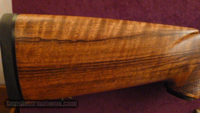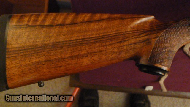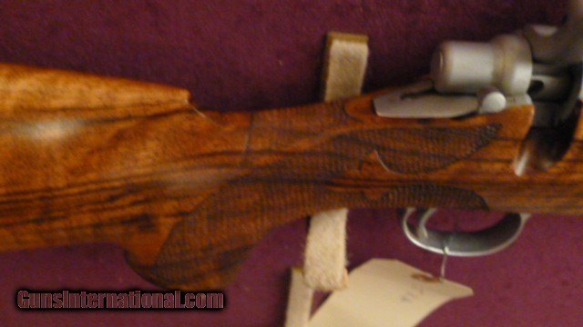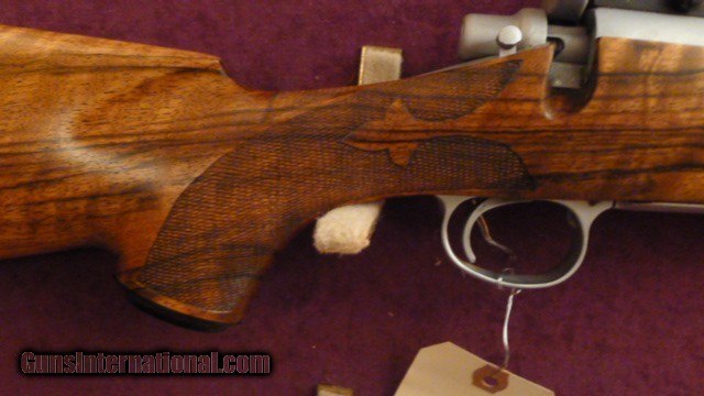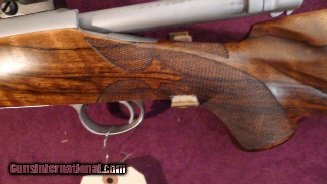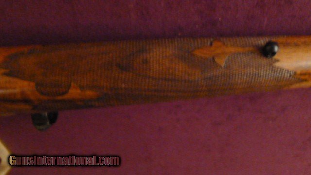 Description: a Remington 700 Factory BDL in caliber 300 Weatherby magnum serial # C6399968 restocked by local stockmaker Ira Lauer of Dover, Pa. this is the Remington Stainless steel version with a 26" barrel including factory muzzle break, stocked in beautiful exhibition grade English walnut checkered in a Fluer- D - Lieu pattern at 22 line per inch length of pull is 14 inch to center of a 1" solid rifle pad. it has an ebony fore end tip and steel grip cap. Buyer pays shipping $85.00. I. Questions use email only. Lay away possible SOLD |