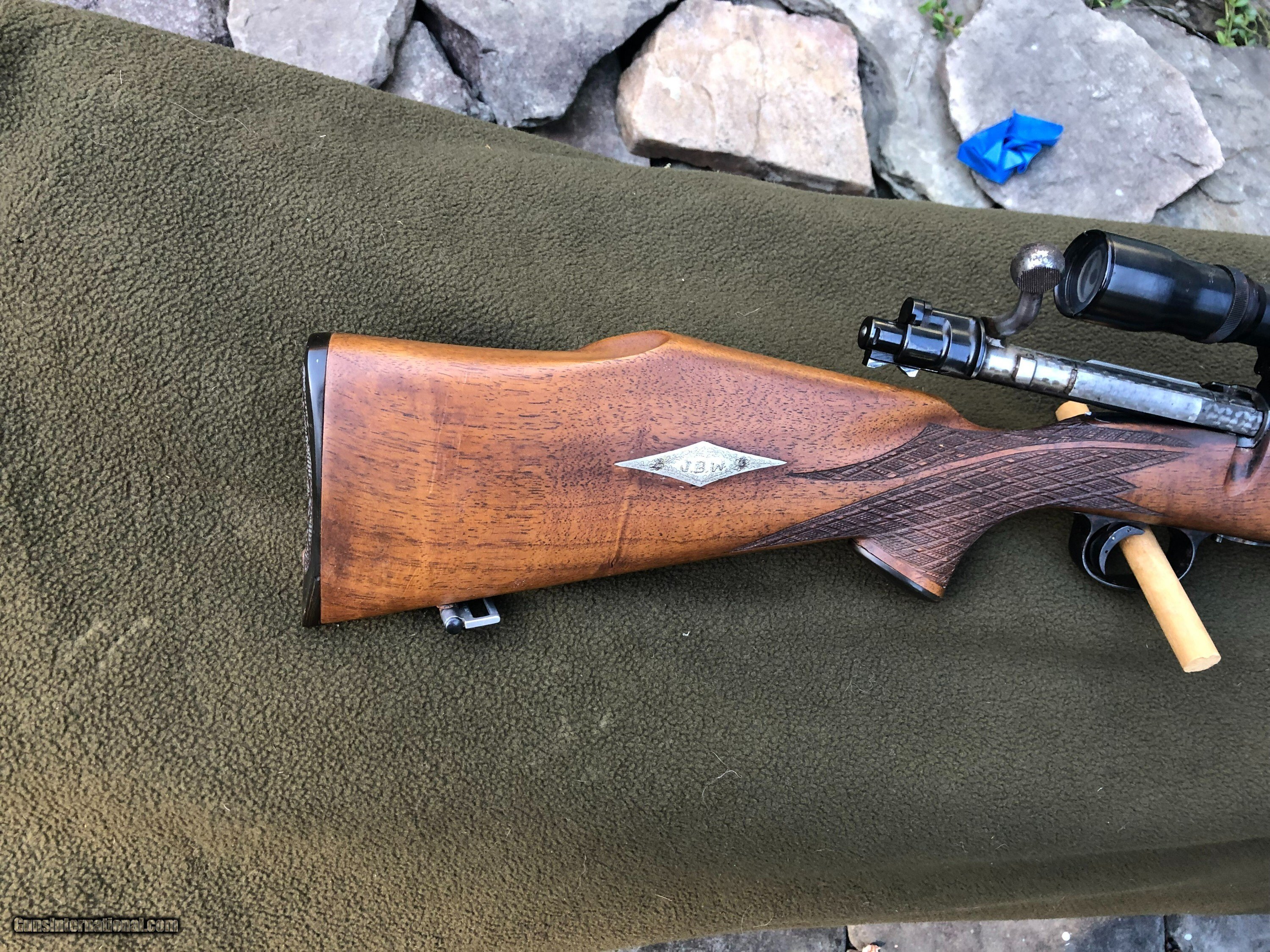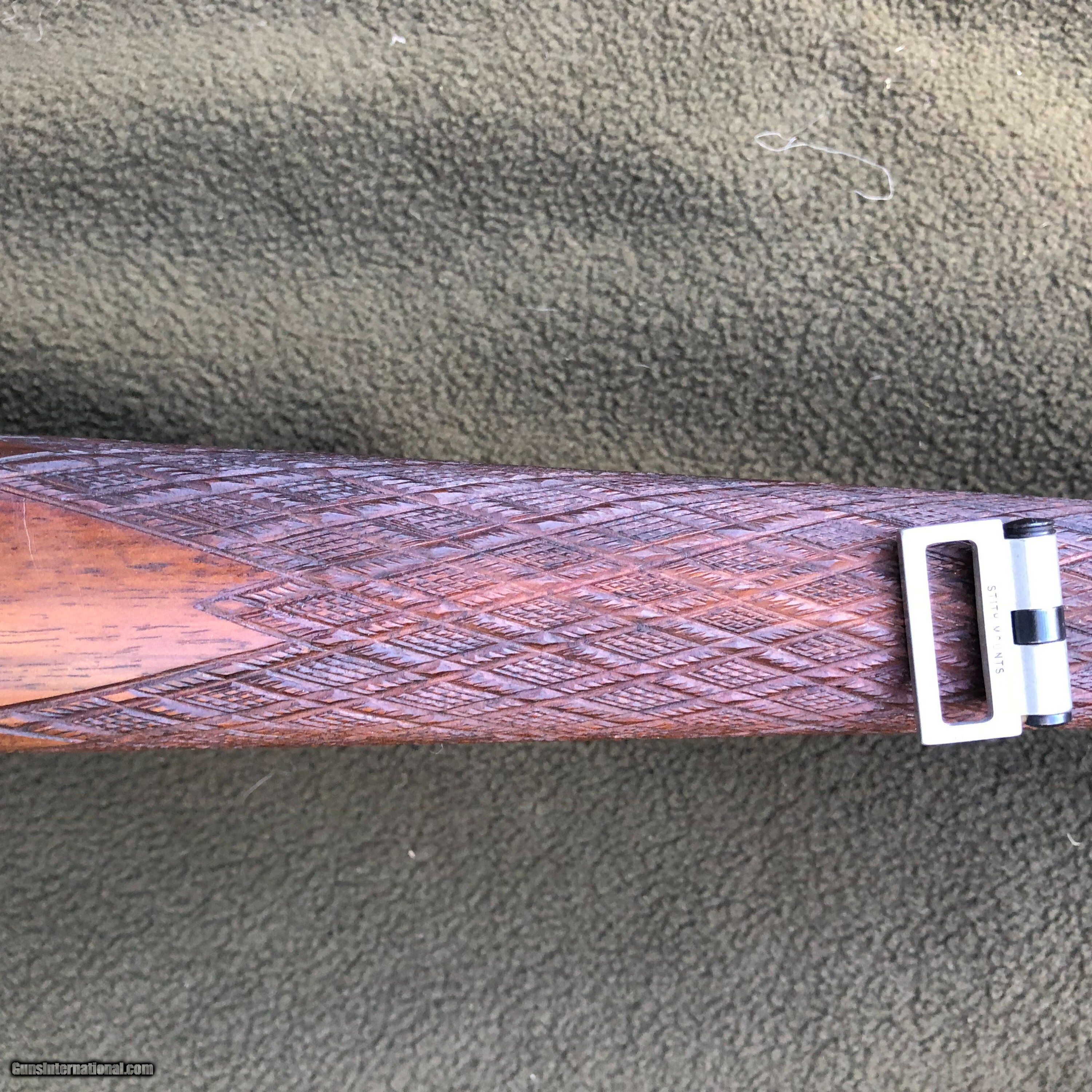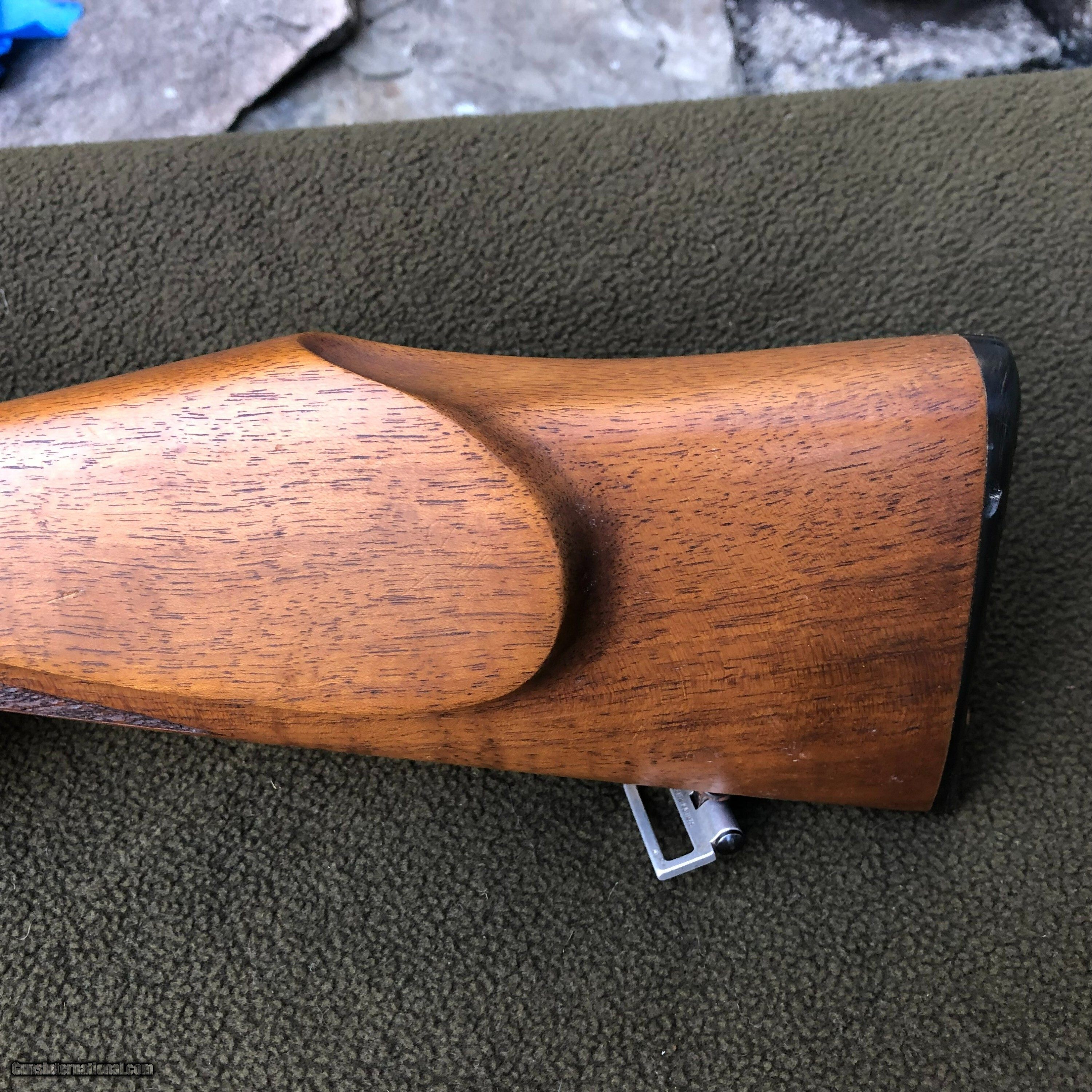 Description: .VINTAGE AHLMAN RIFLE MARKED .243 WIN IN VERY GOOD CONDITION .HAS A FULL MANNLICHER WALNUT STOCK WITH GREAT CHECKERING, MAUSER ACTION ,ADJUSTABLE TRIGGER NEEDS ADJUSTMENT,STITH MARKED SLING MOUNTS,ADJUSTABLE BARREL BAND . OPTICS ARE GOOD ON THE WEAVER SCOPE EL PASO MARKED V8 WITH THE 3 LINE SIGHTING BOX.WEAVER MOUNTS .MEASURES 38 INCHES OVERALL 18 INCH BARREL.BORE IS STRONG AND BRIGHT.ORIGINAL OWNERS INITALS SHOWN ON THE STOCK.I CALLED AHLMAN CO. RIFLE DATED TO THE 1960'S AND TO REMOVE THE BUTT PLATE TO SHOW THE BUILDERS SIGNATURE. SERIAL 2914 WOOD IS SOLID WITH VERY MINOR USE WEAR .MINOR USE WEAR TO THE METAL A RARE ONE OF A KIND CUSTOM RIFLE NICE ADDITION TO ANY COLLECTION Curio/Relic: Yes Rifle Caliber: .243 Winchester Price: $1,495.00 Buy Now Contact Seller |