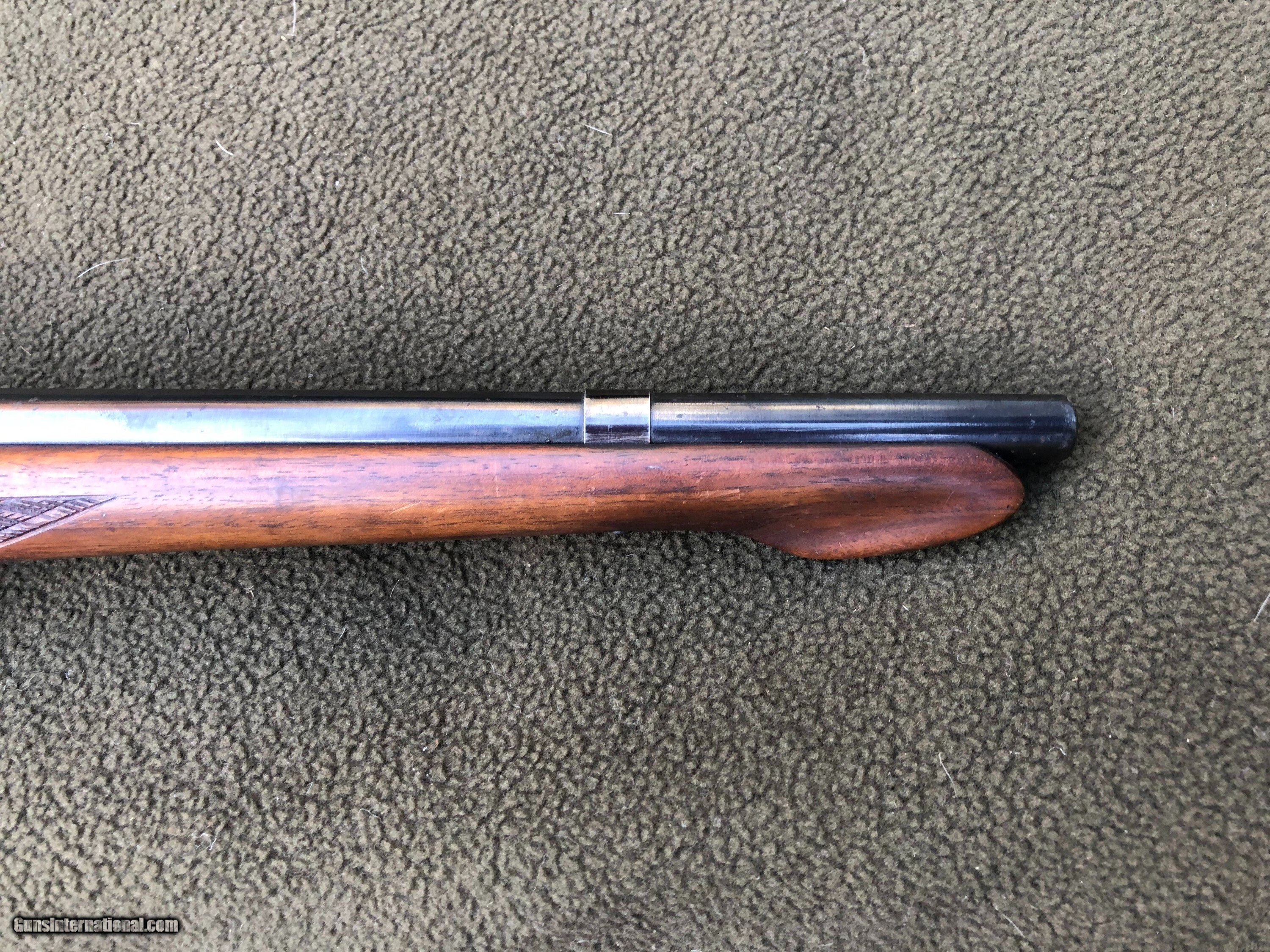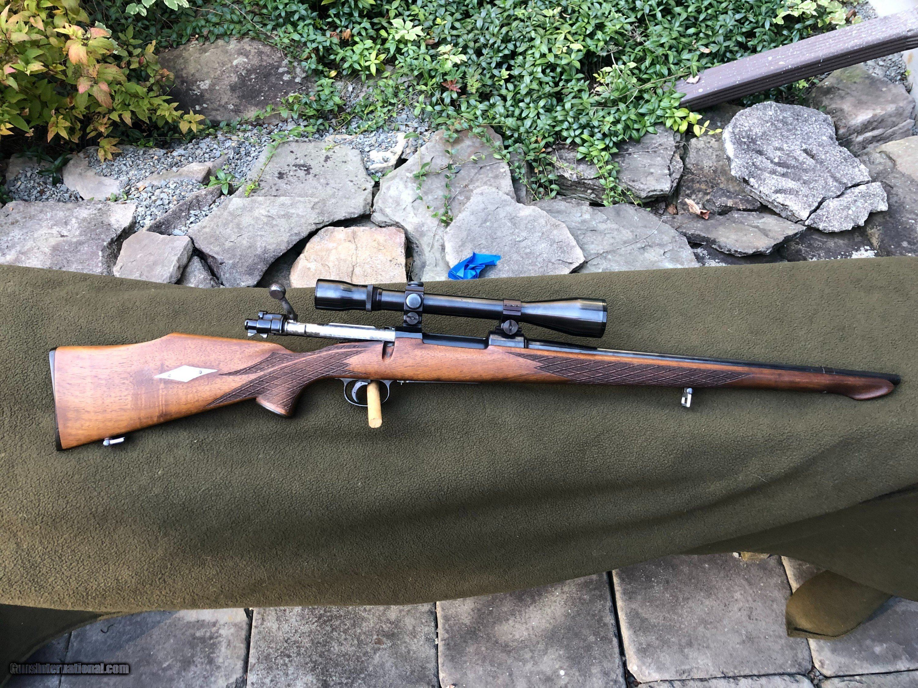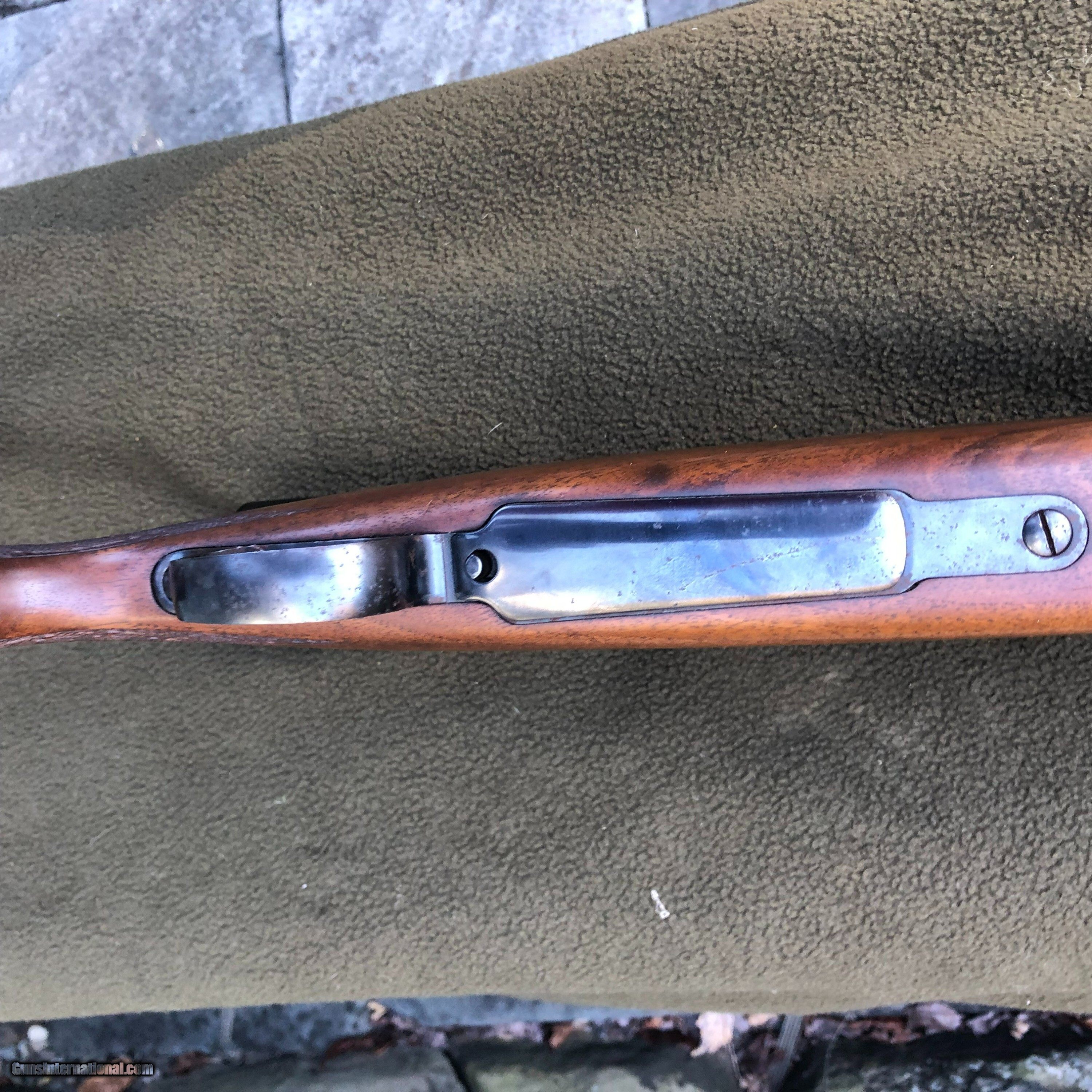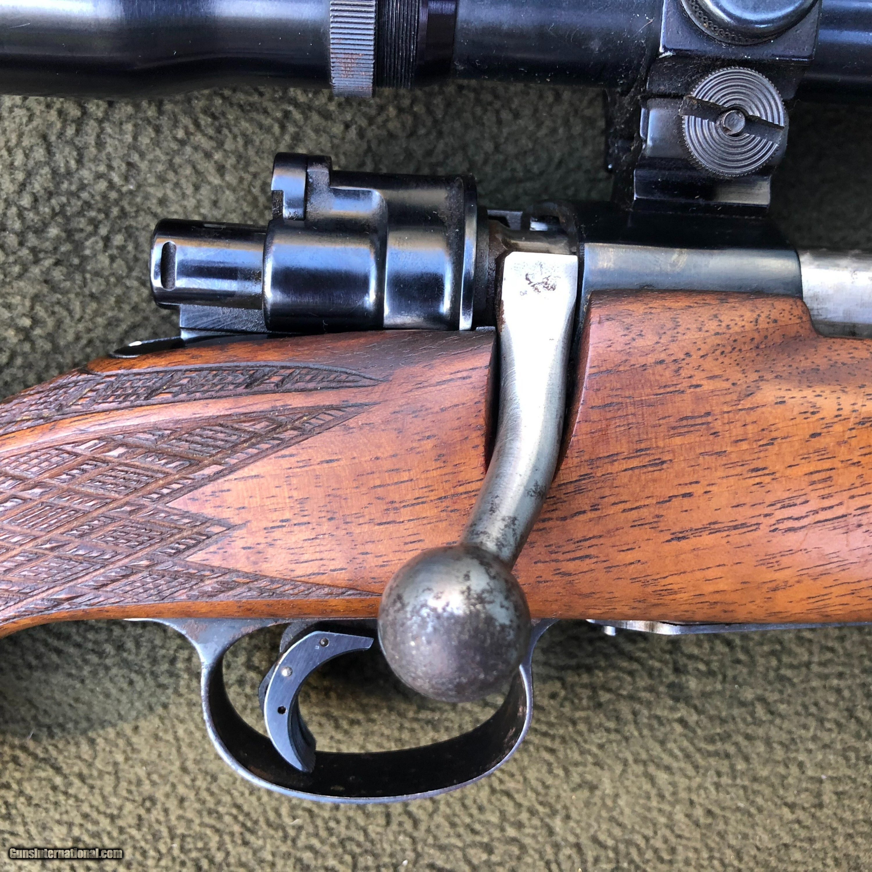 Description: .VINTAGE AHLMAN RIFLE MARKED .243 WIN IN VERY GOOD CONDITION .HAS A FULL MANNLICHER WALNUT STOCK WITH GREAT CHECKERING, MAUSER ACTION ,ADJUSTABLE TRIGGER NEEDS ADJUSTMENT,STITH MARKED SLING MOUNTS,ADJUSTABLE BARREL BAND . OPTICS ARE GOOD ON THE WEAVER SCOPE EL PASO MARKED V8 WITH THE 3 LINE SIGHTING BOX.WEAVER MOUNTS .MEASURES 38 INCHES OVERALL 18 INCH BARREL.BORE IS STRONG AND BRIGHT.ORIGINAL OWNERS INITALS SHOWN ON THE STOCK.I CALLED AHLMAN CO. RIFLE DATED TO THE 1960'S AND TO REMOVE THE BUTT PLATE TO SHOW THE BUILDERS SIGNATURE. SERIAL 2914 WOOD IS SOLID WITH VERY MINOR USE WEAR .MINOR USE WEAR TO THE METAL A RARE ONE OF A KIND CUSTOM RIFLE NICE ADDITION TO ANY COLLECTION Curio/Relic: Yes Rifle Caliber: .243 Winchester Price: $1,495.00 Buy Now Contact Seller |