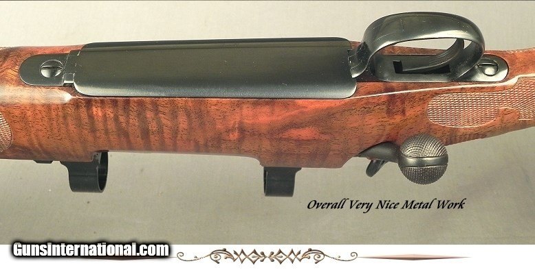 Description: #17435, Al & Roger Biesen Gunmaker Spokane, Wn.: A Total Custom by Al & Roger Biesen in 270 Winchester on a Winchester Pre-War Model 70 Action, The action was made in 1938, 24" barrel (It Appears to be a Douglass Premium barrel), No open sights, Very nice profiled 2 piece scope bases set up to take the detachable Talley 1" rings, Straddle hinged floorplate with a center bow release, A 3-position Model 70 wing safety, Two panel teardrop bolt knob checkering, Model 70 trigger, Action rails inside and out are polished, Built-up & checkered bolt stop release, Jeweled bolt and follower, Profiled rear receiver tang as it is a pre-war Model 70, A classic Al & Roger Biesen Custom Classic style stock, Biesen classic full wrap around Fleur-De-Lis checkering with a fairly deep recess, Very slight monte carlo comb, Shadowline cheekpiece, Ebony forend tip, Sling eyes on the stock, Biesen 2 screw checkered steel grip cap, 13 11/16" LOP over a 1" pad, 8 lbs. 3 oz., An excellent piece of Claro Walnut with a lot of fiddleback and feather with nice contrast, The original Biesen blue remains at 99%, The original stock finish at 98%, The checkering is at 100%, The bore is brand new. It has a nickel silver escutcheon on the bottom of the forend with the initials "GEK". This piece is totally like the day it left the Biesen shop. We came up with another classic Al & Roger Biesen with their signature Fleur-De-Lis checkering. Mr. Al Biesen is the Norman Rockwell of custom bolt rifles in America and his merits are covered extensively in the pages of Jack O'Connor, plus it is a 270 Win., and the Gun Digest. Mr. Al Biesen was born in La Crosse, Wisconsin in 1918 and 30 years later moved to Spokane, Washington and set up shop in his basement on Sinto Street. He built a lot of rifles for Jack O'Connor and several rifles for Prince Abdorezza Pahlavi of Iran. Roger Biesen joined on with his Dad and continued the tradition of workmanship and the Biesen style with their noted Fleur-De-Lis checkering style. Al taught his son Roger the art of gun building, and his granddaughter Paula worked in the shop as well becoming an engraver. Biesen preferred the pre-64 Model 70 action and the Mauser 98 action, he always worked with fine walnut. He never made a synthetic stocked rifle in his life. Al Biesen passed away in Spokane in 2016 and the age of 98. SOLD Rifle Caliber: .270 Winchester |