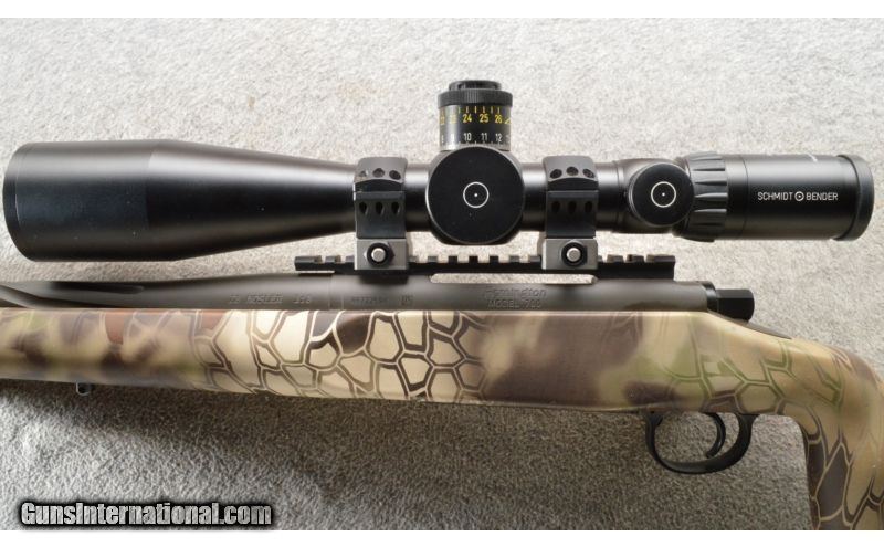 Description: This is a close to new Alamo Precision Rifle in .28 Nosler. The rifle is a custom rifle with a Grayboe Renegade stock with Kyrptec Highlander camo finish and duel front studs. The action is a Trued Remington 700 action with a Spiral fluted bolt and custom bolt handle. The action is smooth as glass. The barrel is a 29 inch (with break) medium contour with Ratchet barrel fluting and a Cerakote Graphite Black finish. The muzzle break looks to be an Area 419 Hellfire. The rifle is topped with a Schmidt & Bender PM II 5-25X56 AO with a lighted reticle with rings and bases. The rifle alone would cost around $3,000.00 and the scope another $3,500.00 This is a sweet deal. SOLD Manufacturer: Newer Caliber Info: .28 Nosler. Chambers: Bolt action repeater. Metal Condition: Excellent like new. Wood Condition: The stock has a few scuff in the camo finish but is like new otherwise. Bore Condition: Like new. Barrels: 29 inch (with break) medium contour with 1/8 twist Ratchet barrel fluting and a Cerakote Graphite Black finish and what looks to be an Area 419 Hellfire muzzle break. Triggers: Single with a crisp 2.5 Lb trigger pull. Stock: Grayboe Renegade stock with Kyrptec Highlander camo finish. Stock Dimensions: 13 7/8 inch LOP. Butt Pad: Black rubber butt pad. Weight: 13 Lbs. 2 Oz. Sights: Schmidt & Bender PM II 5-25X56 AO with a lighted reticle. Extras: Schmidt & Bender PM II 5-25X56 AO with a lighted reticle rifle scope with rings. Item Location: Owatonna, MN |