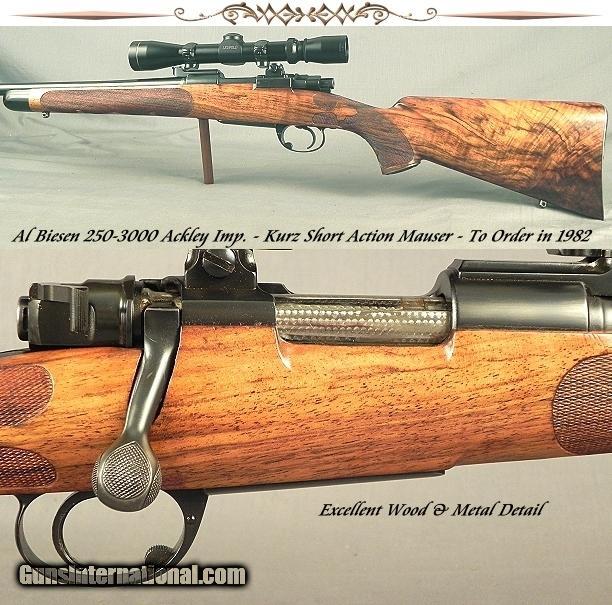 BIESEN 250-3000 ACKLEY IMP.- KURZ SHORT ACTION MAUSER- EXC. WOOD- MADE 1982- BIESEN WRAP AROUND FLEUR-DE-LIS CHECKERING- IDEAL for YOUTH or LADY