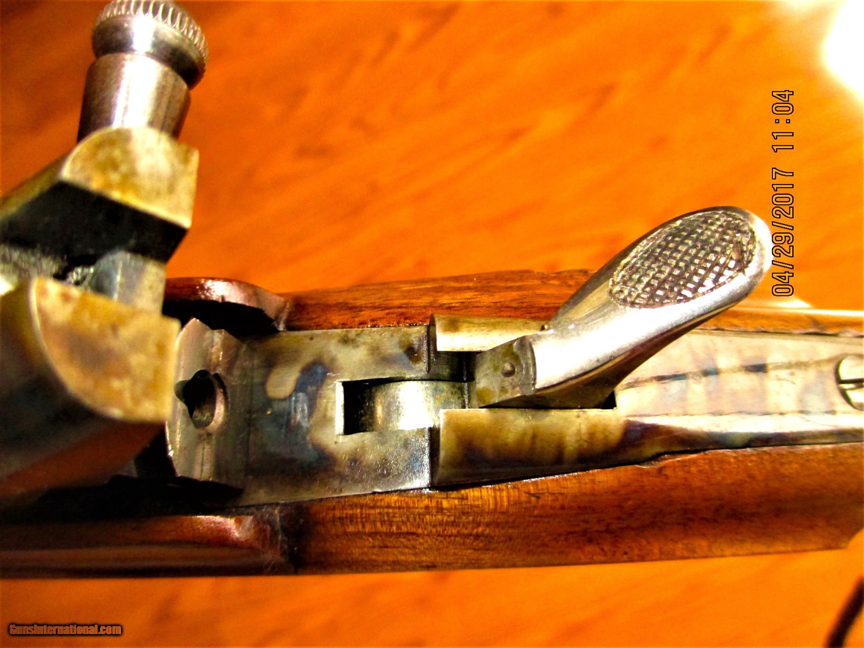 Description: German made 'Buchel'-meister Scheutzen Target Rifle ..... a very Rare specimen-displaying very little use. "Floberts extremely rare as a Scheutzen....thios IS "ONE" This is NOT a typical cumbersome stocked Scheutzen...this has a comfortable sloped cheekrest & adjustable double set triggers plus adjustable sights frt-rear. ! 100% bluing and sharp unblemmed rifling in 6mm(22cal. RF) -incl..Action is the "Improved Warnant" lift breech similar to the Civil War Springfield Trapdoor..Note: the carrying strap has a dual purpose...carrying....along w/using the strap-sling to hold the Arm-Wrist FIRM while upright shooting..OR Field use. This rifle has NEVER been refurbed in any fashion and is simply put...."in as new" condition. It sports a German Scheutzen Award contest pin...! This is likely the ONLY specimen IN THIS condition on this Planet.!..and this is NOT an exaggeration in ANY Form..!There is absolutely NO visible wear anywhere on this quite Rare Gem. This closely resembles the commonly referred to as a Louis Nicholas Auguste FLOBERT who designed the 1st Ball & cased cartridge & more... I wrote the 1st known book on m'Flobert(flo-bare) in USA. Possible Foreign Buyers simply MUST arrange all necessary Customs forms & Shipping fees from USA.to,& including the Nation of destination. Shipping will occur After clearing my Wells Fargo Bank in USA Dollars currency.//Any & All queries will be replied to via my email.-NOTE...my landline phone will NOT be answered-email Only//Thanks for viewing this offering. NOTE: this is NOT a Turnbull refurbished rifle nor anyone elses !...It is just what the description states.//Item WILL ship in a Hardcase enclosed in Corrugated Box w/ insurance determined by Buyer & address of FFL within Lower 48 USA-Minimum shipping w/o Ins.=$88.00+ Taxes to State of residence Extra.//Offers will be considered.///Usually, a Scheutzen parlor rifle sports a Steigles Mechanic for loading a 4mm cartridge at approx. 8inches from Muzzle whereas this sports a full 24in. 22cal.Octagon rifled Barrel..!