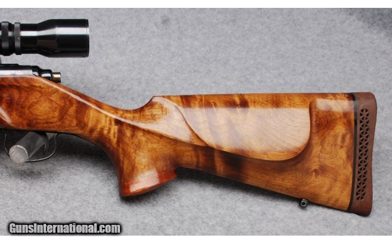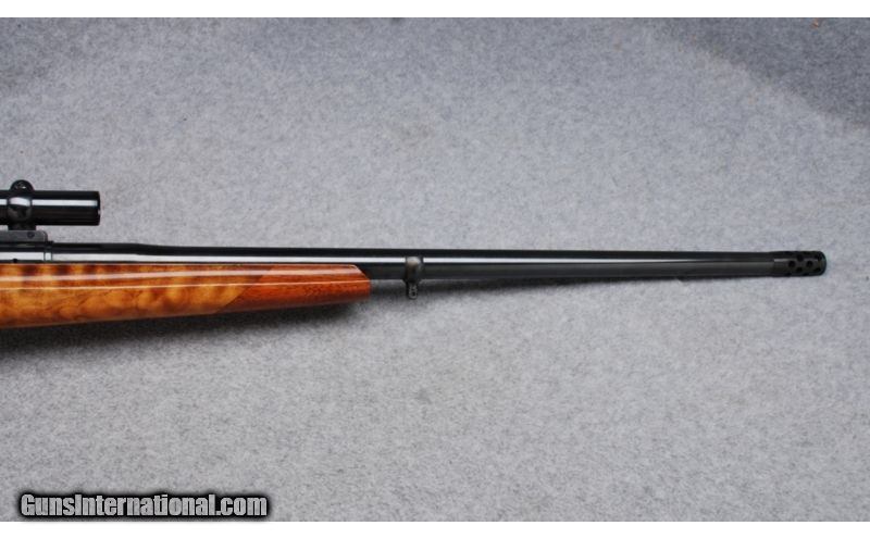 Description: This is a Custom rifle that was made by the Colton Gun Shop in Brooks, Oregon based on a Remington 721 action in .416 Colton. Condition of this rifle is Excellent overall. There is a 7 digit number etched into the left side of the action just behind the serial number. The 24 inch barrel has a 2 inch muzzle brake and a front sling swivel on a half barrel band. The bore is bright and shiny with strong rifling. The stock is High Grade walnut with contrasting pistol grip and fore end caps. The stock has a semi-beavertail fore end and a Kassnar ventilated ruber recoil pad. Reloading dies are included. This rifle comes equipped with a Weaver Micro Trac 1.5-4.5 scope in Buehler mounts that is included in the price. The scope and mounts will not be removed and the rifle repriced without them. SOLD Caliber Info: .416 Colton Metal Condition: Excellent Wood Condition: Excellent Bore Condition: Bright and Shiny Barrels: 24" with a 2" Muzzle Brake Triggers: Serrated Stock: High Grade Walnut with a Semi-Beavertail Fore End and Contrasting Pistol Grip and Fore End Caps Stock Dimensions: LOP 16 3/4 Fore End: Semi-Beavertail Butt Pad: Kassnar Ventilated Rubber Sights: Weaver Micro Trac 1.5-4.5 Scope in Buehler Mounts Extras: Comes with Reloading Dies Item Location: Reno, NV |