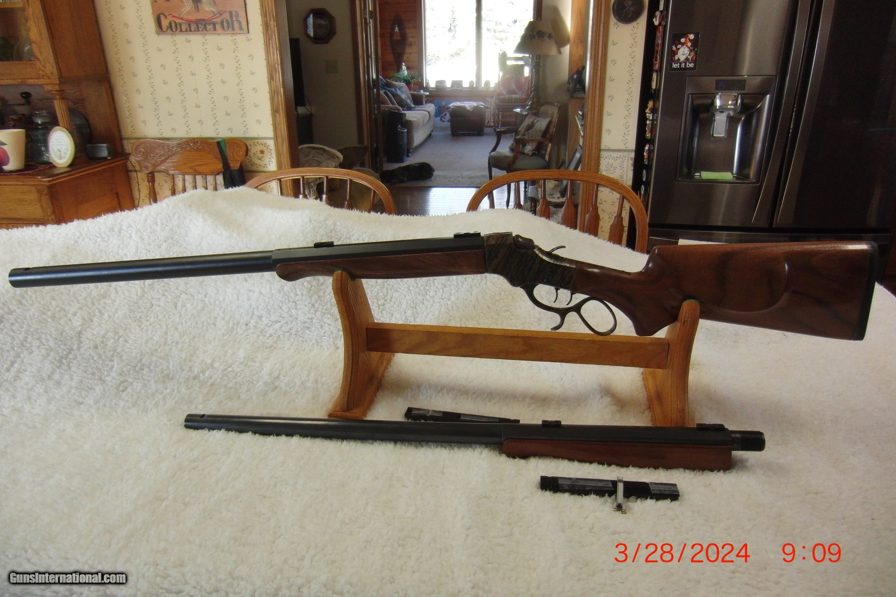 Description: C P A rifle, 2 barrel set. 28" 32 20 cpa cal. (1.092 at muzzle 1.130 at breach) 28" 38 55 cal. (.924 at muzzle 1.028 at breach) each bbl has unertl bases and allso drilled for weaver style bases allso included Webber style breach seater for each bbl. 228 32 20 cases 280+ bullets 50 38 55 cases + 300 bullets SOLD Rifle Caliber: .38-55 Winchester, .32 Manufacturer: CPA Model: 44 1/2 Serial Number: 1580 Barrel Length: 28 Bore: mint Chambers: mint Condition: near new Metal Condition: near new Wood Condition: bood Bore Condition: near new |