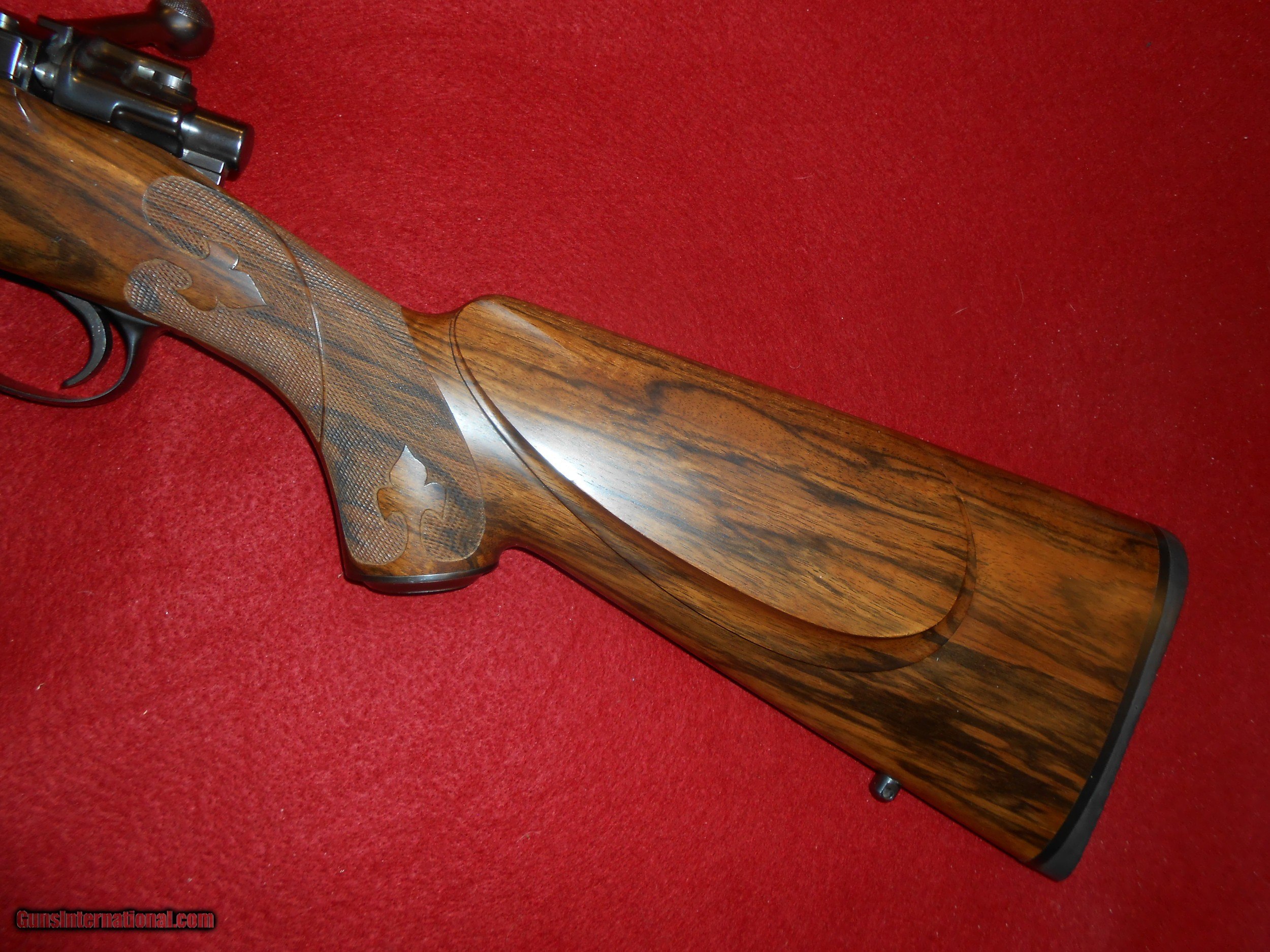 Description: Offered is an extremely high quality full custom .270 Winchester rifle by Phil Fisher. The rifle features a fully customized 1909 Mauser action. Additional features include: Blackburn style straddle floorplate, adjustable trigger, custom bolt release, custom classic bolt knob with 2 panel checkering and a model 70 type 2 position safety..Caliber, serial number, and model number are hand engraved on the action and 24 inch barrel. The metal finish is high quality matte blue. Action has been trued and polished inside and outside. The stock is fashioned from a spectacular piece of french walnut. It has black streaking throughout that runs from the black Pachmayr butt pad to the end of the forearm. The cfluer de lis checkering pattern, with ribbons, is well executed in 26 lpi. Checkering pattern is wrap around on the forend and the pistol grip. The grip cap is a 1 screw steel type. The cheekpiece is nicely shaped with a subtle shadowline. Swivels are of the quick disconnect type. There are 2, nearly invisible lines on the front receiver ring from previously used scope mount bases. The rifle remains in 99 percent plus condition. It would be difficult to find a finer custom rifle for the cost of this custom edition. SOLD Curio/Relic: Yes Rifle Caliber: .270 Winchester Manufacturer: DWM Model: 1909 Serial Number: E8XXX Bore: .270 Winchester Condition: Excellent-99% Metal Condition: 99.9% Wood Condition: 99% Bore Condition: as new Barrel Type: rifled Action: bolt Triggers: adjustable Butt Pad: Pachmayr LOP: 14 inches Finish: matte blued Weight: 7lbs Sights: none Engraving: model, serial number, caliber |