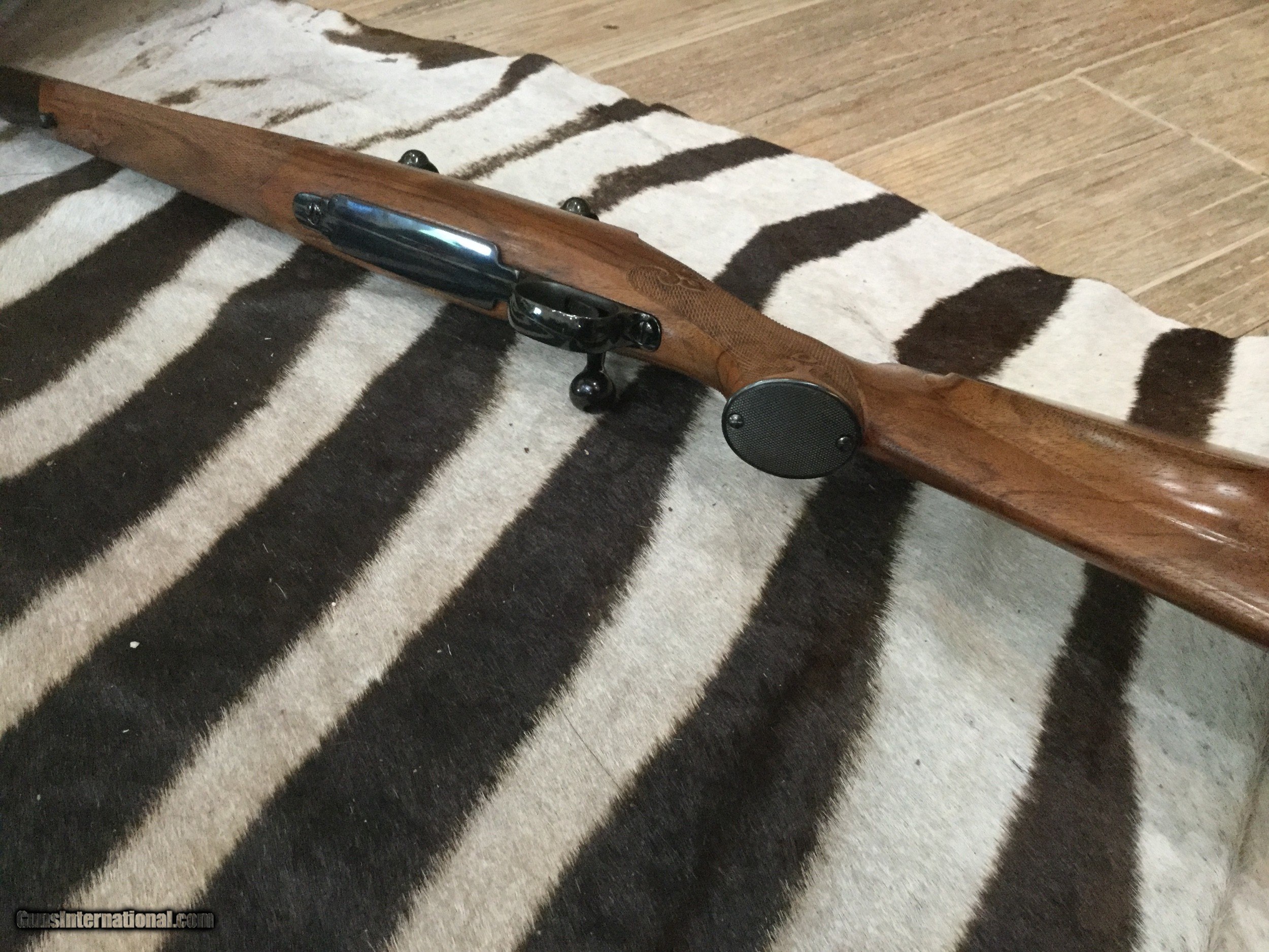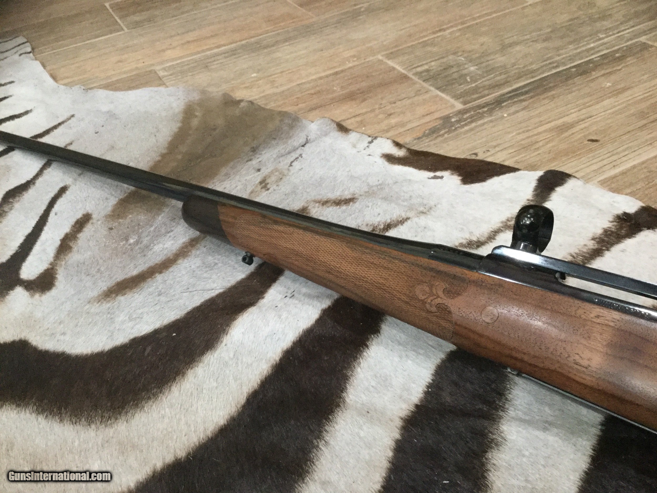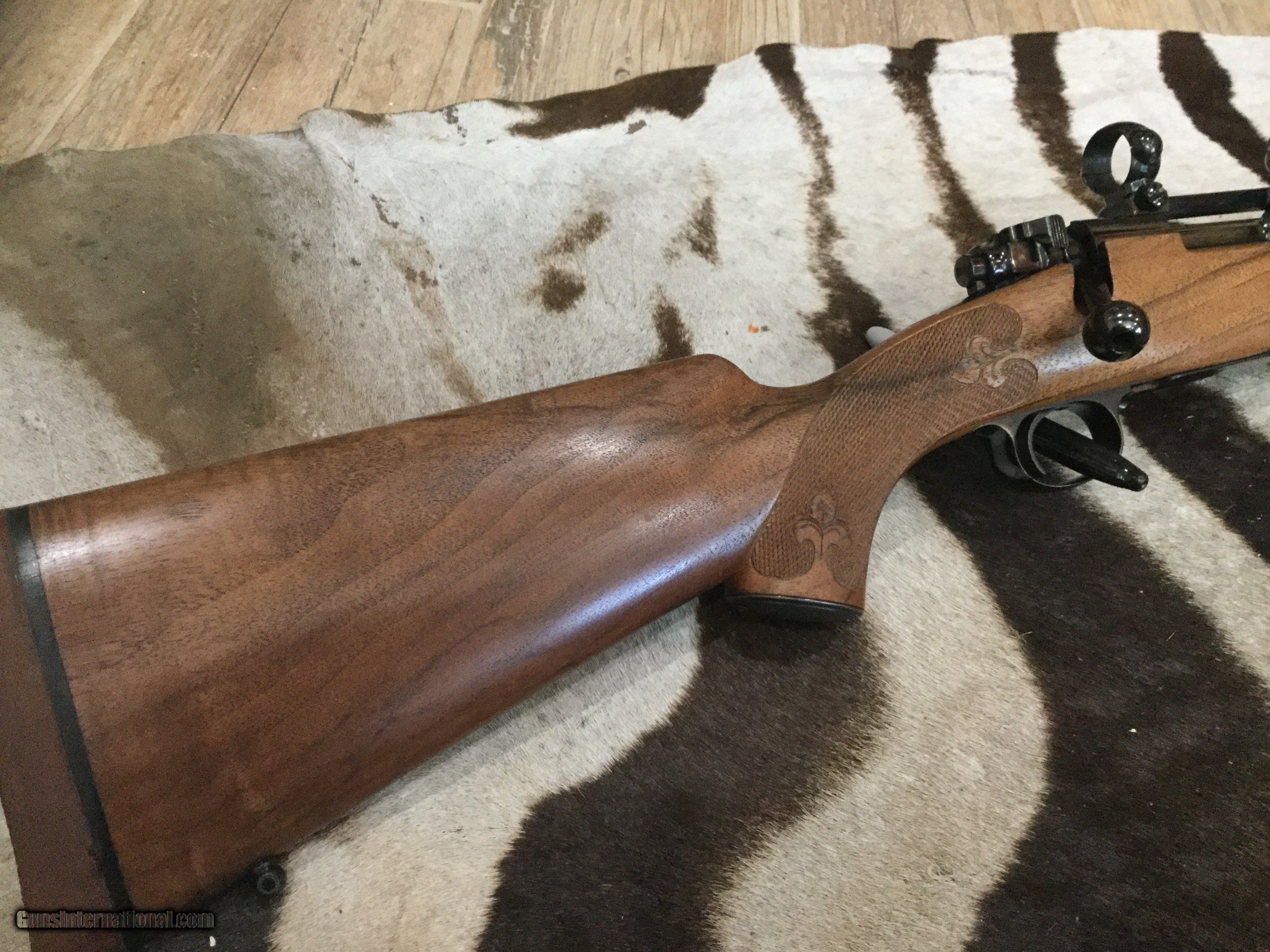 Description: Custom rifle in 30-06 built on a 1953 Winchester model 70 action. French Bastogne stock with fleur delis 25 line per inch checkering, fantastic deep bluing on the metal, JR Douglas custom medium contour 24" barrel, checkered steel grip cap. This rifle came with a collection and it's #1 of a pair and marked as such next to the serial number (I sold #2 in 257 Roberts) wood and metal are 100% with no sign of ever being fired. It comes with Redfield base and rings. Amazing quality and details , no information on the maker. SOLD SOLD Rifle Caliber: .30-06 Springfield Manufacturer: Custom Model: Winchester model 70 pre 64 Barrel Length: 24” Caliber Info: 30-06 Condition: 100% Metal Condition: 100% Wood Condition: 100% Bore Condition: 100% Barrels: JR Douglas Barrel Type: Medium Contour Action: Bolt control round feed Triggers: 3 pounds Stock Cast: Right hand Fore End: Ebony LOP: 13-1/5” Finish: Blue Weight: 7 pounds 6 ounces Extras: Redfield base and rings Case: No Item Location: Texas Proof:Nitro: Yes |