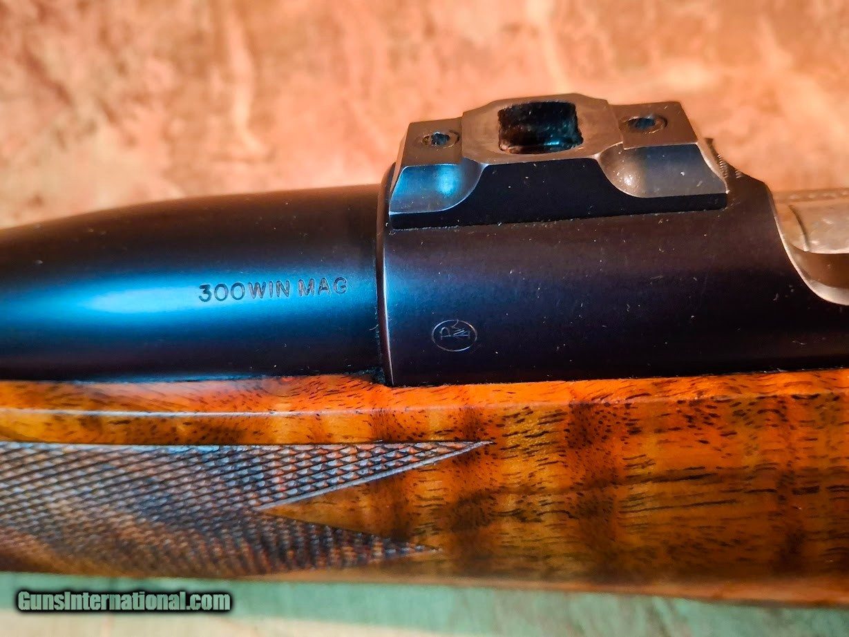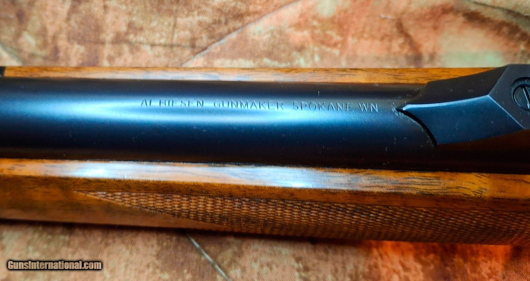 Description: This beautiful and tastefully built Winchester Model 70 was built by the famous Al Biesen gunsmith sometime in the late1960's or 1970's for my late father. It was used by him to take just about every species of big game animal in North America. My father was a regionally well-known professional hunter, fisherman, businessman, and outdoor writer from North Idaho, and Al Biesen was his preferred gunsmith, being only 70 miles away from his home. I do not know much about custom rifles, or the particulars of this one. Most of my father's rifles were used in the pursuit of big game all over the Western US, Alaska, Canada, Africa, and Siberia. As such, all of his rifles show honest wear and a few scuffs and dings from being in scabbards on horseback, in bush planes, and slung over his back while pursuing his prey in the roughest of territory. However, this rifle shows very minimal wear with some thinning of finish on the floorplate edges and tip of the muzzle. There are just a couple of very minor imperfections in the wood, and no damage to the hand-checkering. The action is butter smooth and trigger is light and crisp. I have fired it and confirmed it functions flawlessly. The only defect I have discovered is that the magazine floorplate does not release. It appears undamaged and in perfect condition, but it won't release. The rifle is equipped with Redfield open sights, Leupold quick release scope bases, jeweled bolt handle, pre-64 action smoothed by Mr. Biesen, ribbed adjustable trigger, and a beautiful custom Al Biesen stock in very good condition. I am not an expert on custom rifles, as the most I've spent on a hunting rifle before my dad passed was $500. If there are other features or specifications that you see in the photos that should be noted, please let me know. I try to be as honest and fair as possible, so please alert me to any discrepencies you see or possible misinformation. Rifle Caliber: .300 Winchester Magnum Manufacturer: Winchester Model: Model 70 Serial Number: 14050 Barrel Length: 22 Condition: Very Good Metal Condition: Very Good Wood Condition: Very Good Bore Condition: Excellent Finish: matte Price: $7,299.00 Shipping: $39.99 Buy Now Pay with