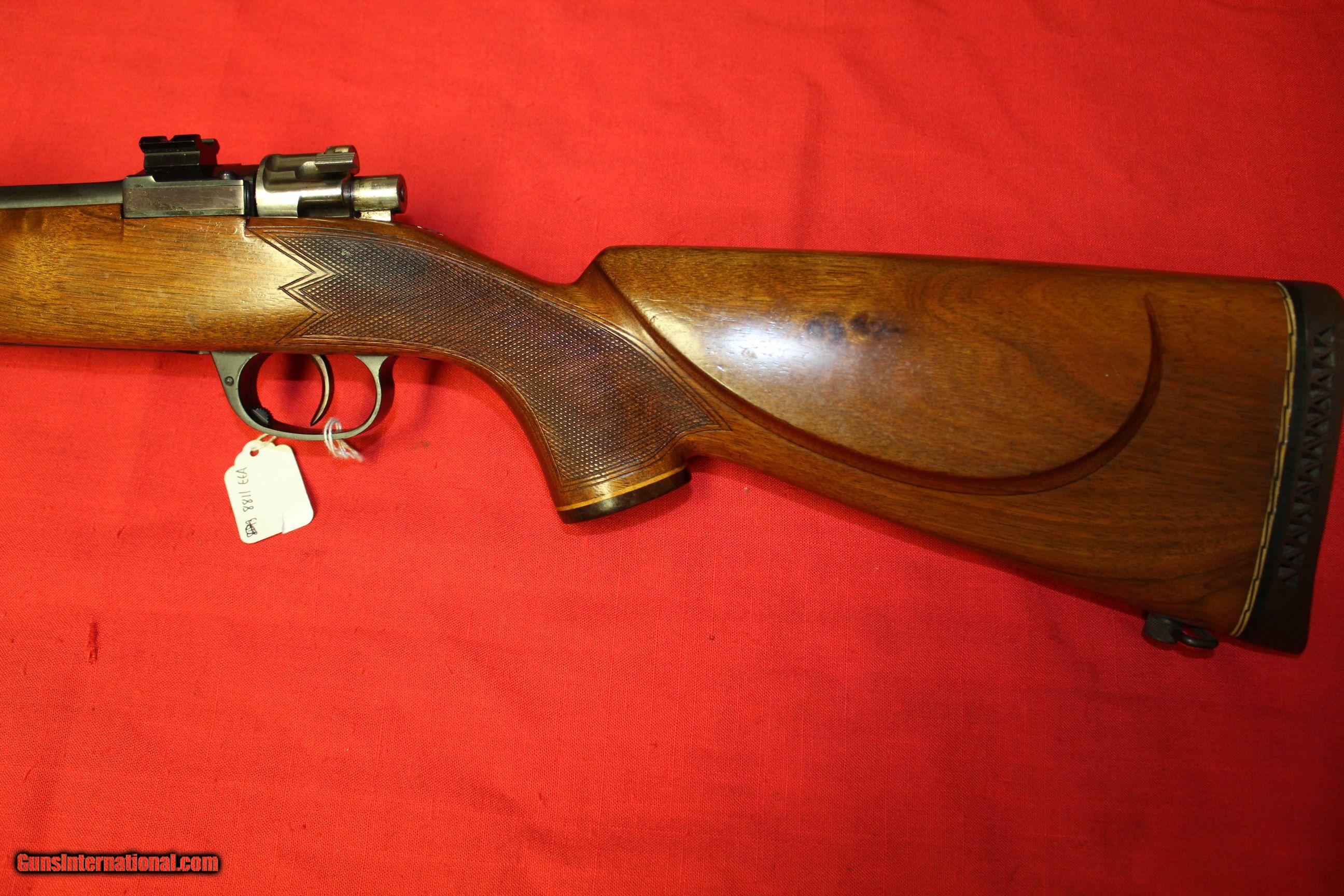 Description: This gun is out of a personal collection of a local doctor that had a very well known local gunsmith custom build several guns for him. They for the most part sat in a gun rack for the last 65 years. 98 Mauser action with turned bolt and safety lever, Herters barrel chambered in 30-06, fits like a glove in the hand made & checkered walnut monte carlo stock with dark walnut grip cap and forend, bore mirror bright with great rifleing, 100% satisfaction guarantee. SOLD |