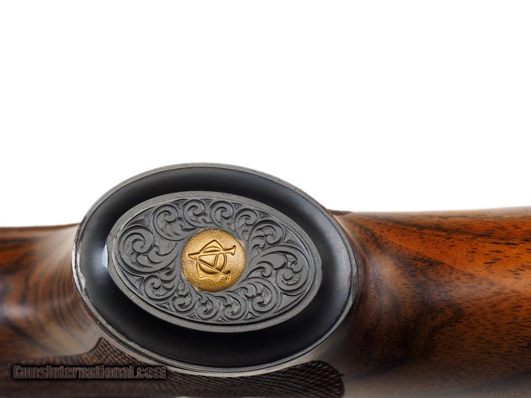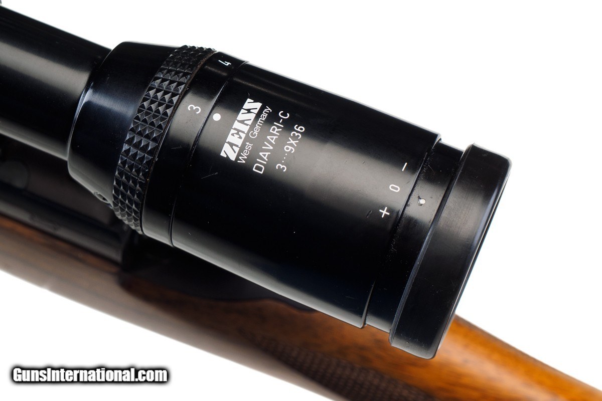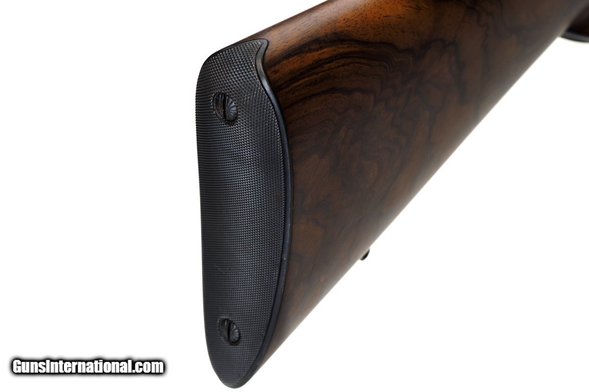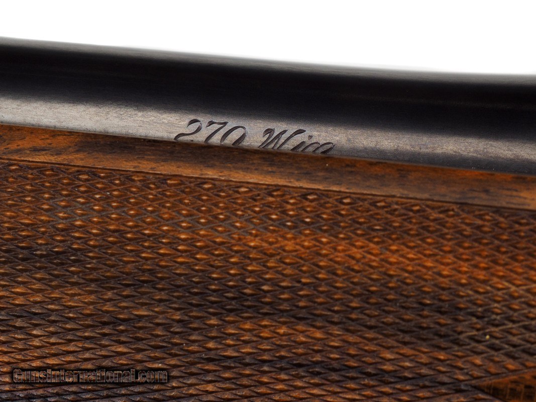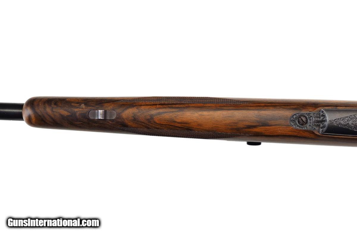 Description: 23" BARREL, ZEISS DIAVARI C 3-9x36 MC SCOPE, CUSTOM RINGS AND BASES, PISTOL HAND GRIP, ENGRAVED GRIP CAP, 13-3/4" LOP, BUTTPLATE, 8 LBS 14 OZ WITH SCOPE Custom bolt action rifle chambered for the .270 Winchester cartridge engraved by Mike Dubber. The 23" blued round steel barrel is adorned with a gold line near the receiver. The left side of barrel is engraved ".270 Win". The receiver and straddle floorplate are adorned with scrolls while the floorplate also has a gold-inlaid portrait of an antelope. The floorplate is signed "MWD 1990". The trigger guard bow is gold-inlaid in script "TLC" protecting a smoother single trigger. Zeiss DiaVari C 3-9x36mm rifle scope with custom bases and rings. Nicely marbled deluxe quality reddish-brown walnut stock with pistol hand grip, engraved grip cap, studs for sling and 13-3/4" LOP to a checkered steel buttplate, 8 Lbs.14 Oz. with scope/mounts.
