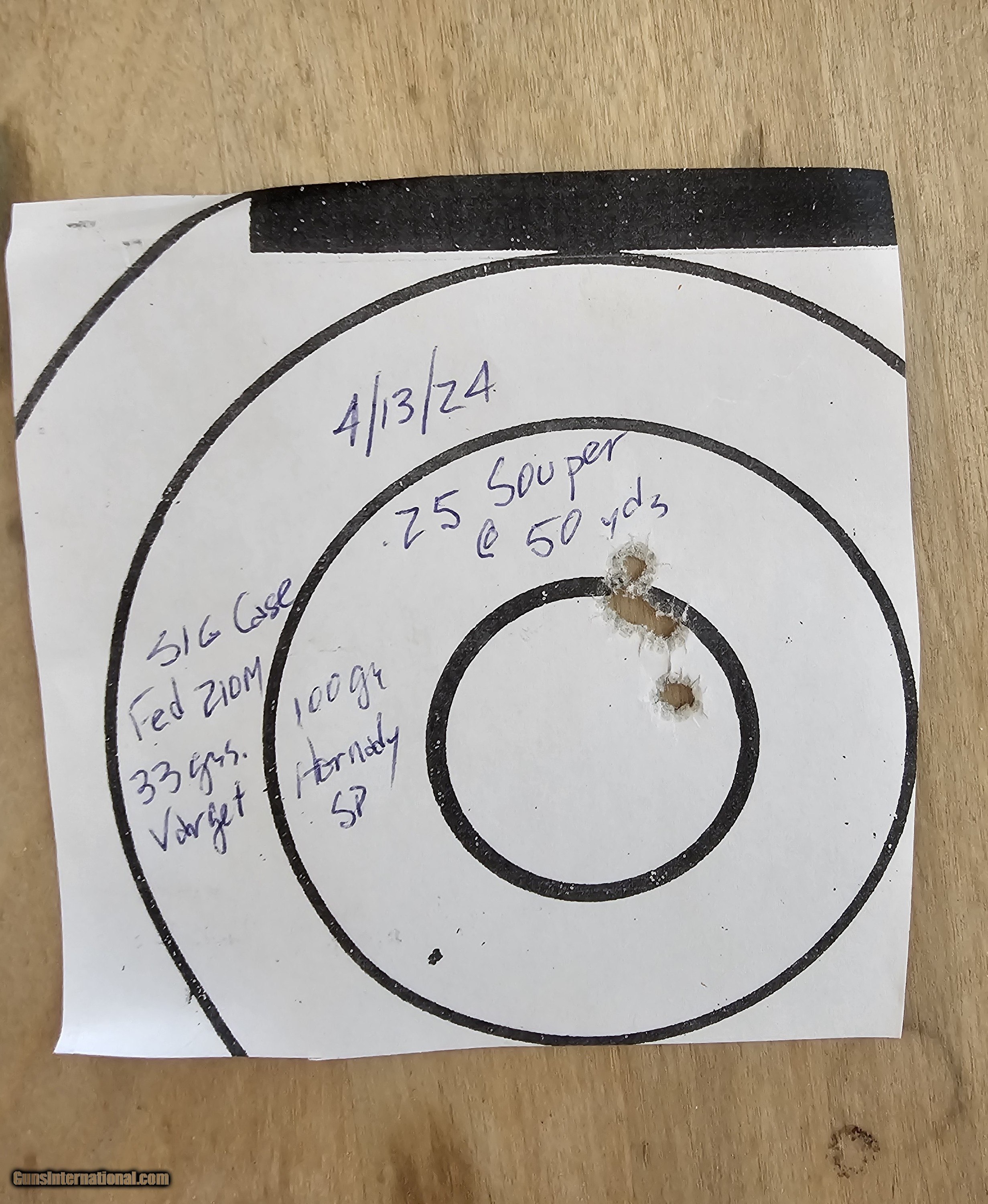 Description: Here is a fine commercial FN Mauser sporter, re-barreled to .25 Souper (also known as .25-.308 or .25-08) by Bliss Titus, the well-respected barrel maker of Provo and Heber City, Utah. This rifle has a 22” barrel with a pristine bore. An excellent Meopta (Czech) 6x scope is mounted. The scope has crystal clear optics and a range-finding reticle. The rifle weighs 9 lbs 10 oz, and the LOP is 14”. This rifle is accurate, and comes with dies and brass. Curio/Relic: Yes Rifle Caliber: .25 Souper Price: $1,350.00 Contact Seller |