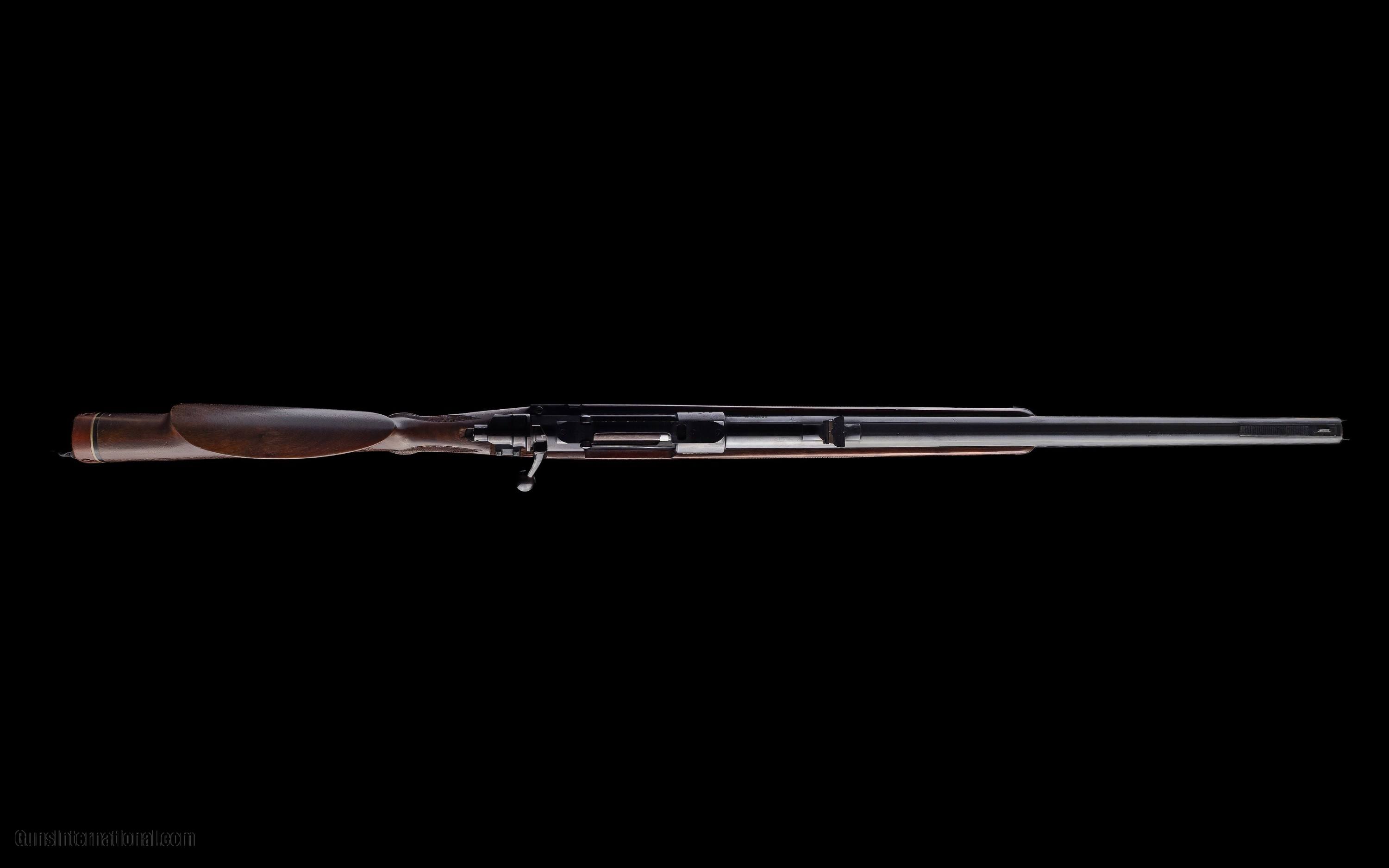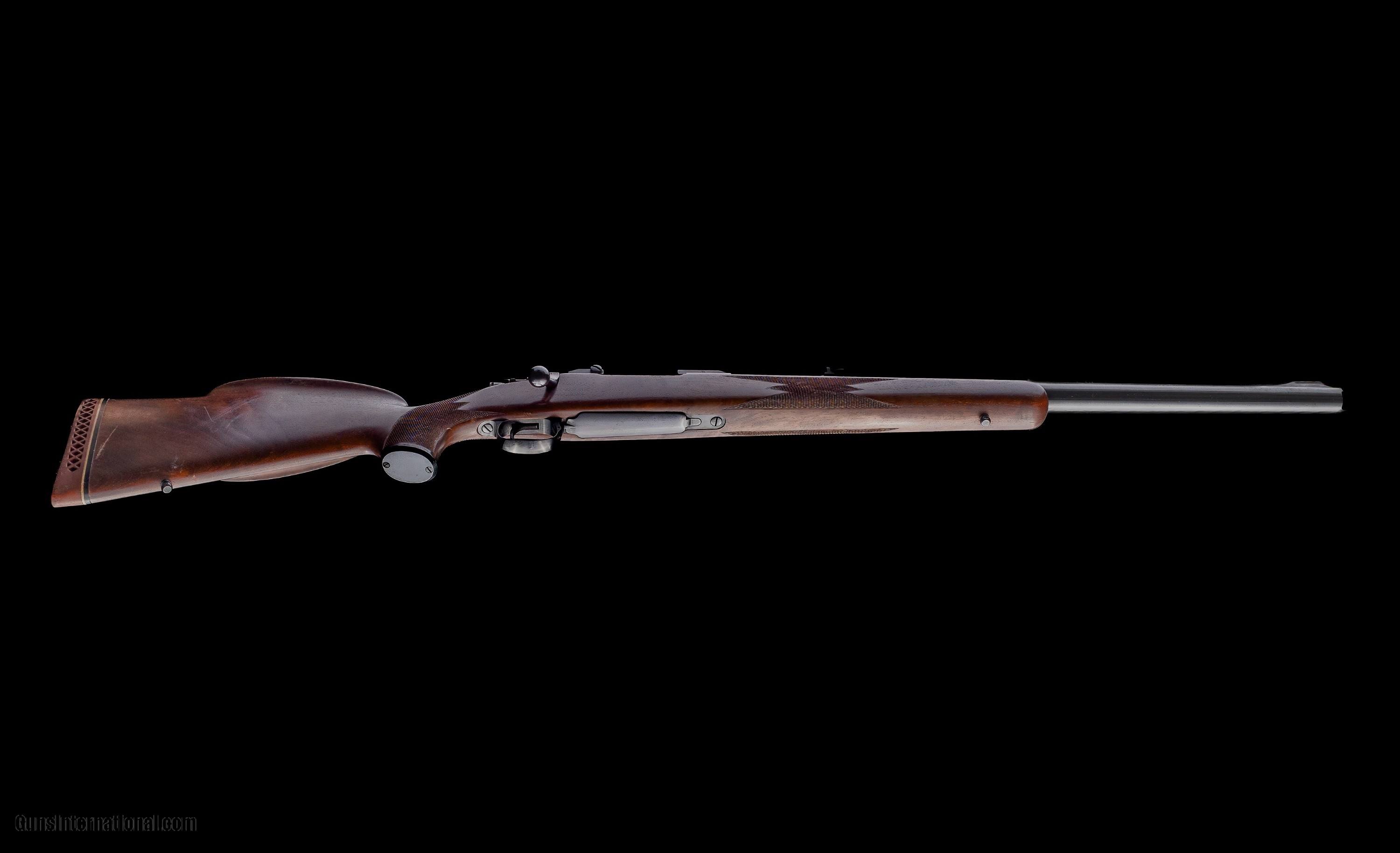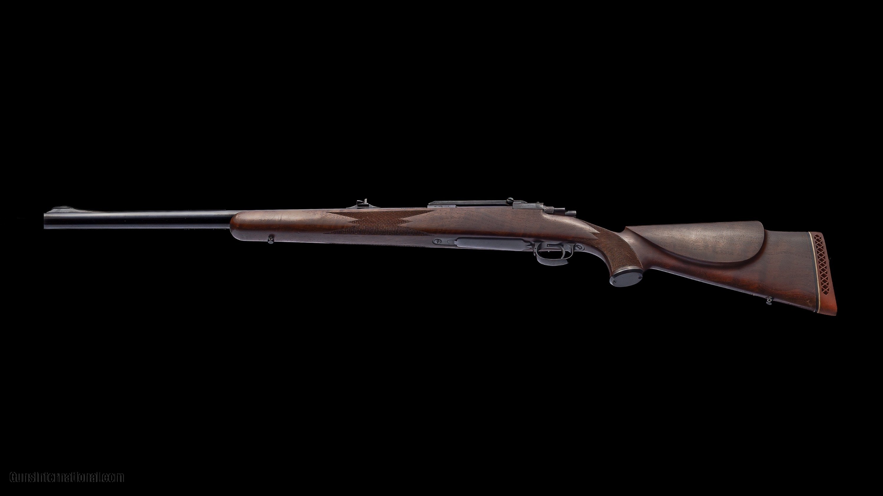 Description: Offered here is a powerful and traditionally built custom rifle constructed on a classic FN Mauser controlled round feed action and fitted with a premium Douglas barrel. This rifle is chambered in .458 Winchester Magnum and was clearly built with dangerous game hunting in mind, combining proven Mauser reliability with the accuracy and reputation of Douglas barrels. The heart of this rifle is the FN Mauser action, widely regarded as one of the strongest and most dependable bolt action designs ever produced. Favored by professional hunters and custom rifle builders throughout the 20th century, the FN Mauser features controlled round feed, massive dual locking lugs, and a large non rotating claw extractor attributes that make it exceptionally well suited for heavy recoiling dangerous game cartridges such as the .458 Winchester Magnum. The rifle is fitted with a 24 inch Douglas barrel, manufactured by Douglas Barrels, a company renowned for producing some of the finest rifle barrels in America. Douglas barrels gained widespread respect for their consistency, accuracy, and durability, and were used by countless custom gunmakers, competitive shooters, and serious hunters throughout the mid to late 20th century. The .458 Winchester Magnum chambering delivers formidable stopping power while remaining practical and reliable in a bolt action platform. This rifle is stocked in a classic right handed pistol grip stock with a metal grip cap and a rollover style comb designed to manage recoil while maintaining proper cheek weld. The stock architecture reflects traditional African and dangerous game rifle styling, emphasizing control, balance, and durability under hard use. The overall build suggests a purposeful, no nonsense custom rifle rather than a factory production piece. Sighting equipment consists of a front blade sight paired with a rear notch sight featuring an additional folding distance leaf. This traditional iron sight setup is ideal for dangerous game hunting, providing rapid target acquisition at close range while allowing for extended distance capability when needed. The rifle is fitted with a single trigger, offering a clean and straightforward firing system appropriate for heavy caliber use. • Action: FN Mauser controlled round feed bolt action • Caliber: .458 Winchester Magnum • Barrel: 24 inch Douglas barrel • Trigger: Single trigger • Stock: Right handed pistol grip stock with metal grip cap and rollover comb • Sights: Front blade sight, rear notch sight with additional distance leaf • Configuration: Custom built rifle Custom rifles built on FN Mauser actions with Douglas barrels represent a golden era of American custom gunmaking, when skilled craftsmen paired elite components to create rifles capable of the most demanding hunting conditions. This example offers substantial appeal to dangerous game hunters, collectors of classic custom rifles, and enthusiasts who value function driven design backed by proven components. Whether destined for a collection or built for serious field use, this .458 Winchester Magnum FN Mauser with Douglas barrel stands as a powerful, traditional, and highly respected custom rifle. Rifle Caliber: .458 Winchester Magnum Manufacturer: FN Model: Custom Mauser Barrel Length: 24 inch Douglas barrel Condition: Excellent Metal Condition: Excellent Wood Condition: Excellent Bore Condition: Excellent Action: Bolt Action Triggers: Single Stock: Right handed pistol grip stock with metal grip cap and rollover comb LOP: 14 3/4 Sights: Front blade sight, rear notch sight with additional distance leaf Item Location: Michigan Price: $2,999.00 Buy Now Contact Seller |