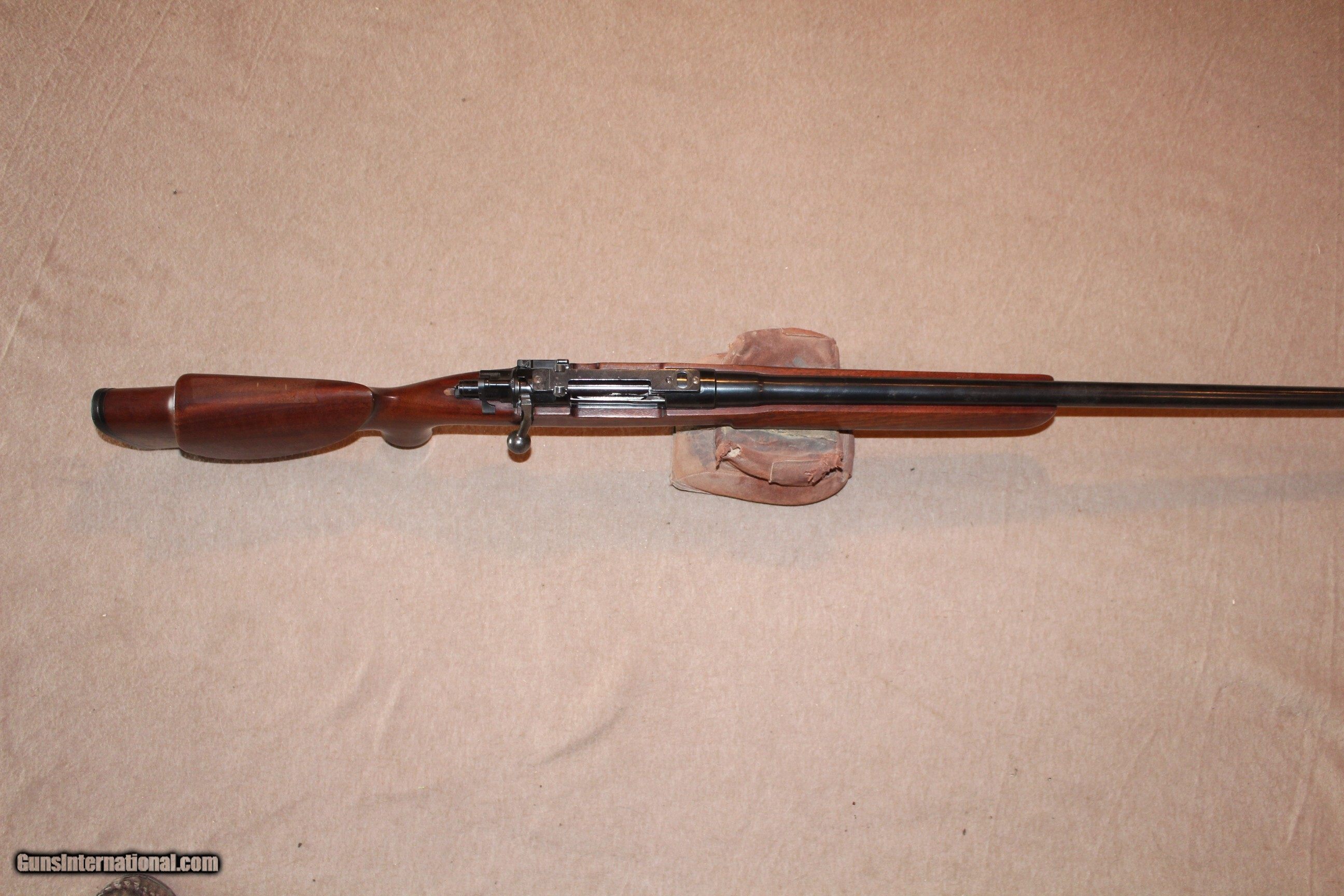 Description: Custom M98 Mauser rifle chambered in 220 Swift. Heavy 26" barrel, 1-14" twist, VG bore. Barrel maker unknown or gunmaker who put the rifle together. Stock appears to be American Walnut, cheekpiece for left handed shooter. Fully adjustable trigger, unmarked but similar to Timney. Low swing safety and new bolt handle for scope clearance. Leupold one piece scope base. Overall good to very good condition. This would make a great target or varmint rifle. Please check my other s for more rifles and parts. Thanks for looking! Rifle Caliber: .220 Swift Price: $695.00 Contact Seller |