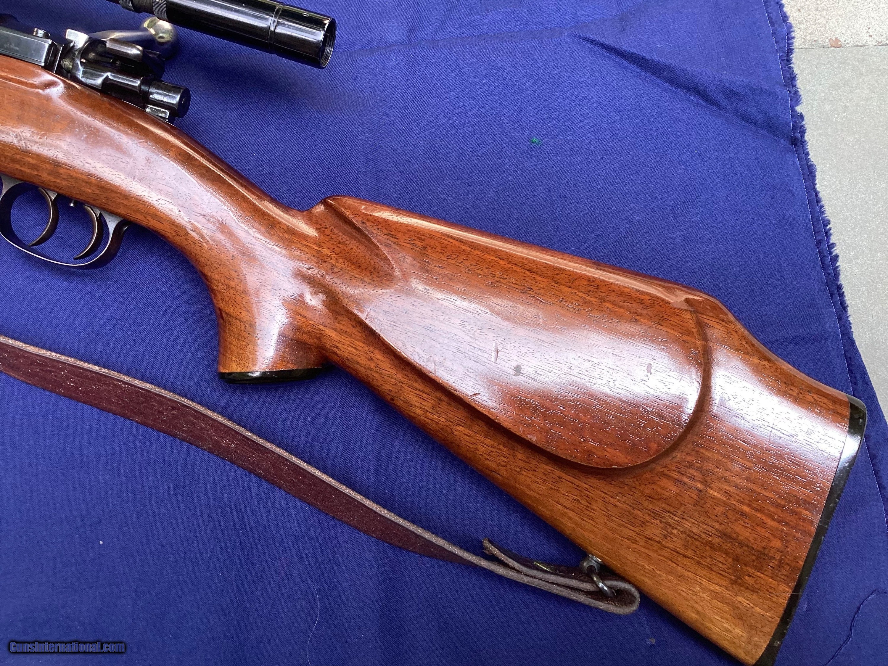 Description: Custom Brno Mauser bolt action .22/250 heavy barrel rifle. It has a 24" heavy barrel with perfect bore, and a Fajen stock. The Litschert 10X scope is clear and bright with fine crosshairs and adjustable objective. Rifle weighs 11lbs. - 6oz. The action is very tight and smooth, and the trigger is an adjustable double set. Please see the photos for overall condition. Certified checks or USPS MOs only accepted. Shipping will be $60.00 in the CONTUS. Cannot ship to Ca. NYC or C&Rs. No trades or financial arrangements. Please use email for contact. SOLD Rifle Caliber: .22-250 Remington Manufacturer: Brno Mauser Model: 98 Serial Number: P 56096 Barrel Length: 24” Condition: Vg Metal Condition: Vg Wood Condition: Vg Bore Condition: Fine Barrel Type: Heavy Action: Bolt Triggers: Double set Stock: Fajen Weight: 11lbs. 6oz. |