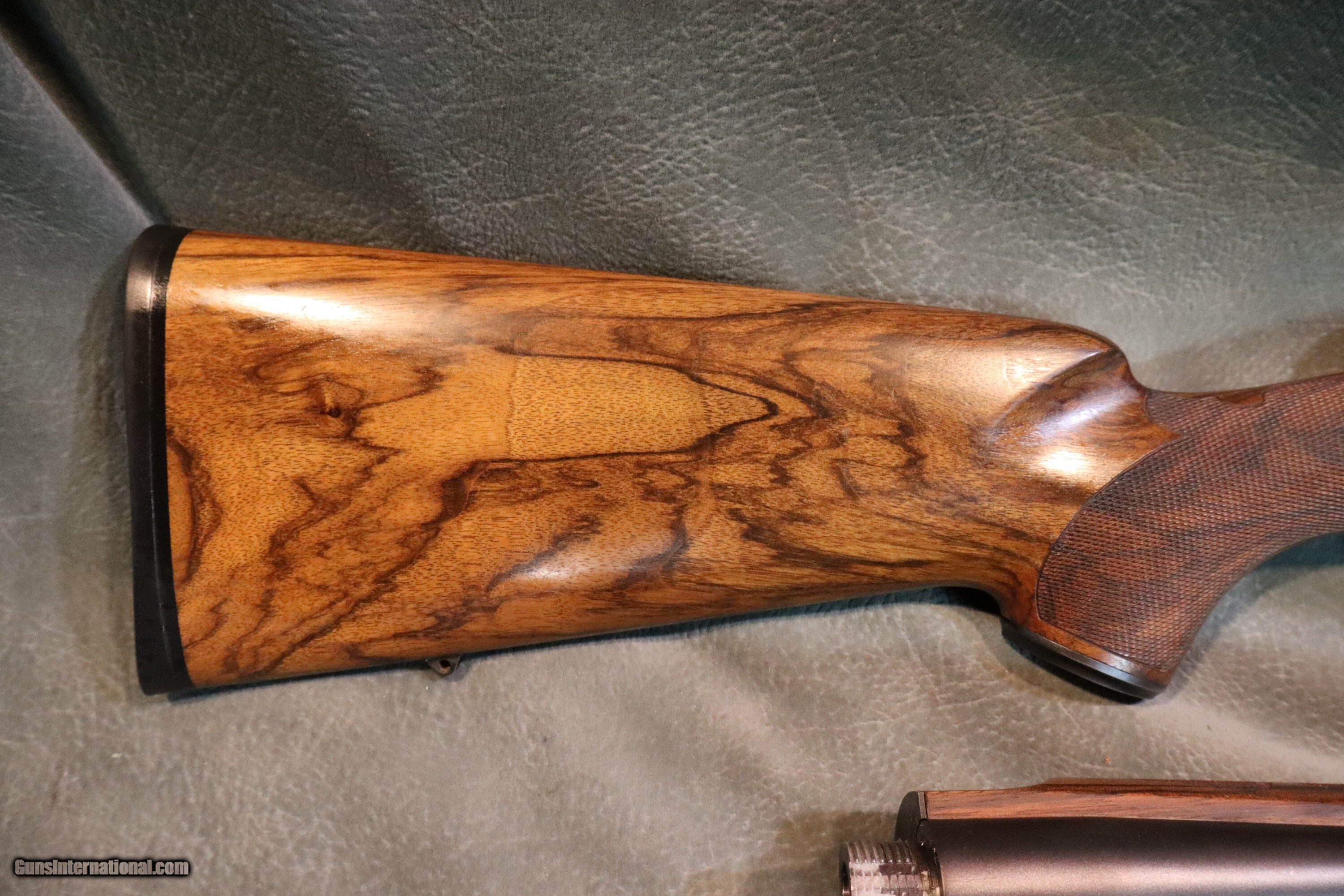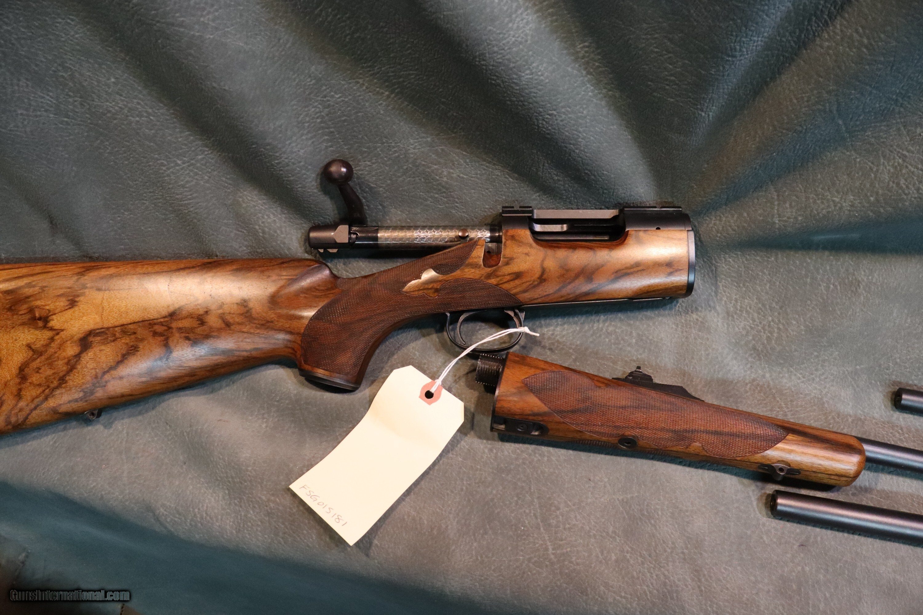 Description: Custom Remington 3 barrel takedown rifle set,22-250,243Win,308 Win,22" medium heavy 22-250 barrel with semi beavertail forearm,18" factory 243 barrel with sights,18" 308 barrel,highly figured English Walnut stock with fluer de lis checkering,skeleton checkered steel pistol grip cap,inletted sling swivels,jeweled bolt,13 5/8" LOP.Top quality workmanship,very little use,with case. GUN COLLECTIONS WANTED FOR CASH! We buy, sell, consign and trade new and used firearms.We travel for large collections,finders fee available. This is our 50th year in business. We offer 90 day layaways with 20% down. No return on layaways. Firearms will need to be transferred through a FFL dealer. Prices reflect a cash discount. There will be 3% added to credit card sales. We trade for gold and silver. THANK YOU! Price: $5,995.00 Shipping: $125.00 Contact Seller |