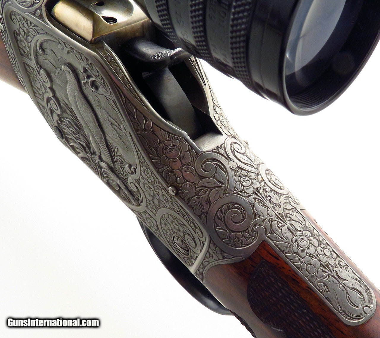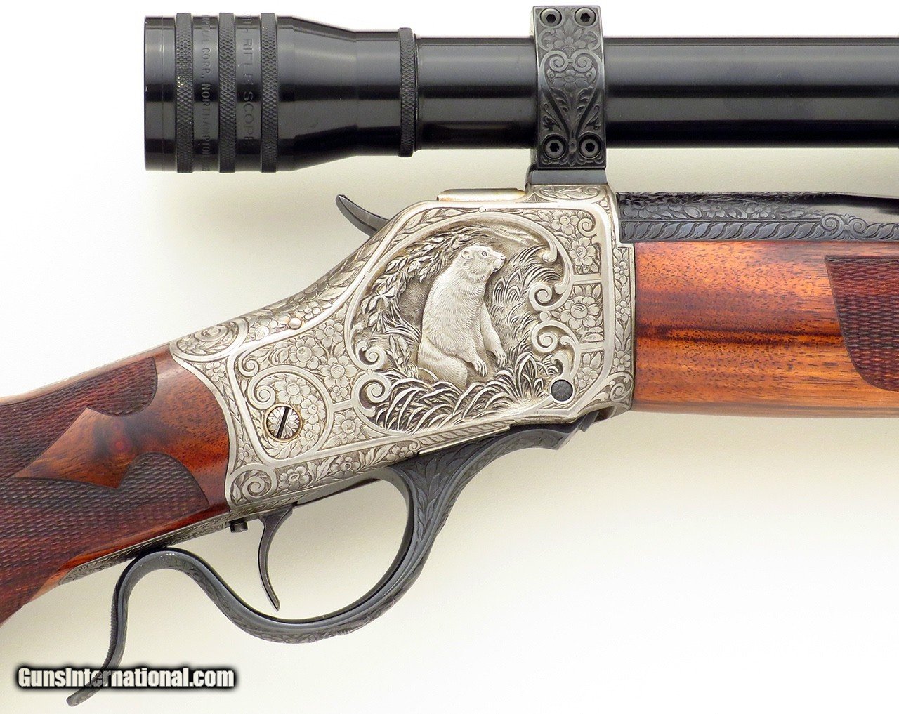 Custom Winchester 1885 .222 Remington, Al Biesen stock, Jaeger full coverage engraving, over 95 percent, layaway